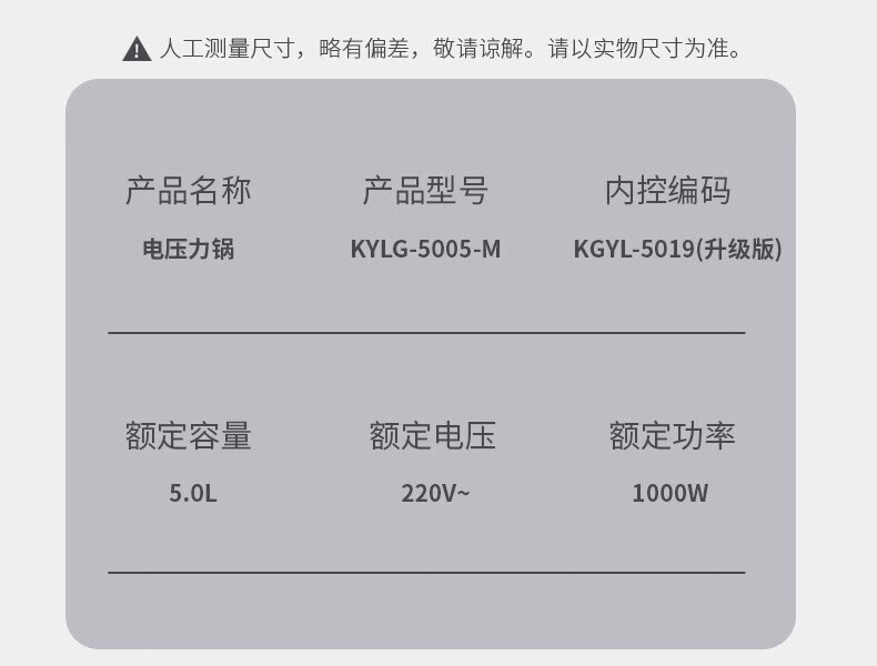 康佳电压锅5L家用多功能可预约电压力锅KYLG-5005-M