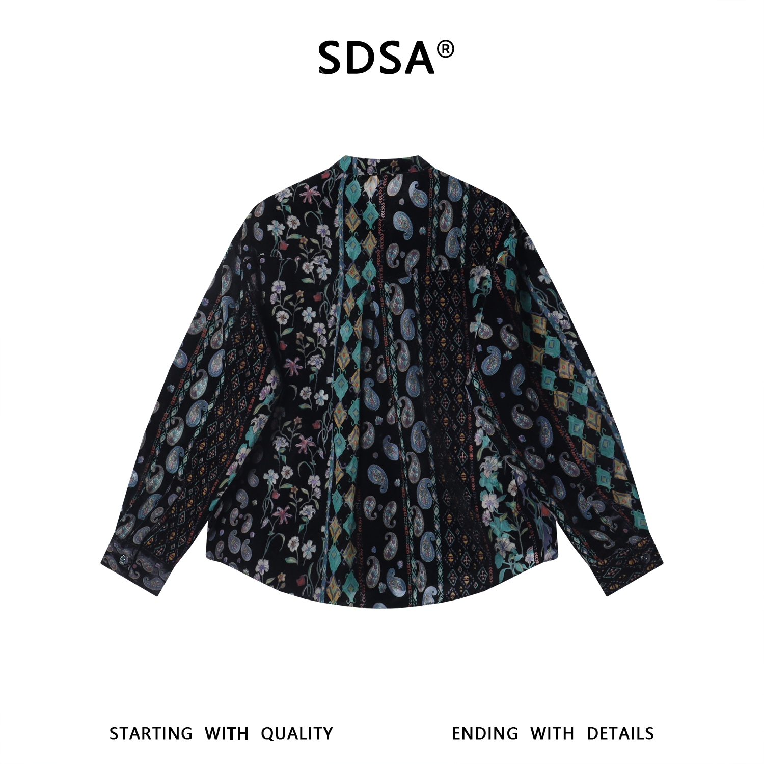 26CS06SDSA男士秋冬新款痞帅男装潮牌植绒植绒花卉立领长袖衬衫百搭休闲