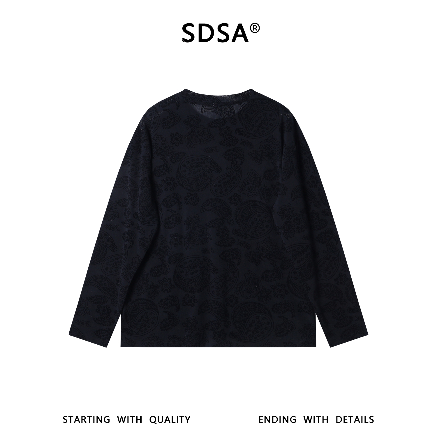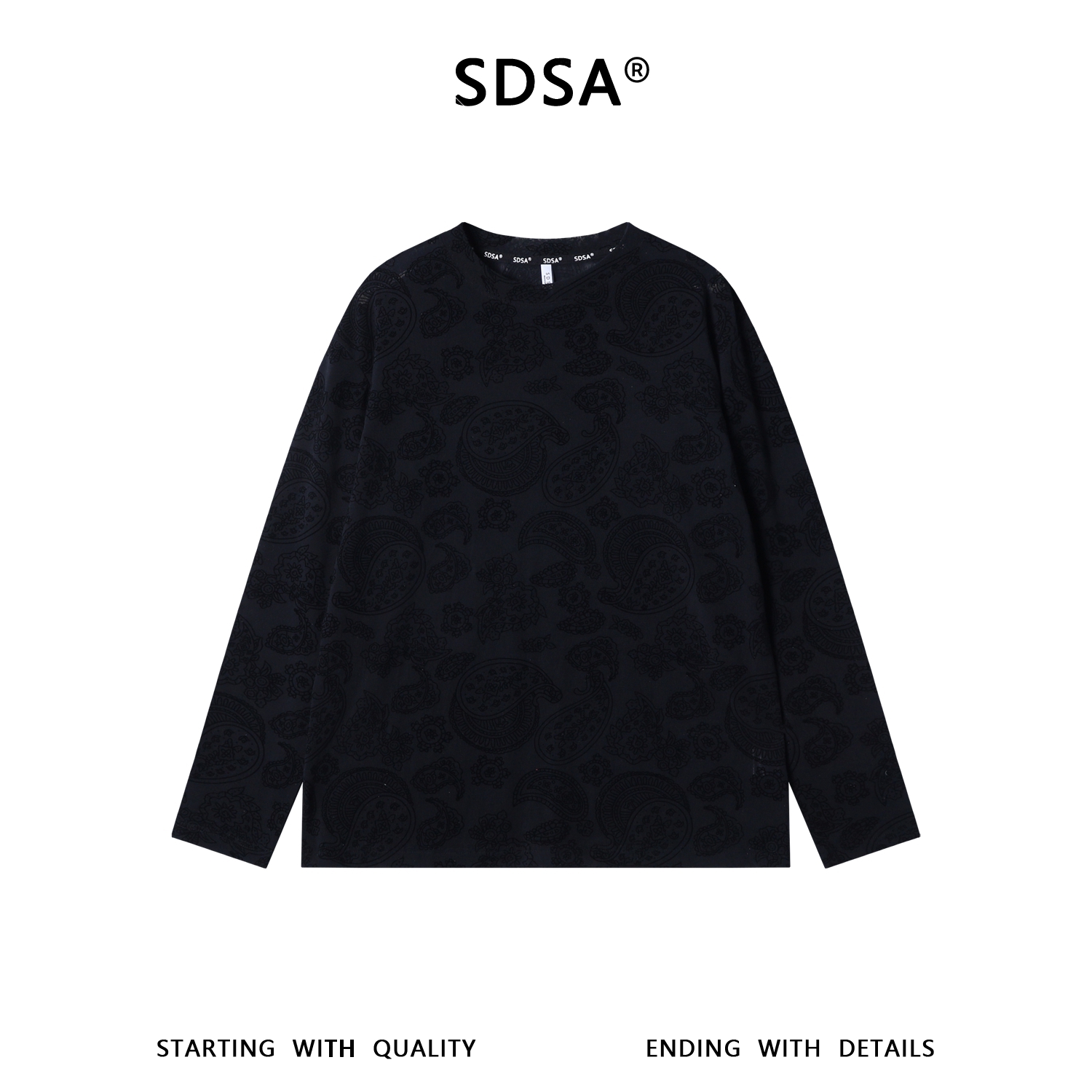 SDSA男士春夏新款痞帅男装潮牌时尚提花花卉圆领长袖T恤百搭舒适