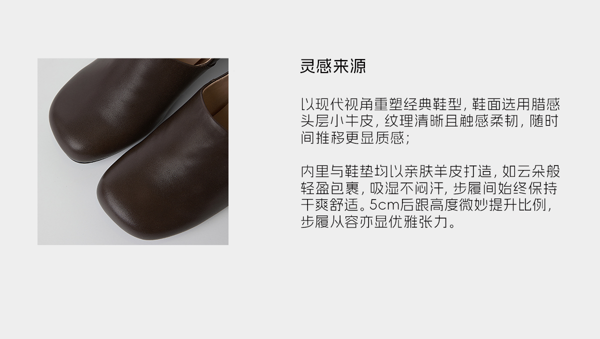 ROMI STUDIO“云朵脚感”头层蜡感小牛皮方头粗跟高跟鞋 RWCSP33013