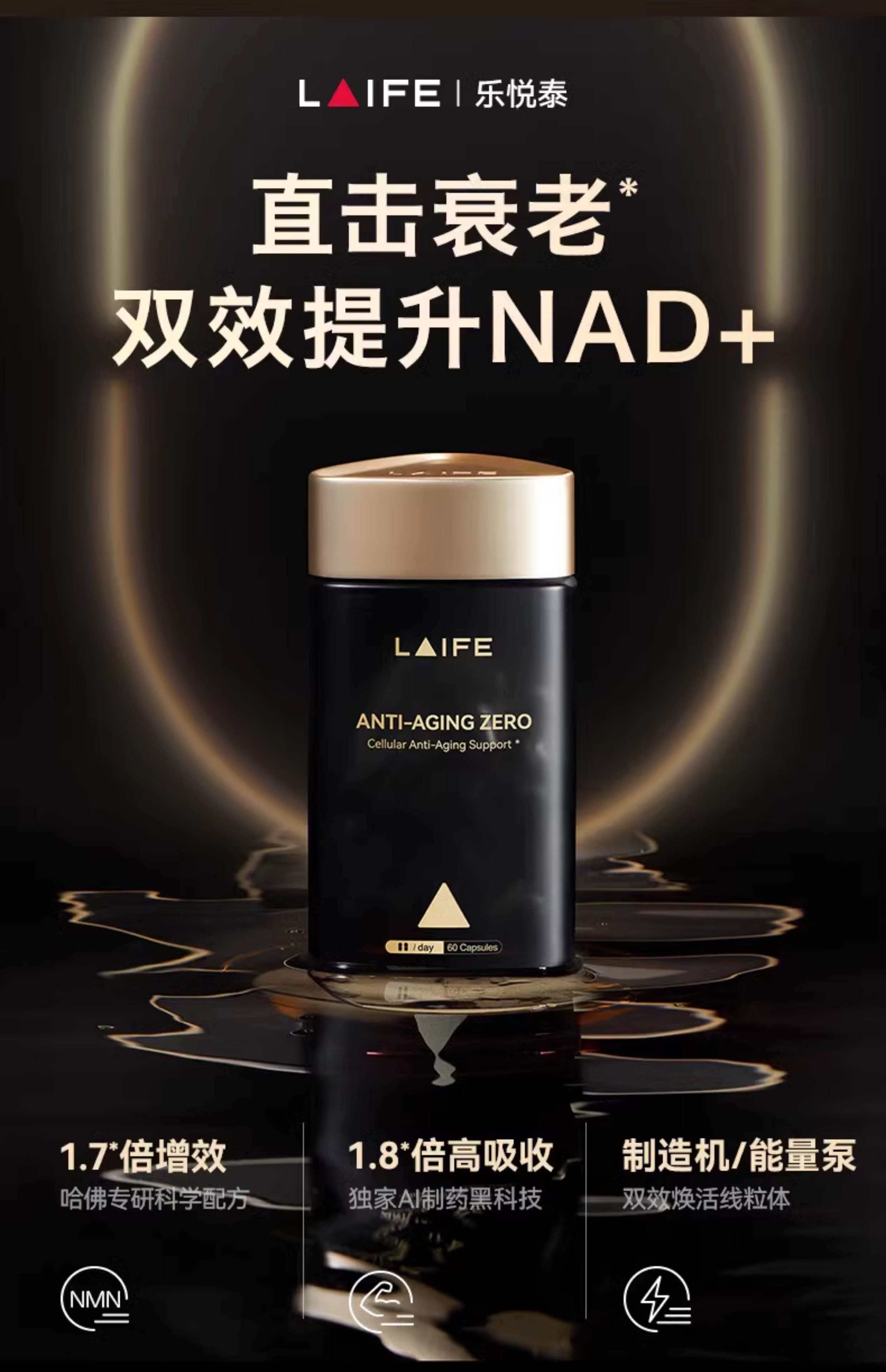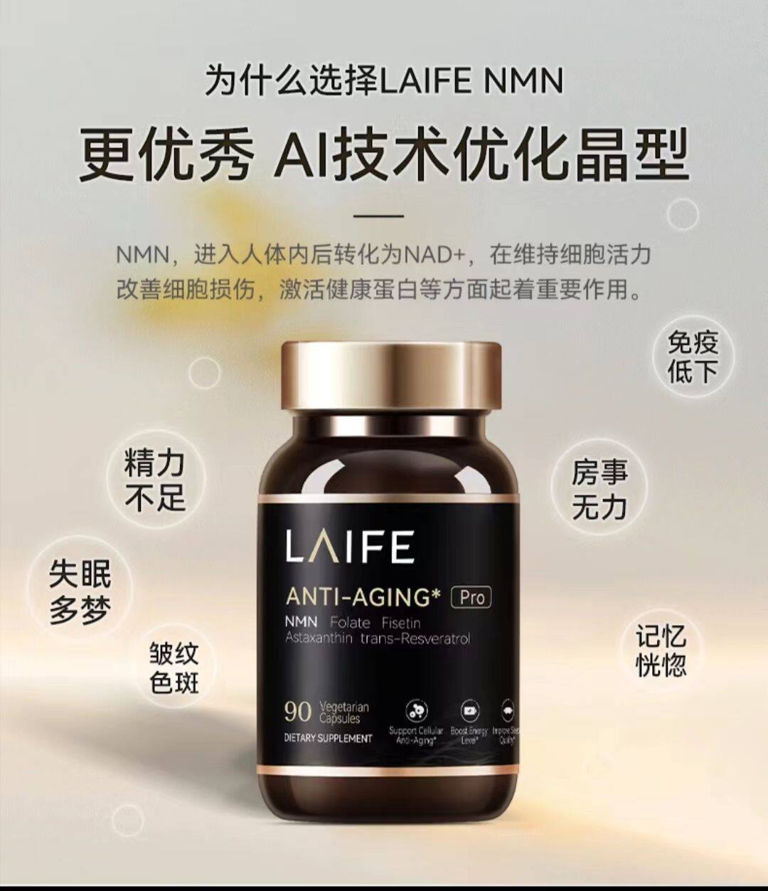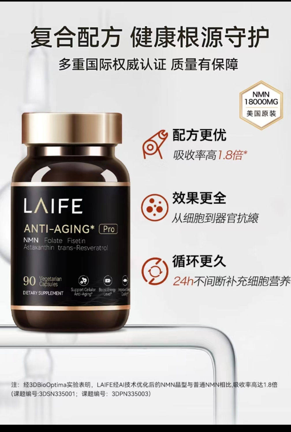乐梵LAIFE乐悦泰nmn时光胶囊美国原装进口NMN18000增强型NAD+前体