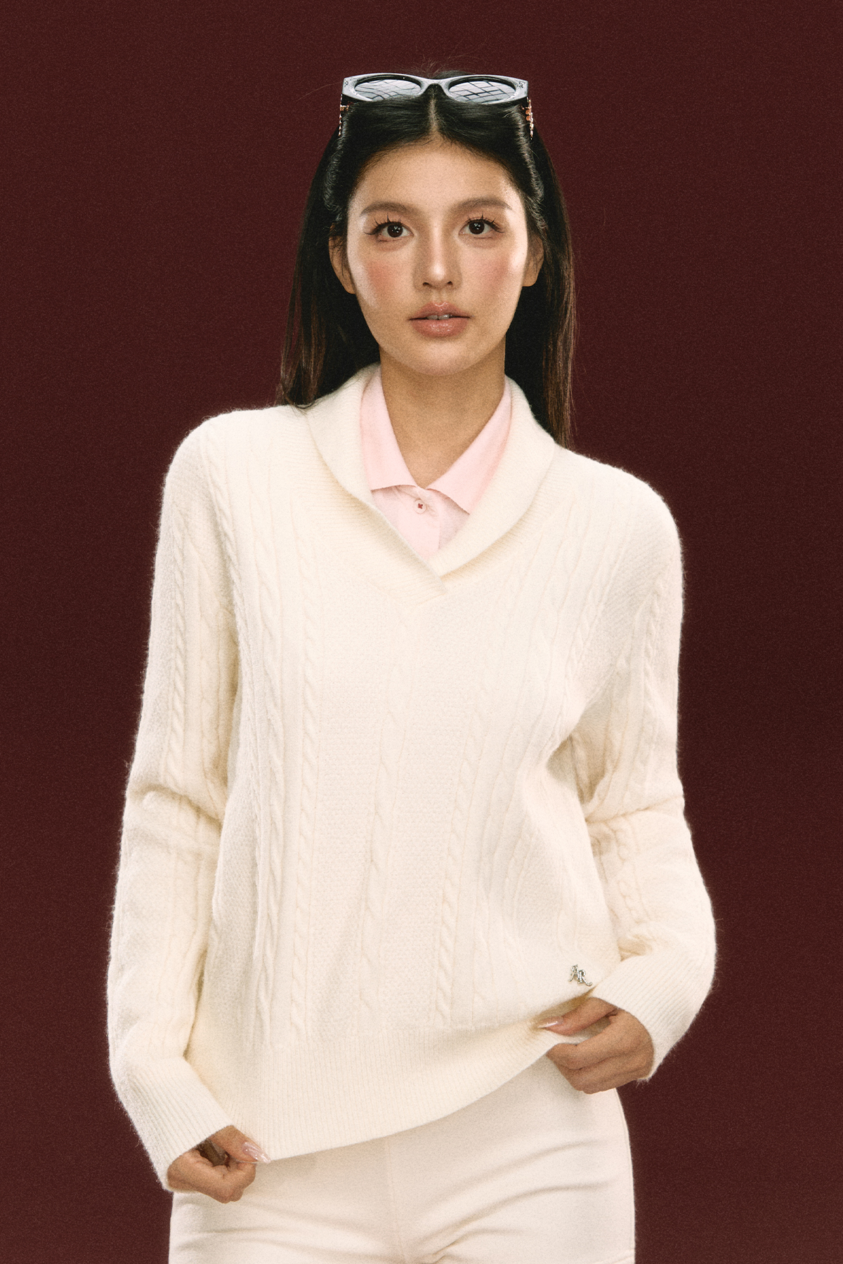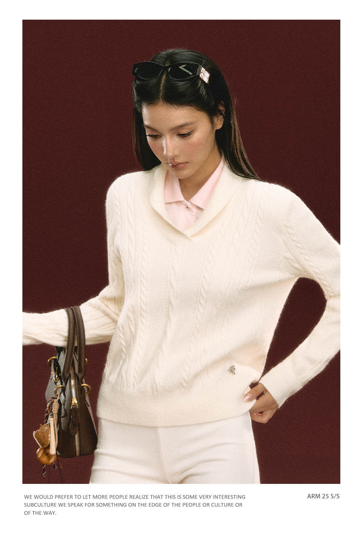 Ariseism 美式复古套头绞花针织衫毛衣女秋冬新款上衣