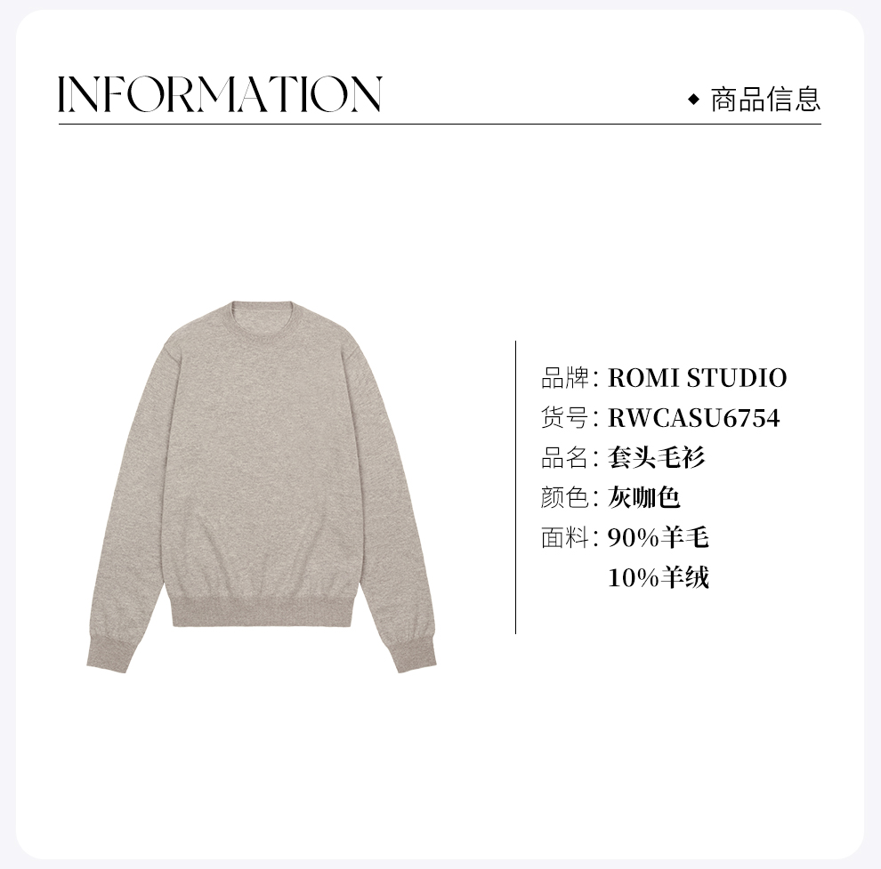 ROMI STUDIO”高支数羊绒羊毛“细腻柔软宽松灰套头毛衫 RWCASU6754