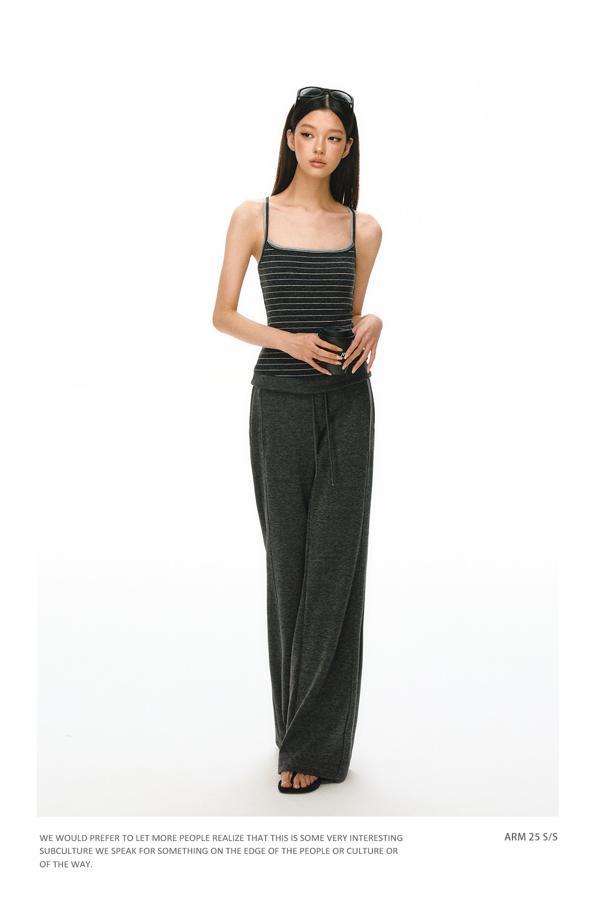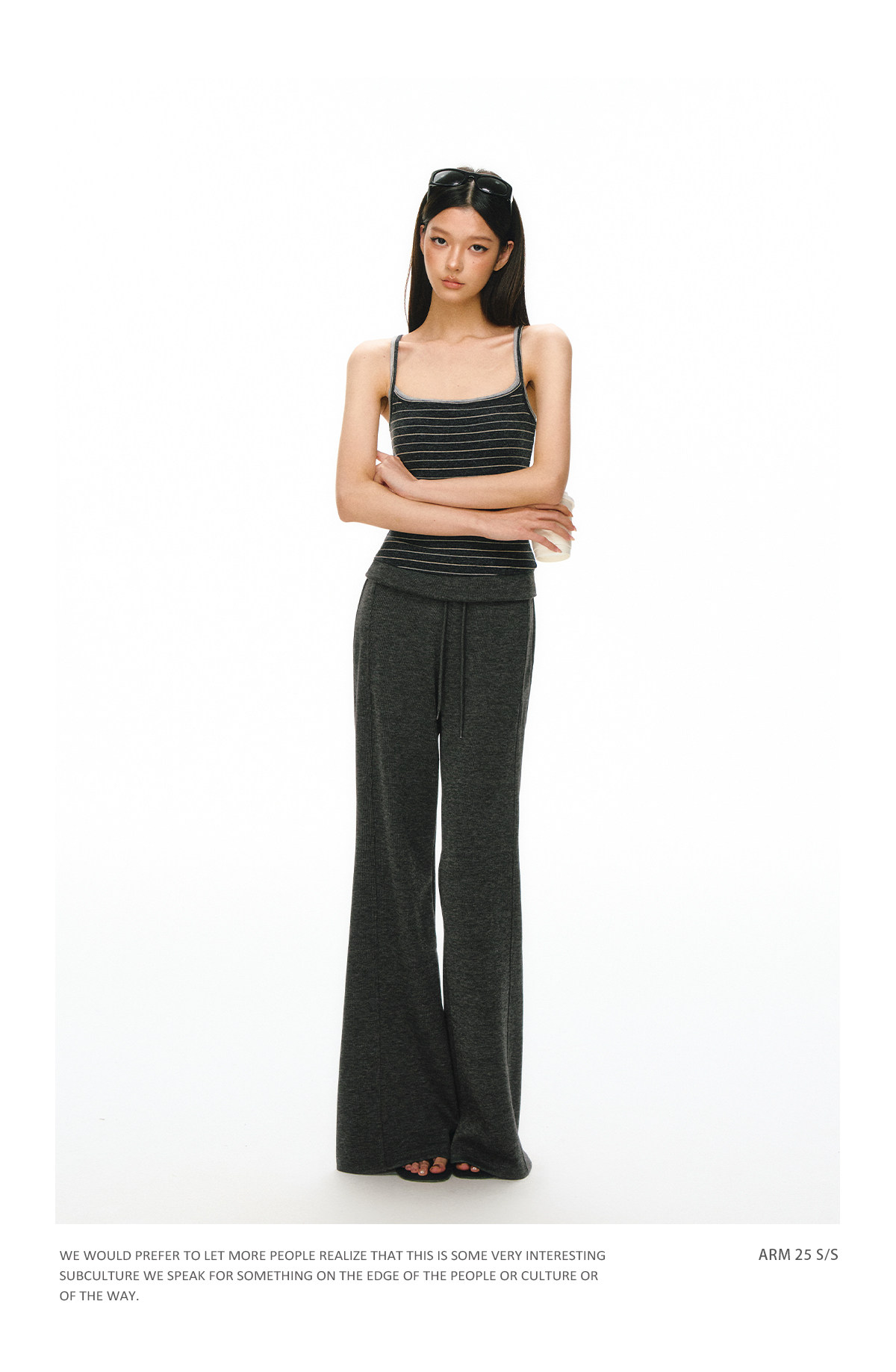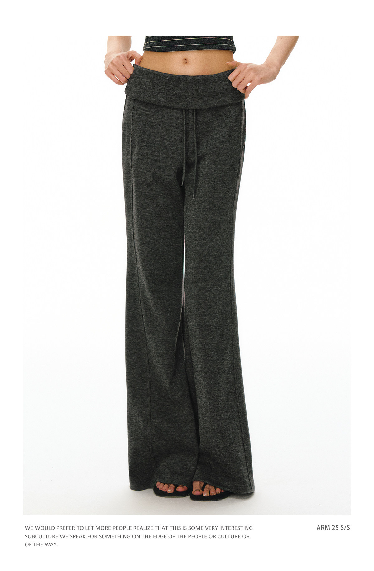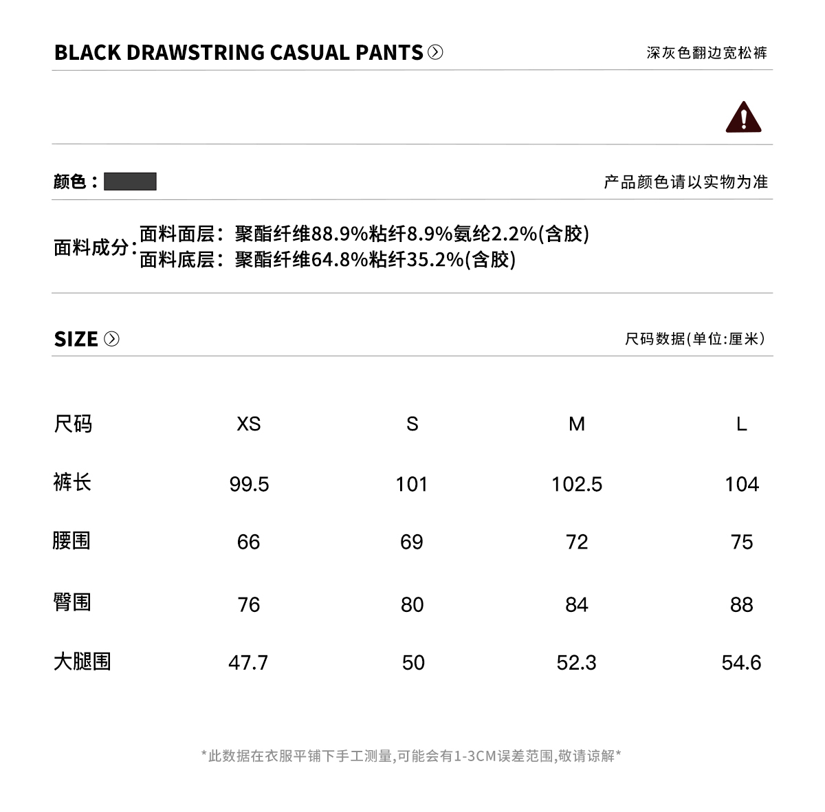 Ariseism 美式复古深灰色翻边宽松卫裤休闲裤女春季新款长裤子