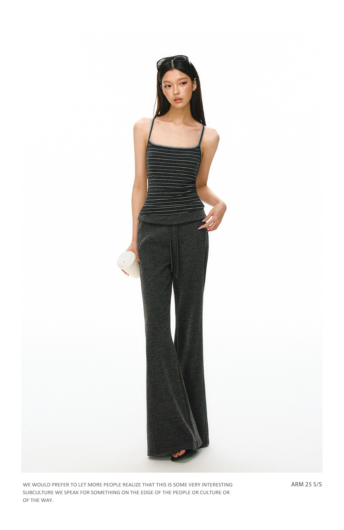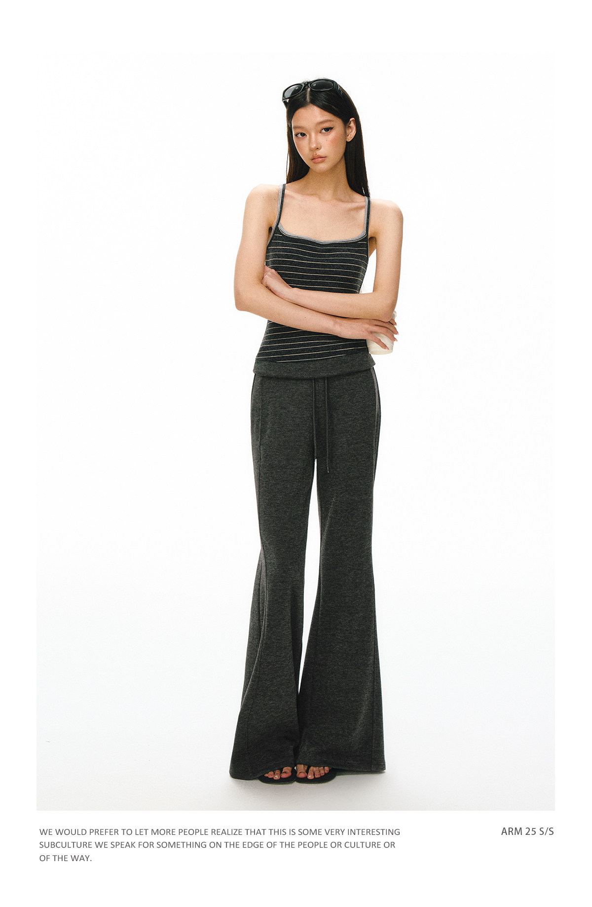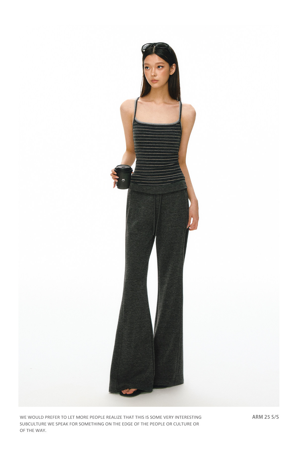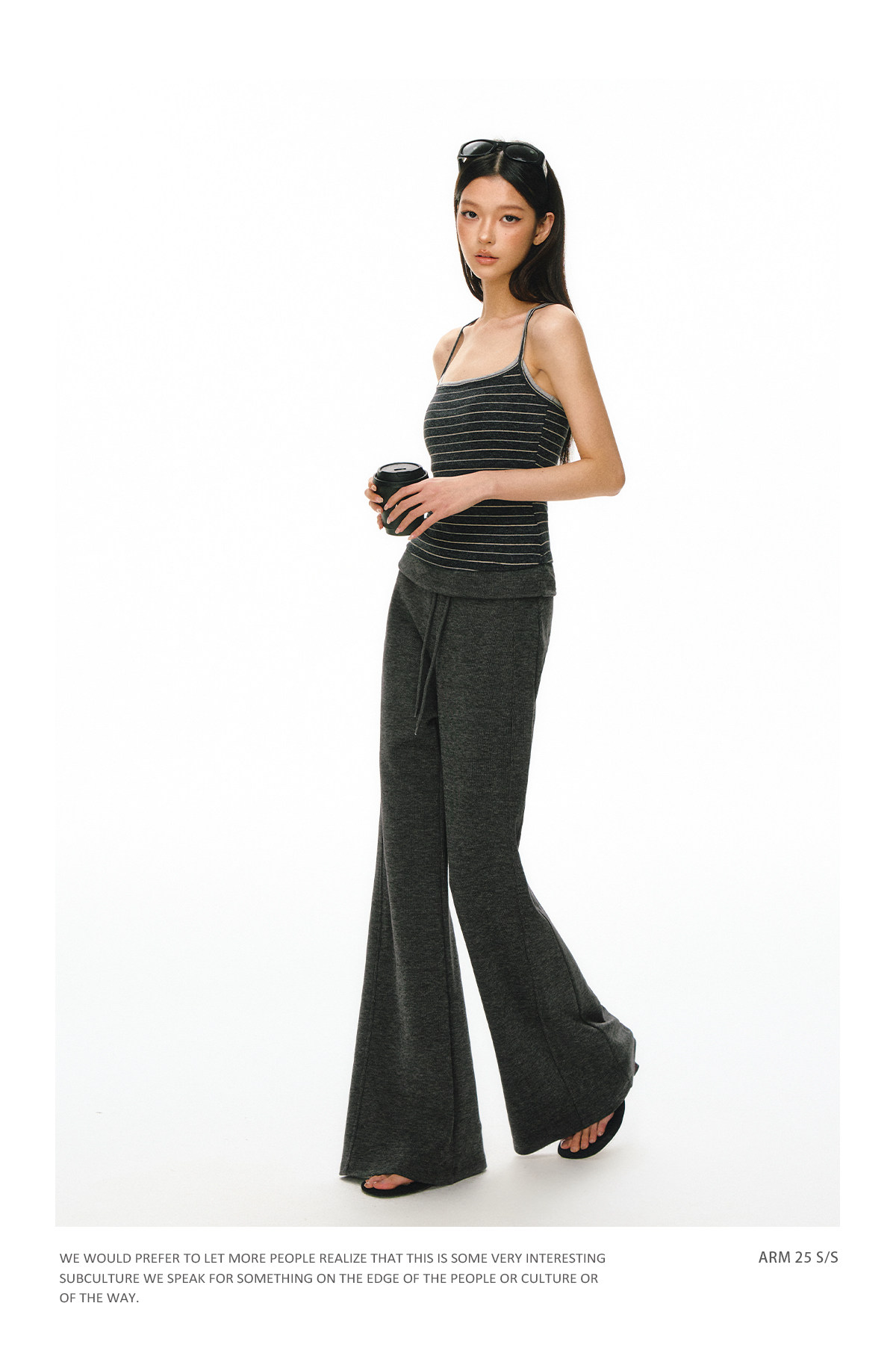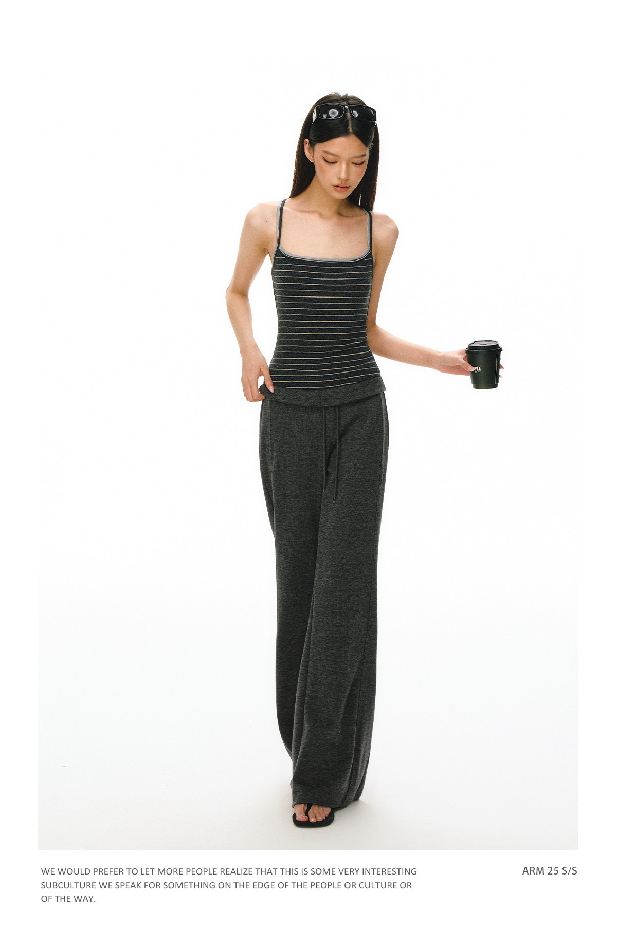 Ariseism 美式复古深灰色翻边宽松卫裤休闲裤女春季新款长裤子