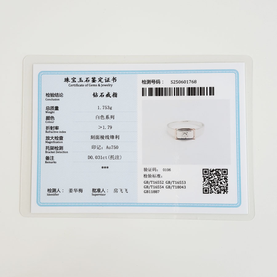 是否镶钻 | 1颗明亮式切割钻石0.031克拉 |