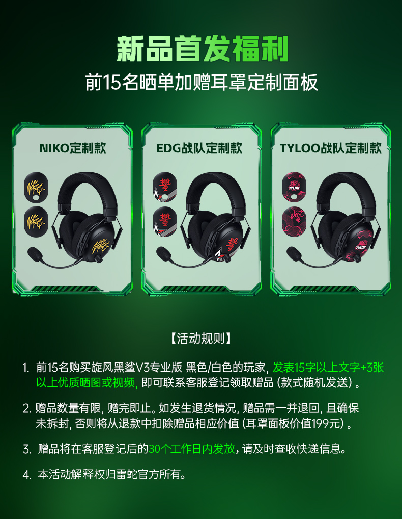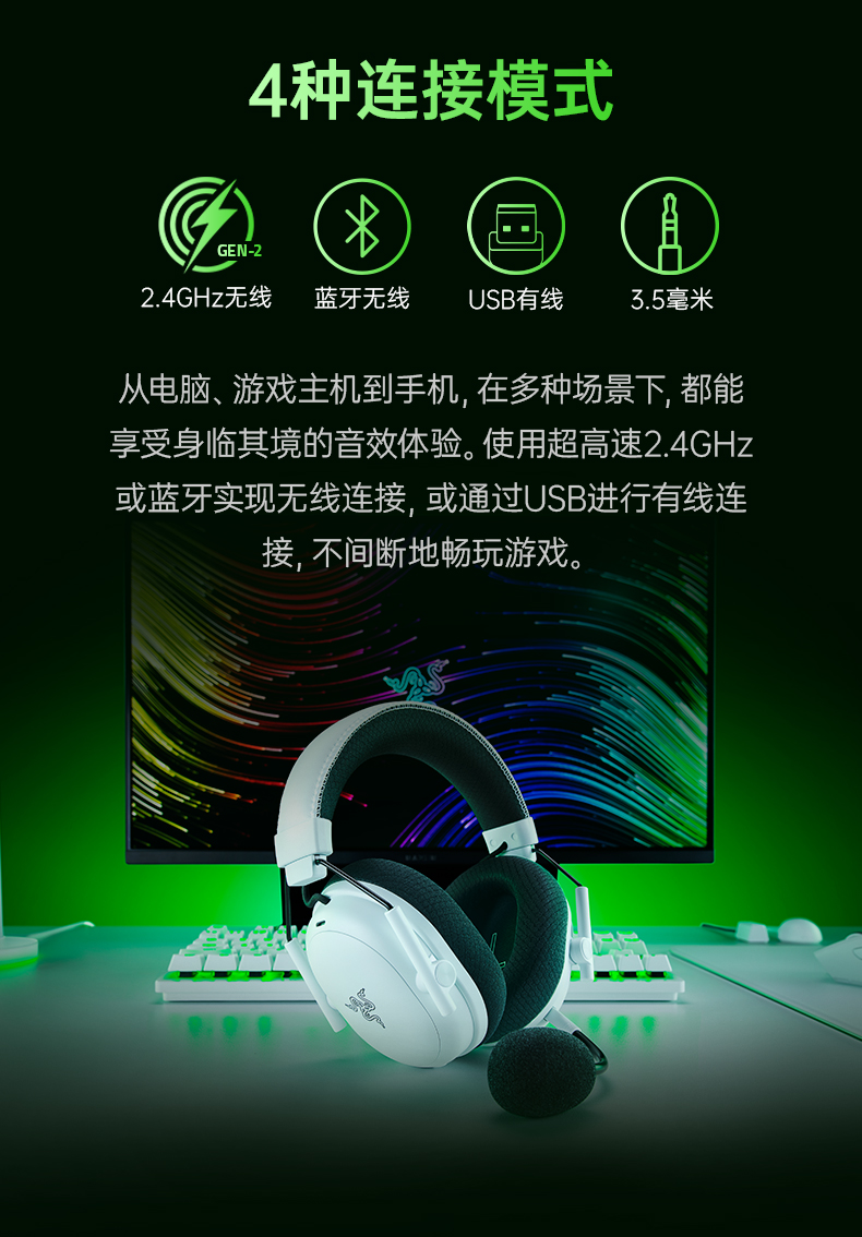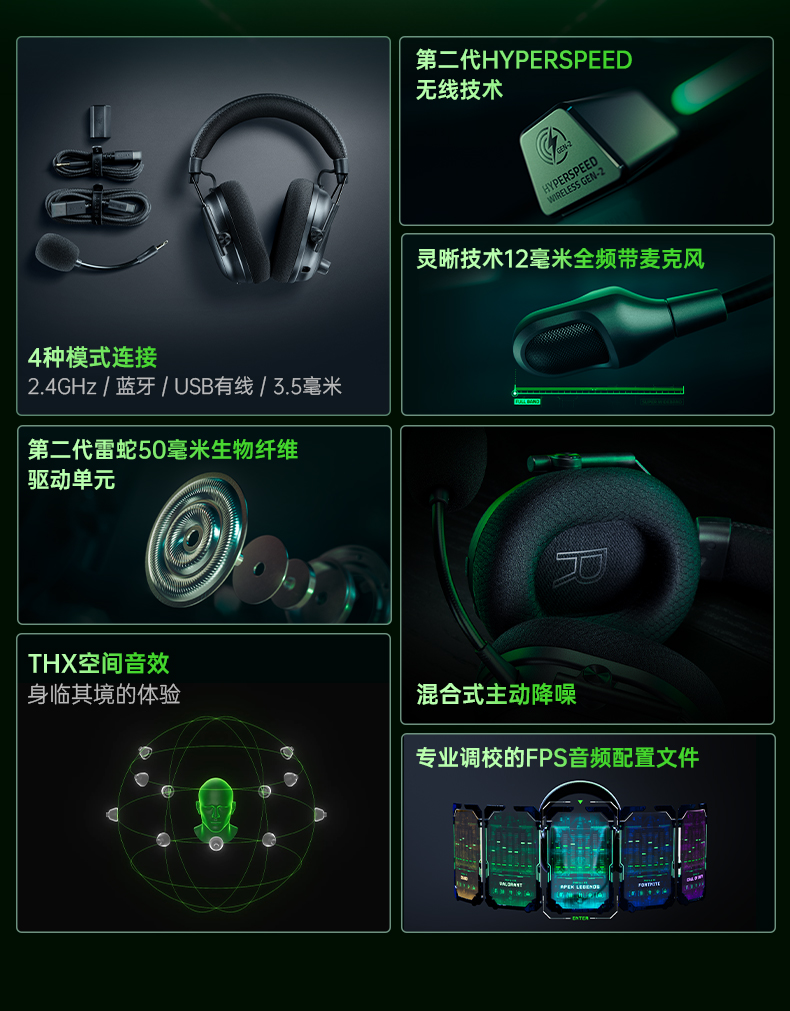 Razer雷蛇 旋风黑鲨V3 Pro专业版四模无线耳机【雷蛇官方直营,3年有限质保】