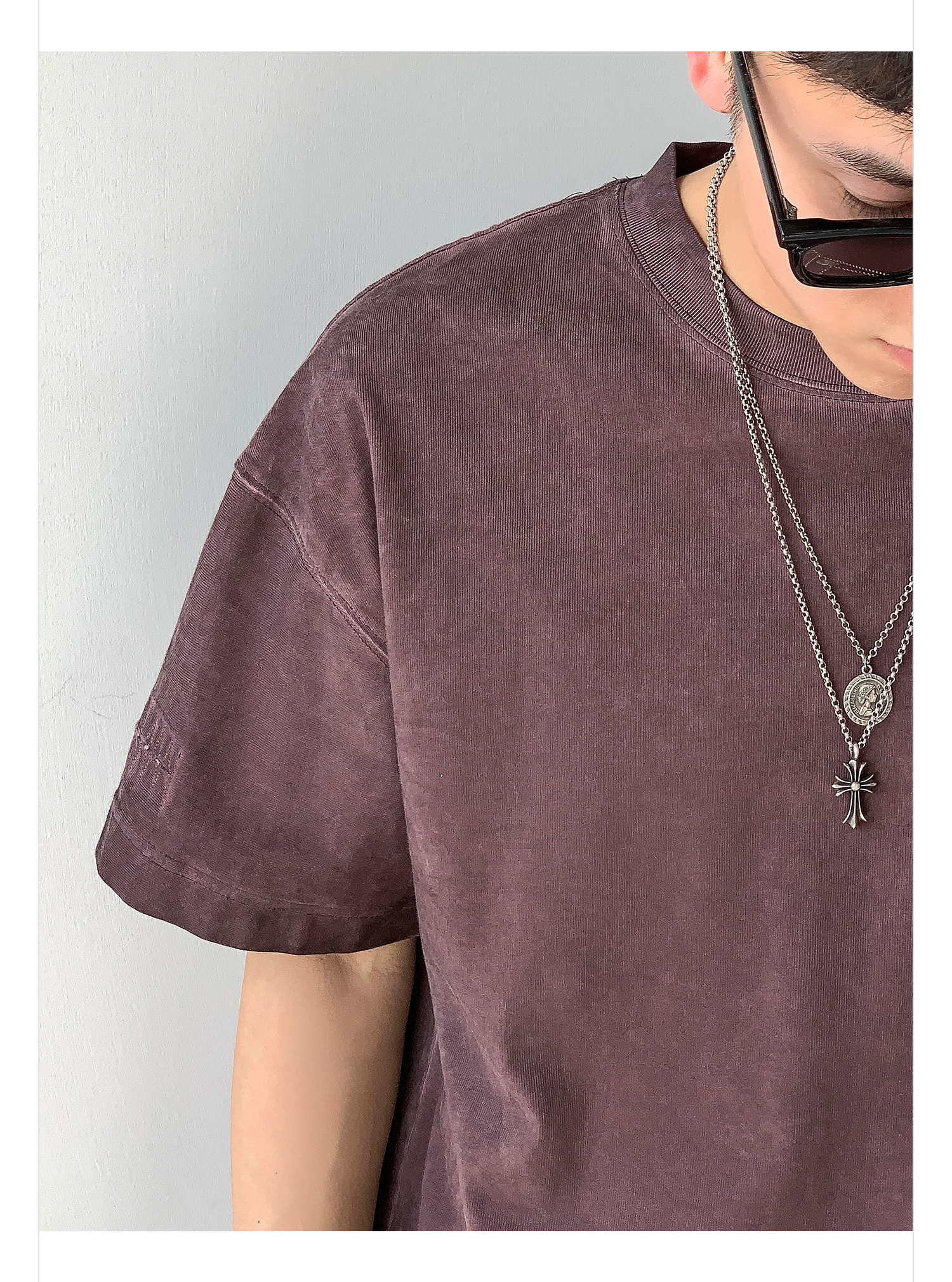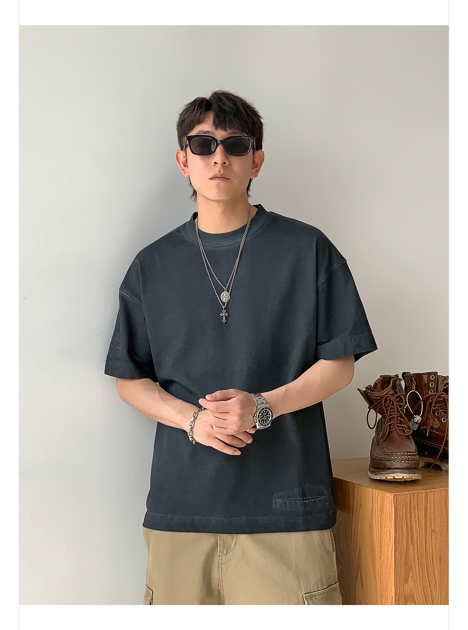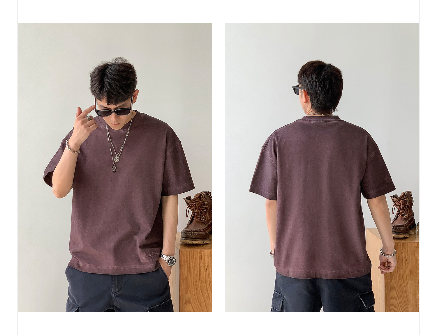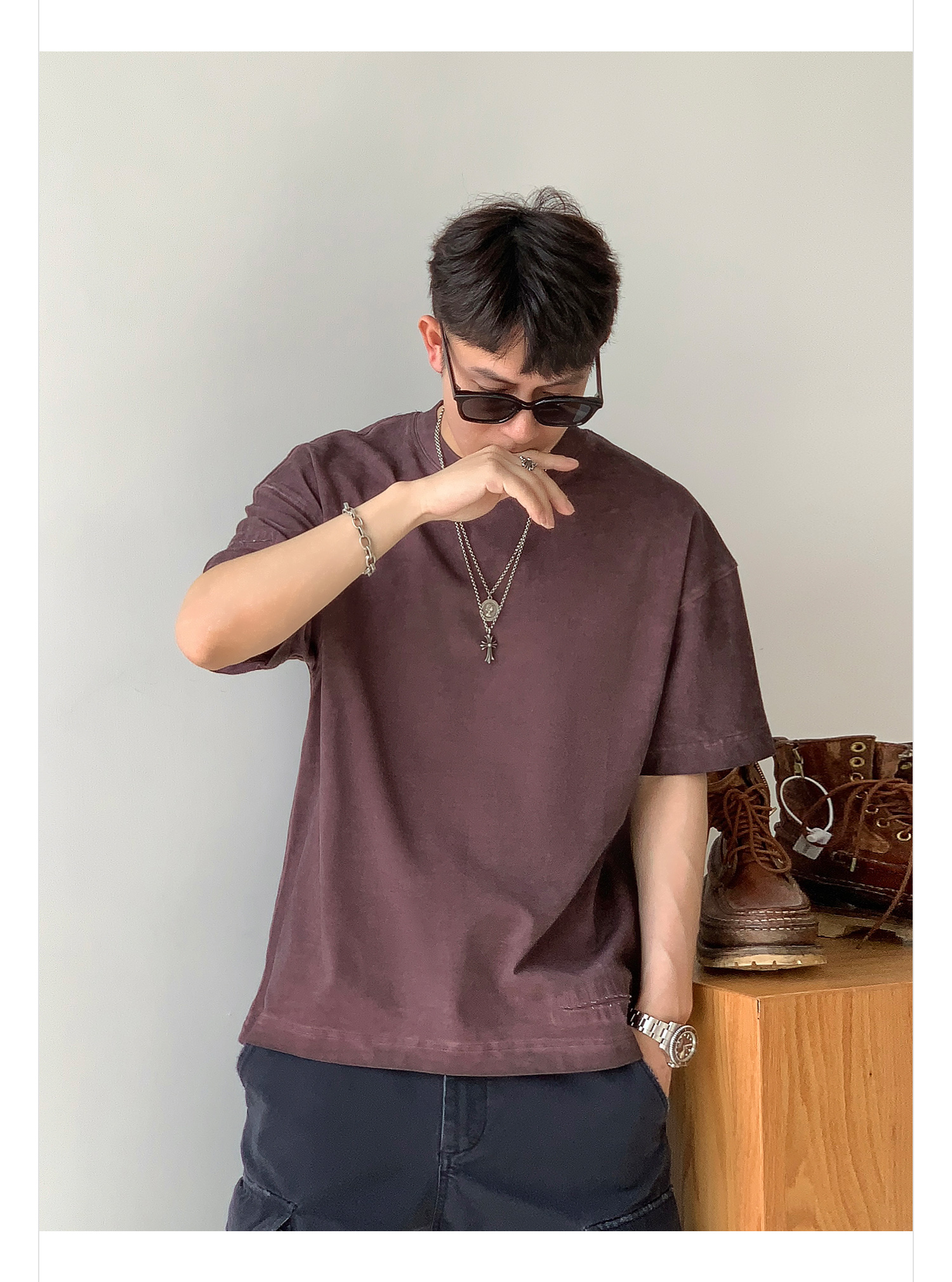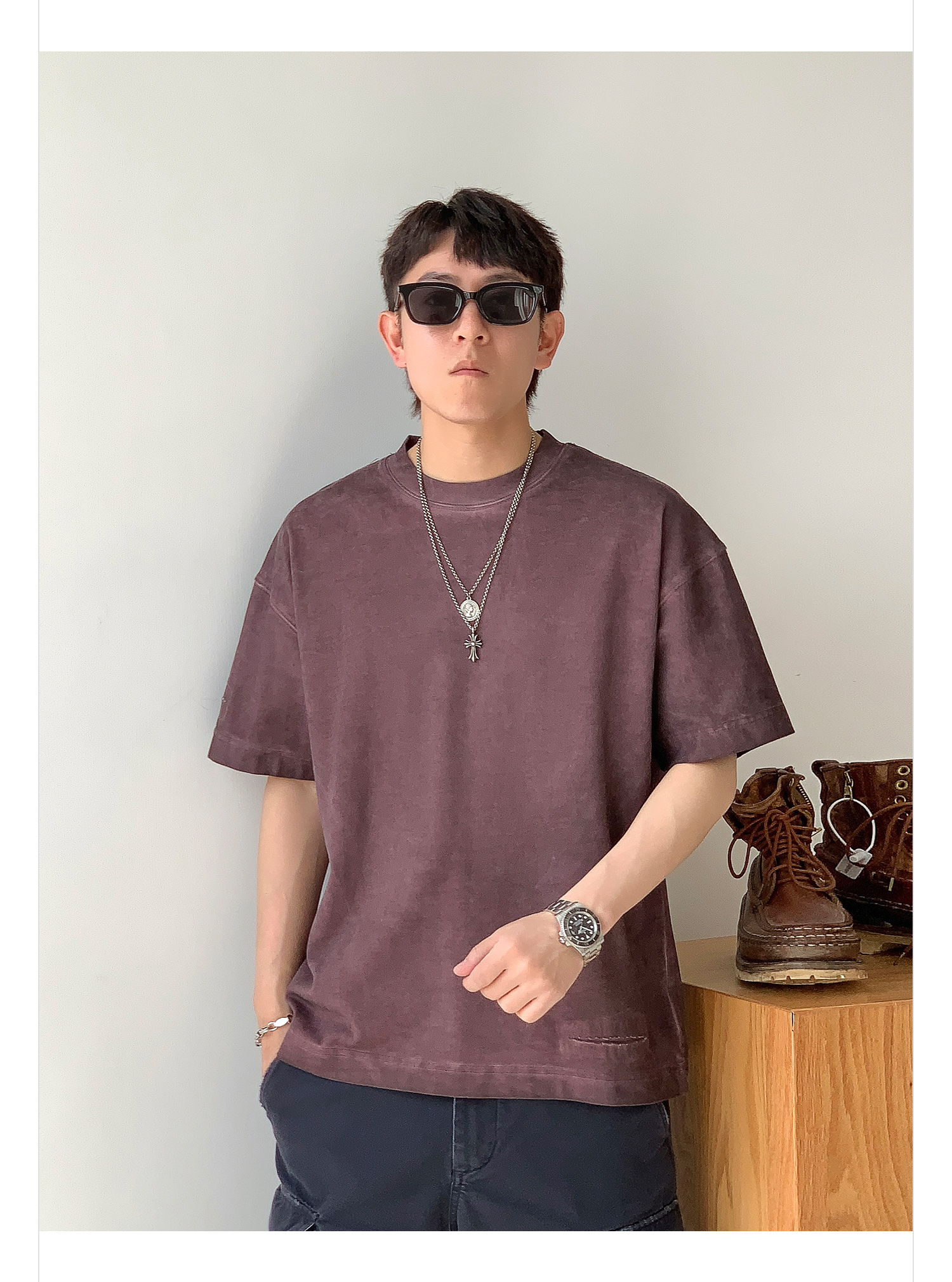 徐太浪日系复古做旧纯色短袖T恤男2025新款夏季宽松纯棉半袖体恤