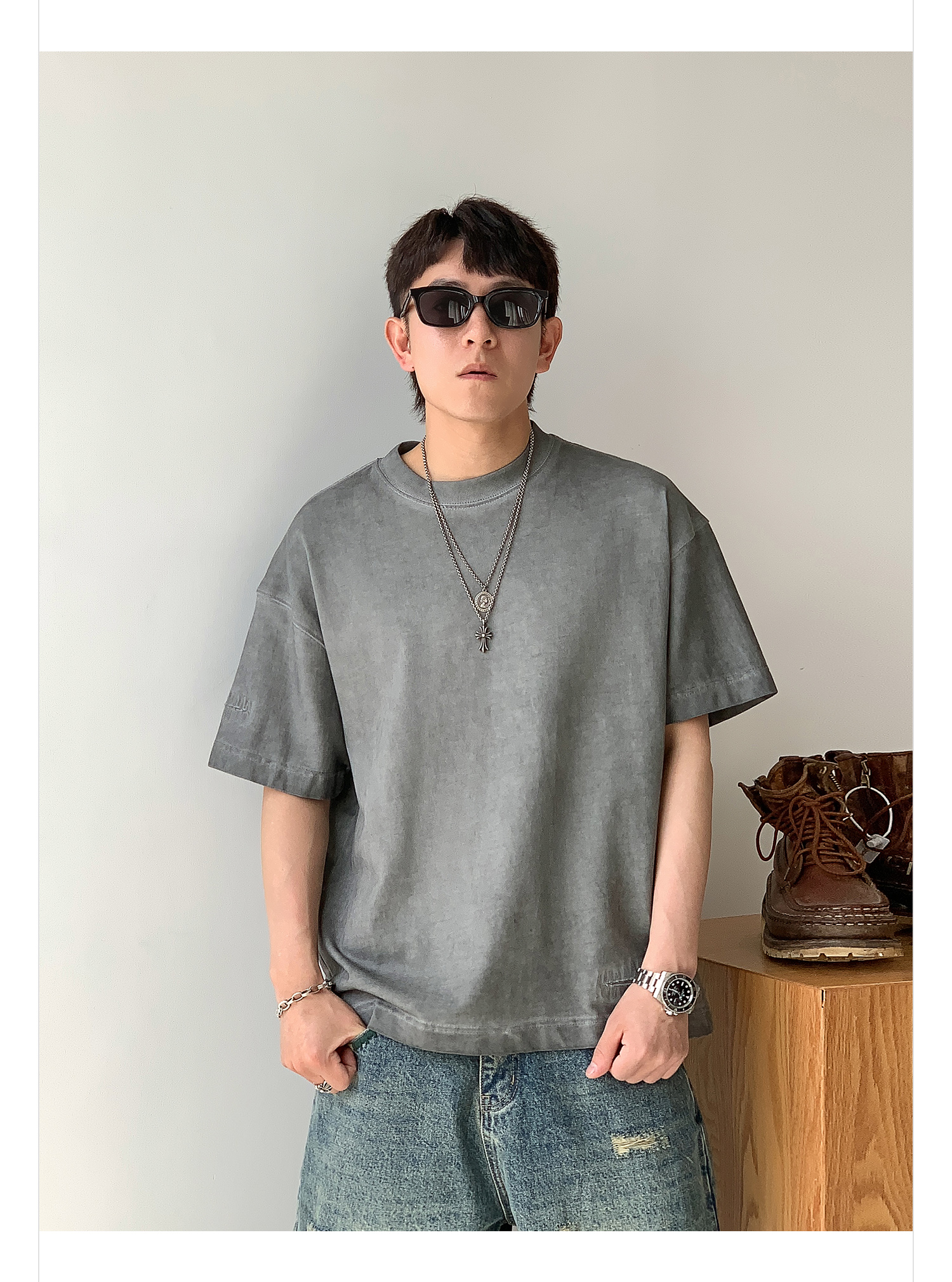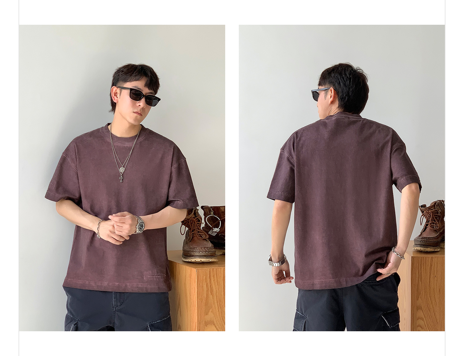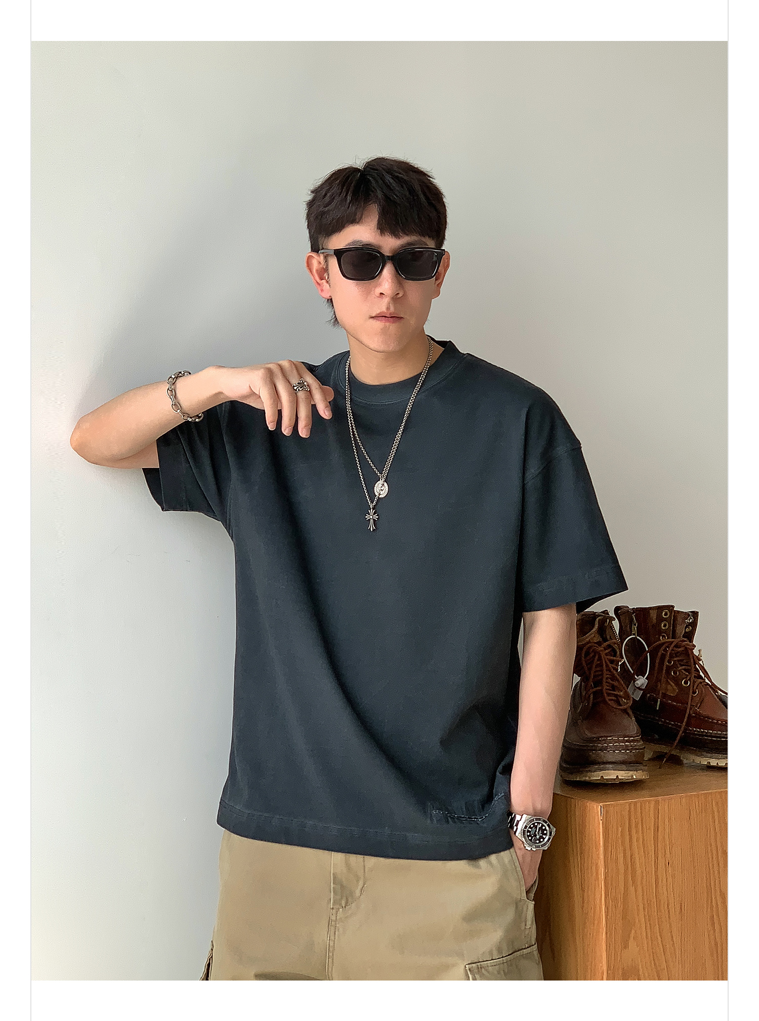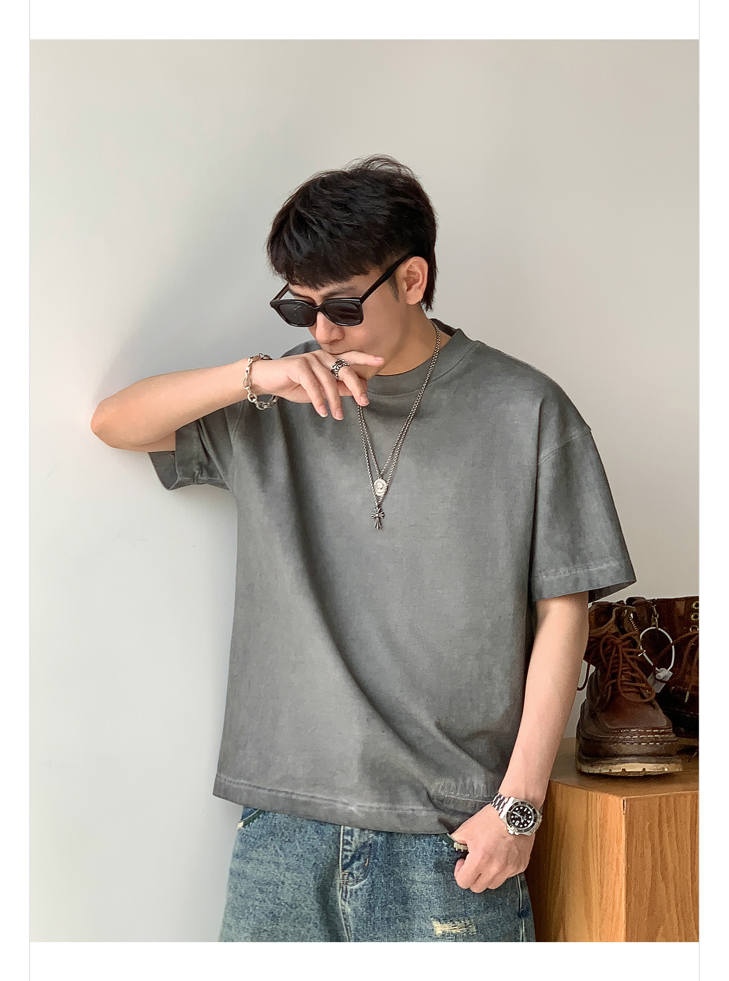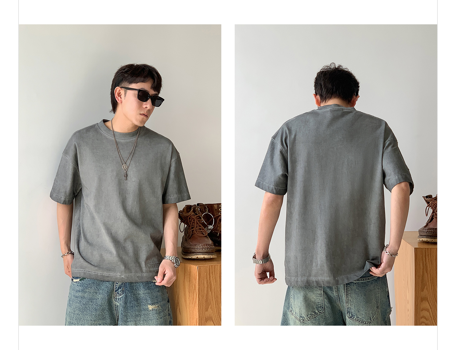 徐太浪日系复古做旧纯色短袖T恤男2025新款夏季宽松纯棉半袖体恤