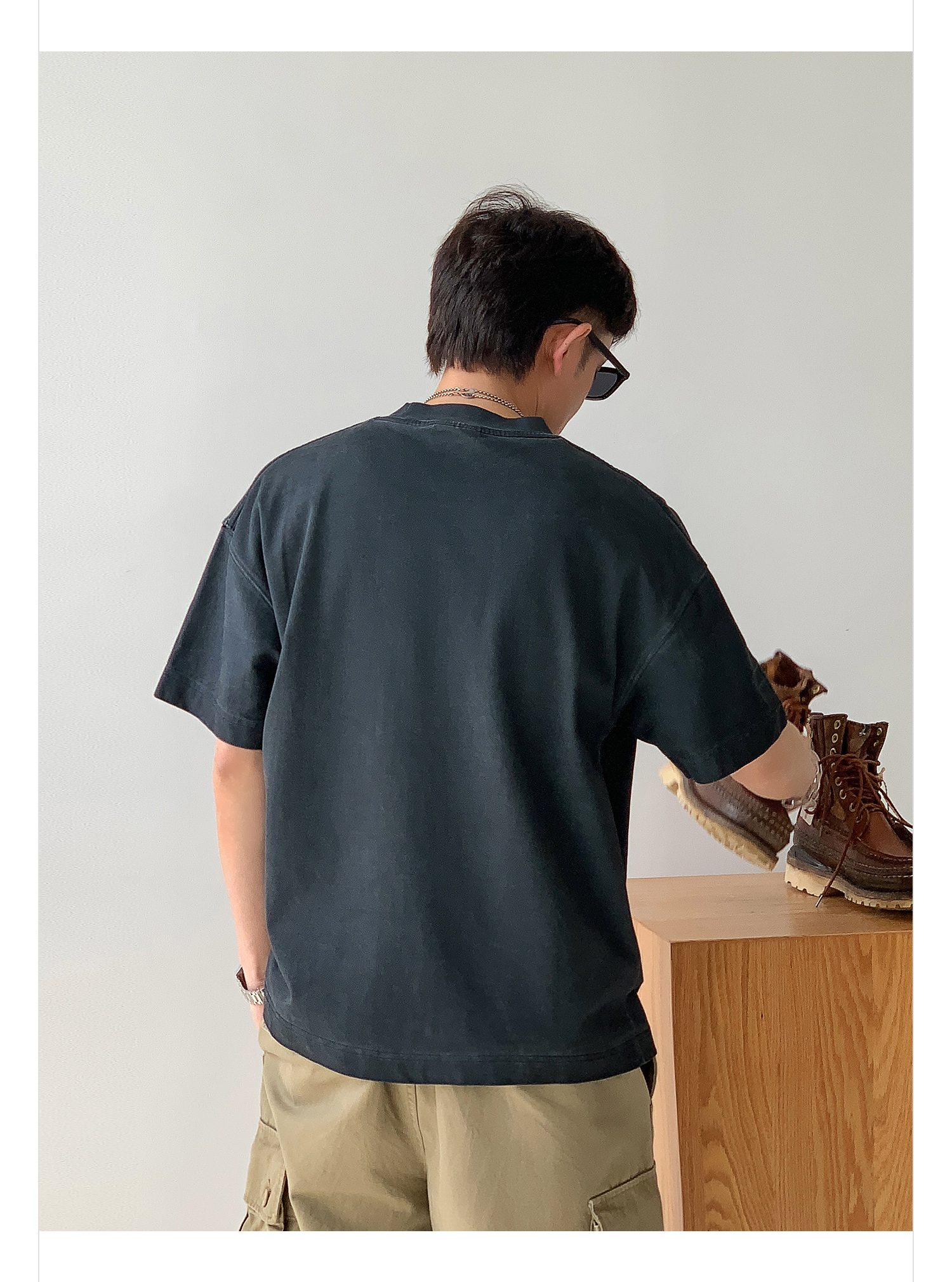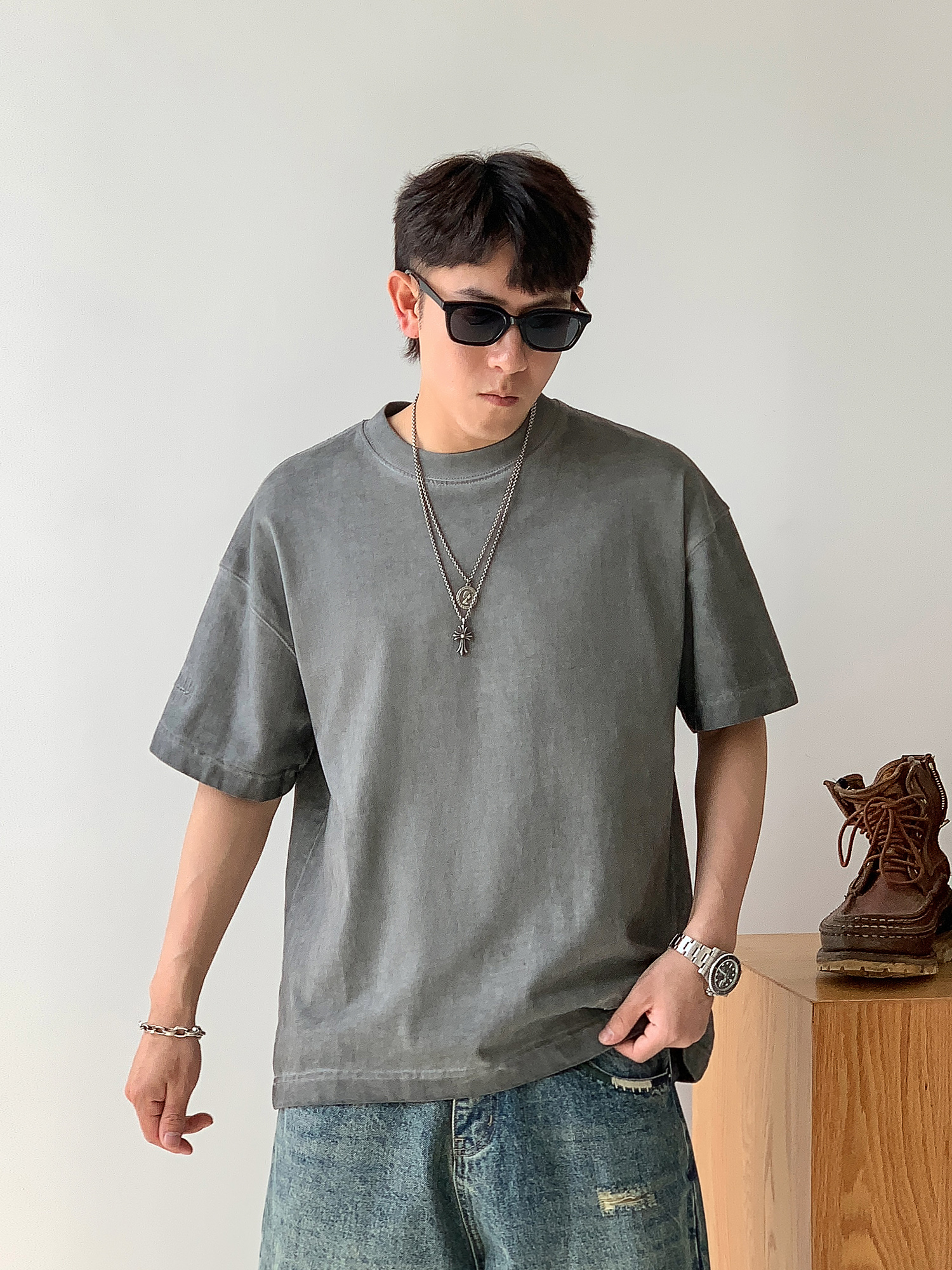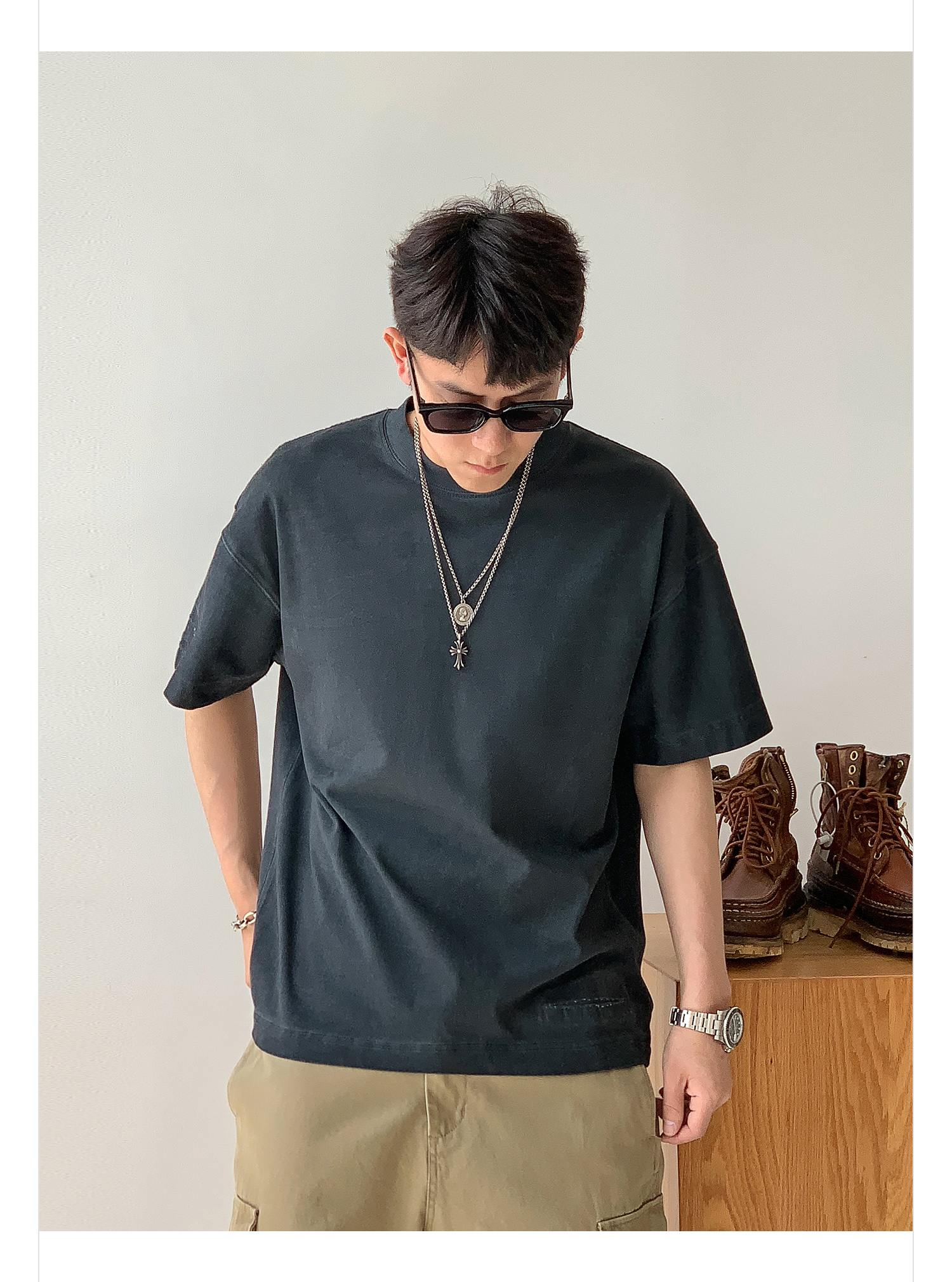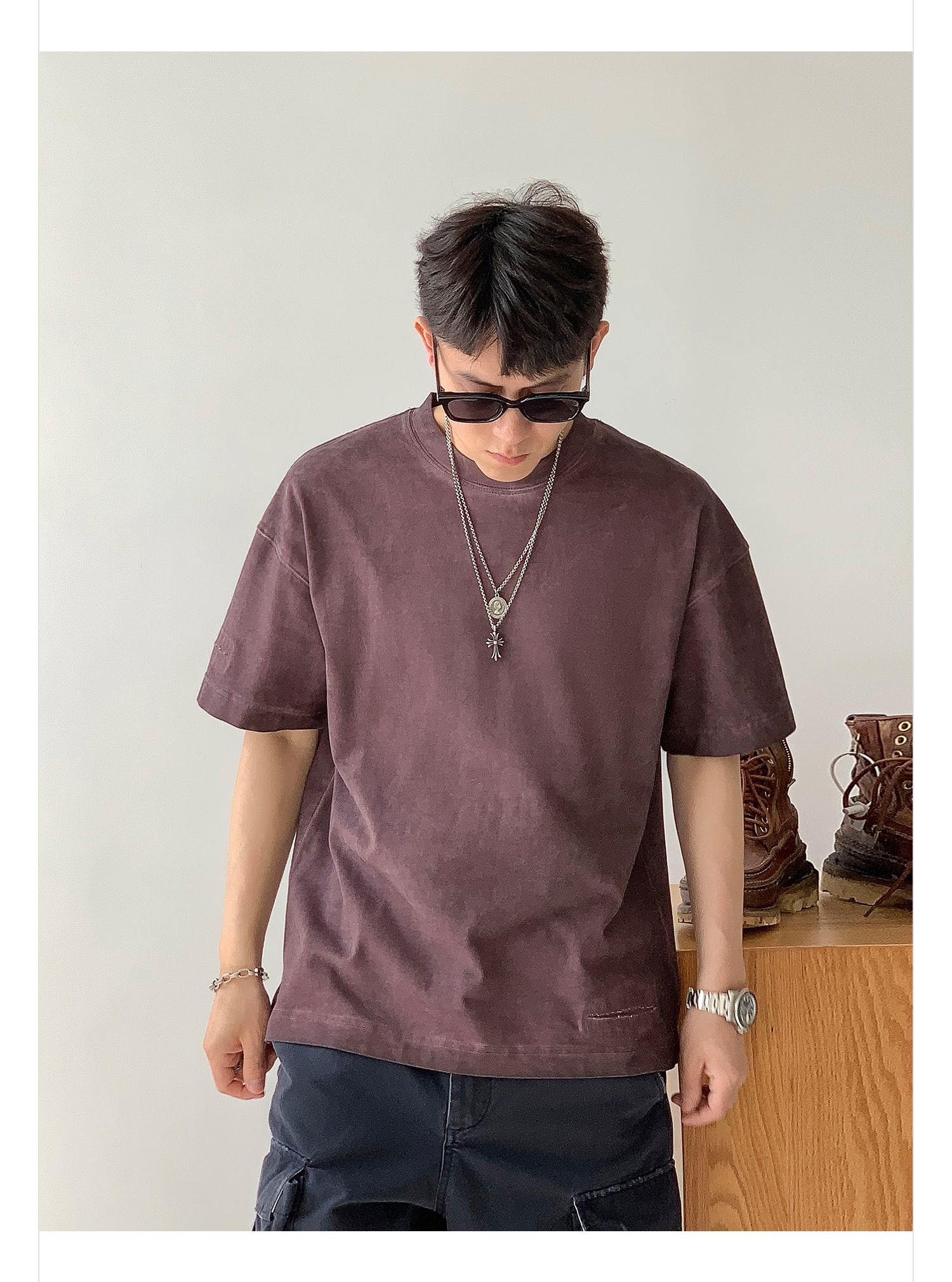 徐太浪日系复古做旧纯色短袖T恤男2025新款夏季宽松纯棉半袖体恤