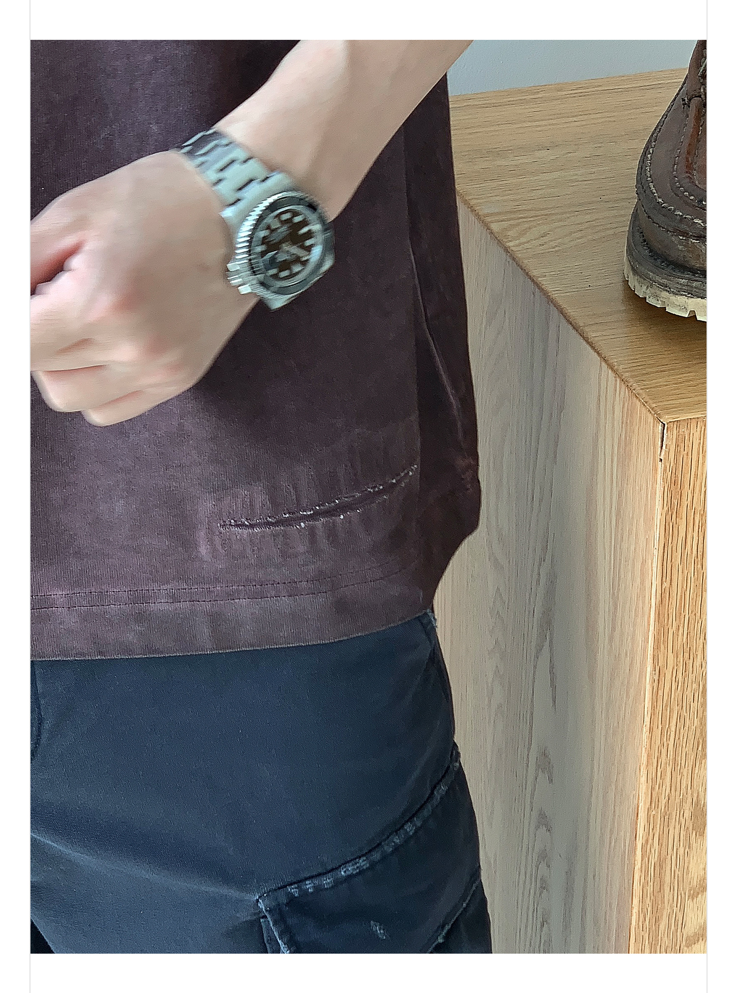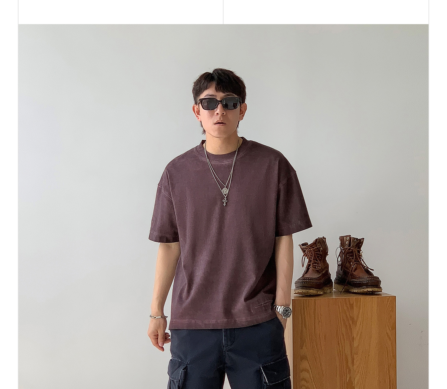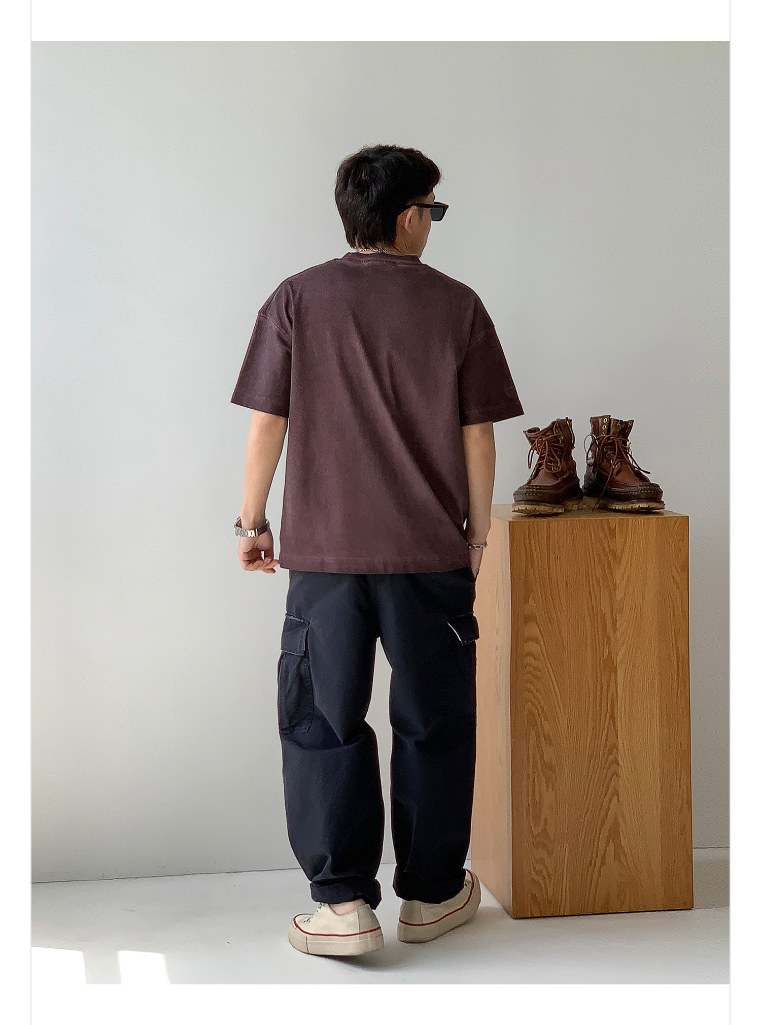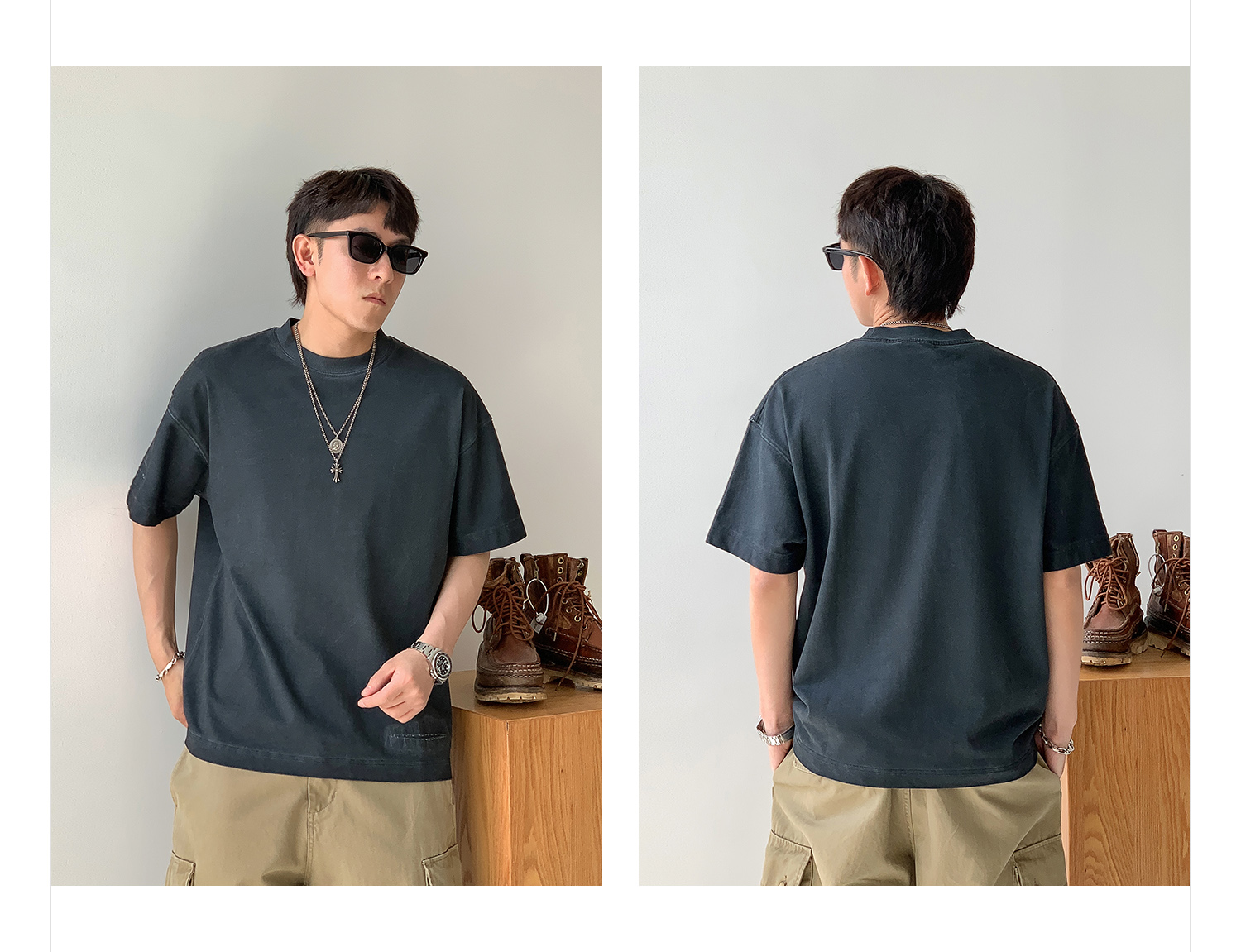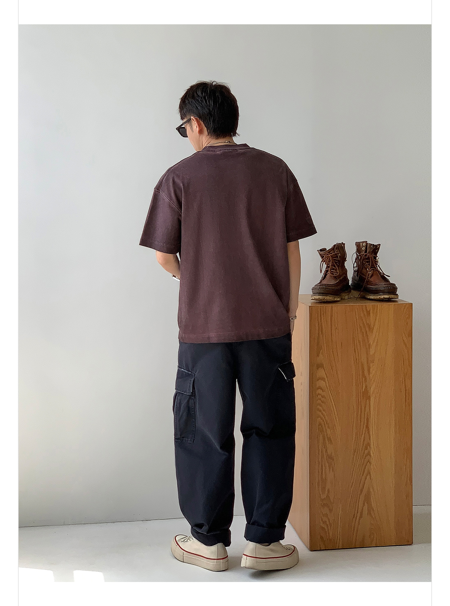 徐太浪日系复古做旧纯色短袖T恤男2025新款夏季宽松纯棉半袖体恤