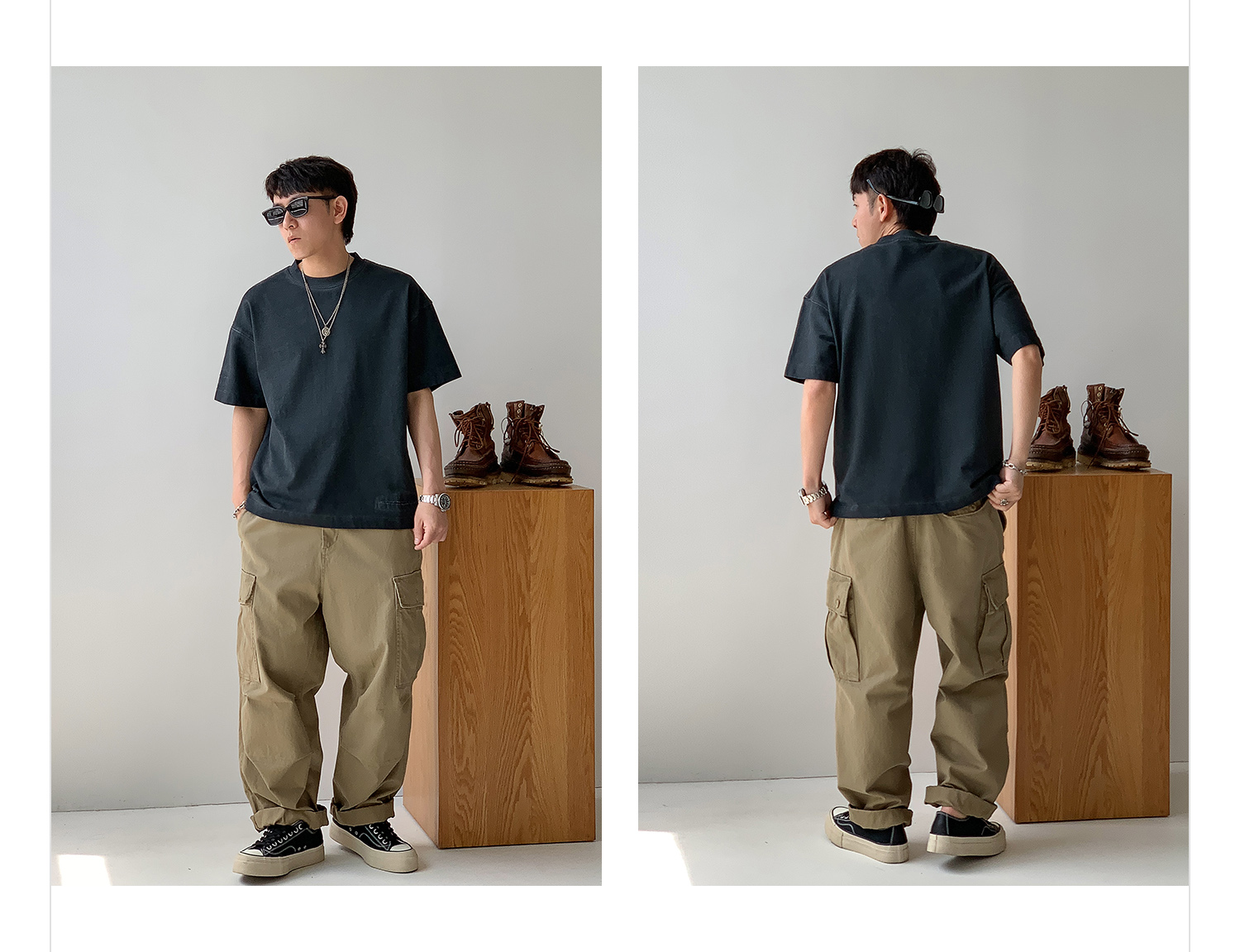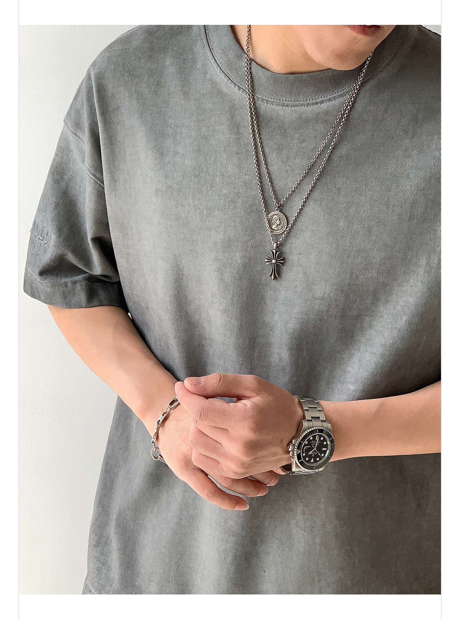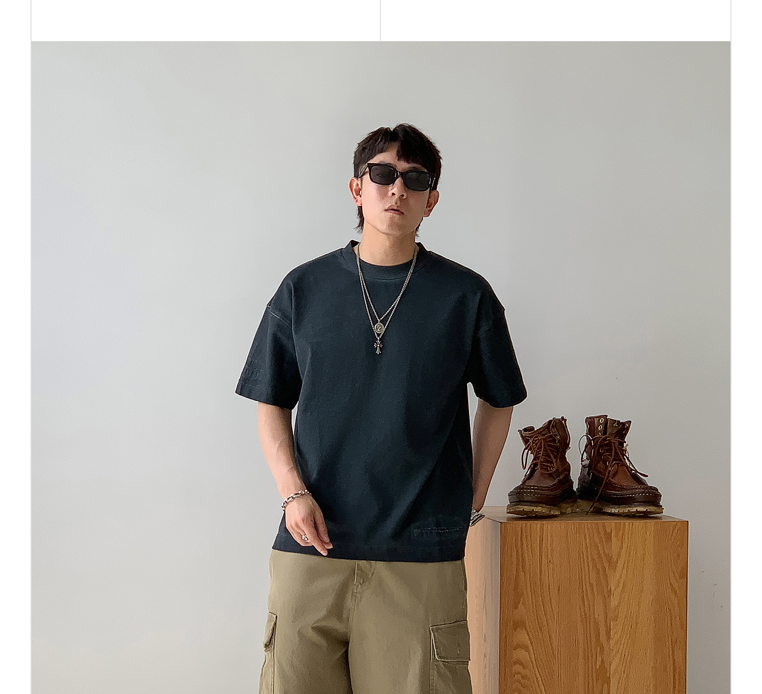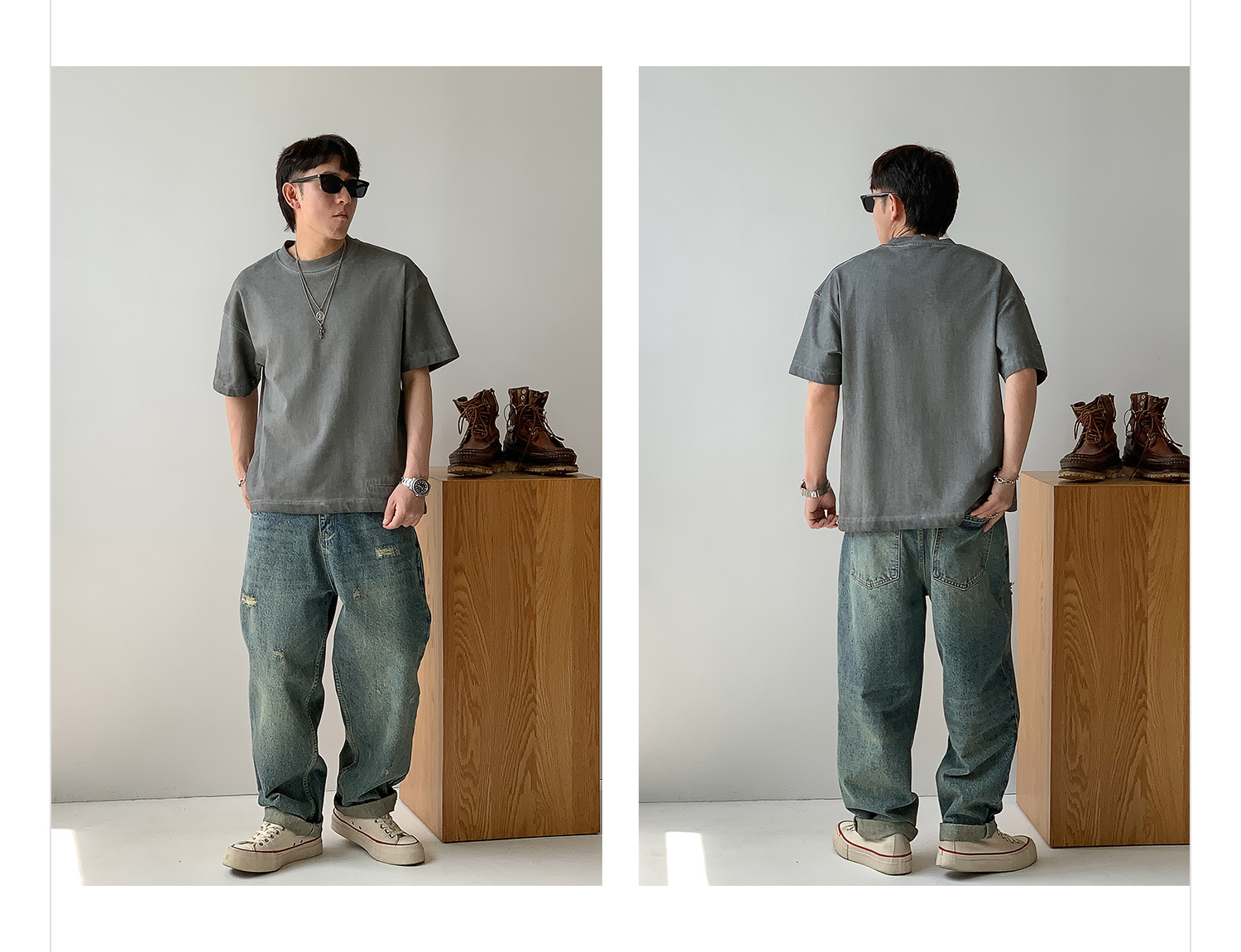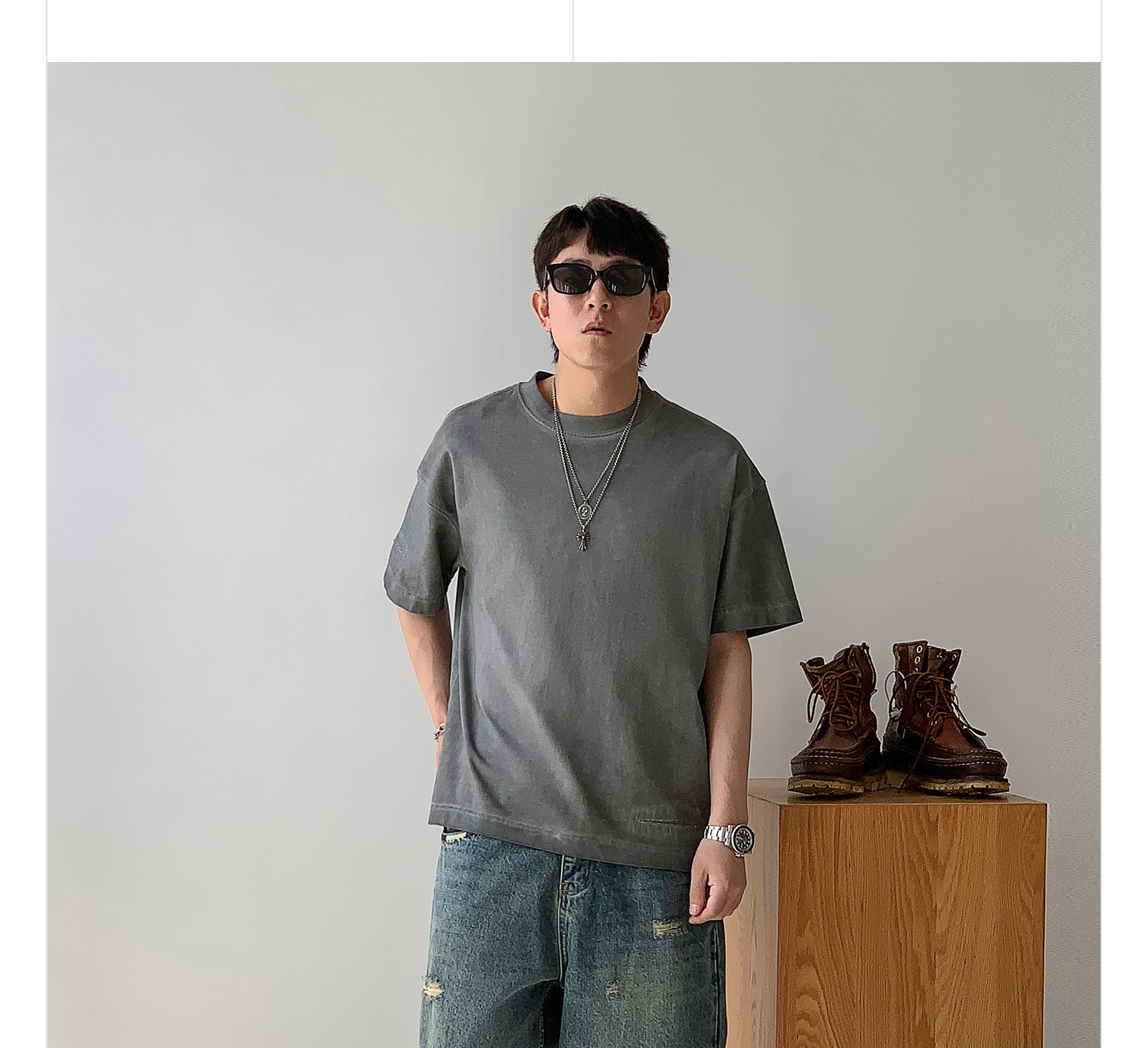 徐太浪日系复古做旧纯色短袖T恤男2025新款夏季宽松纯棉半袖体恤