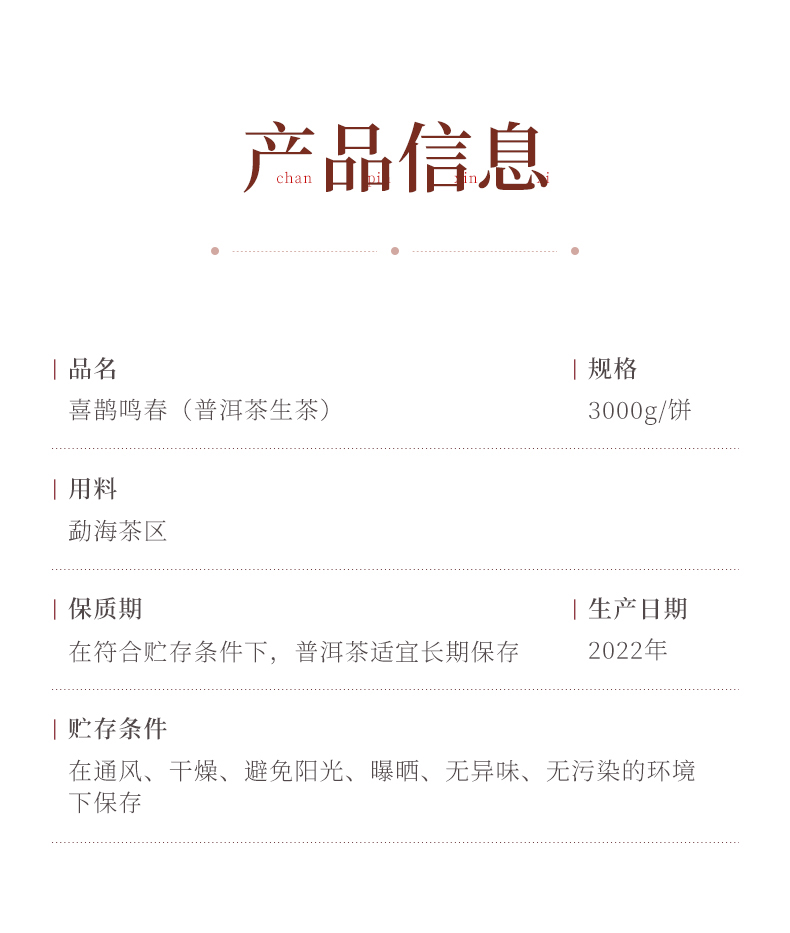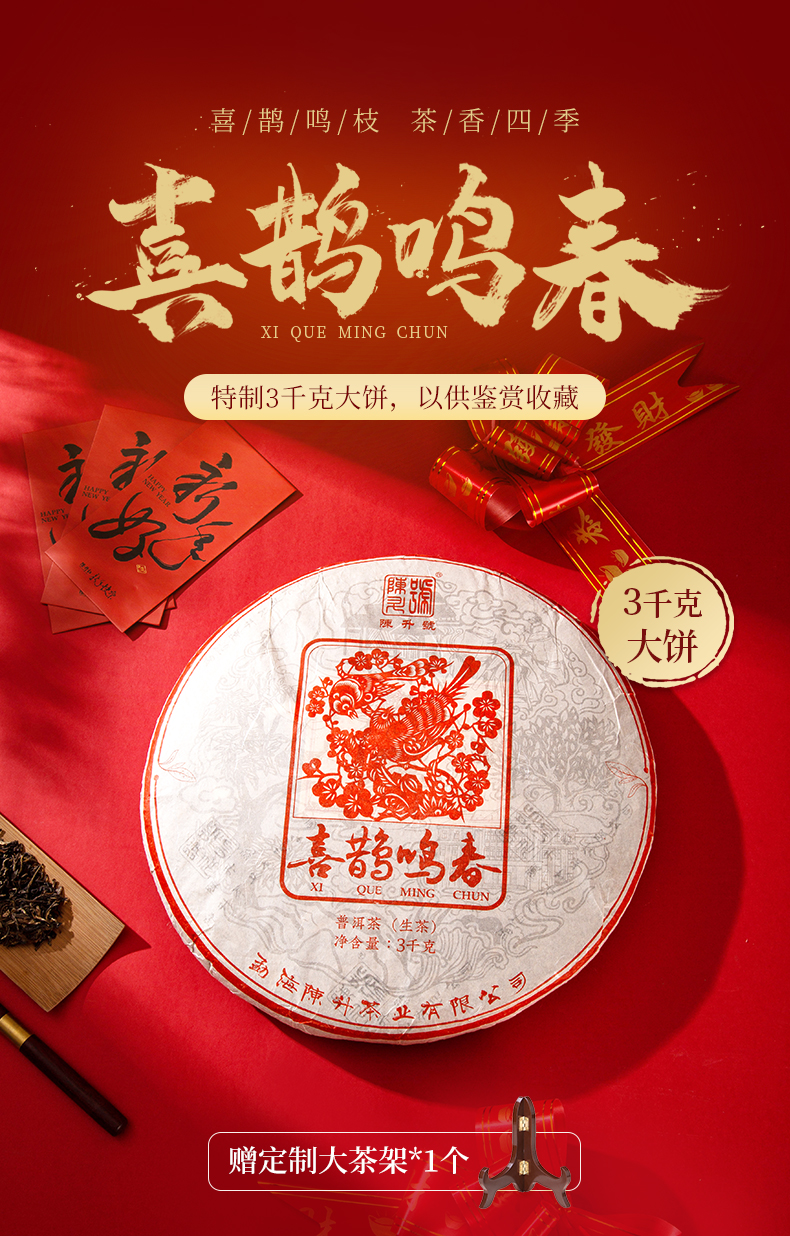 陈升号 2022年喜鹊鸣春3000g普洱生茶大饼送礼佳品