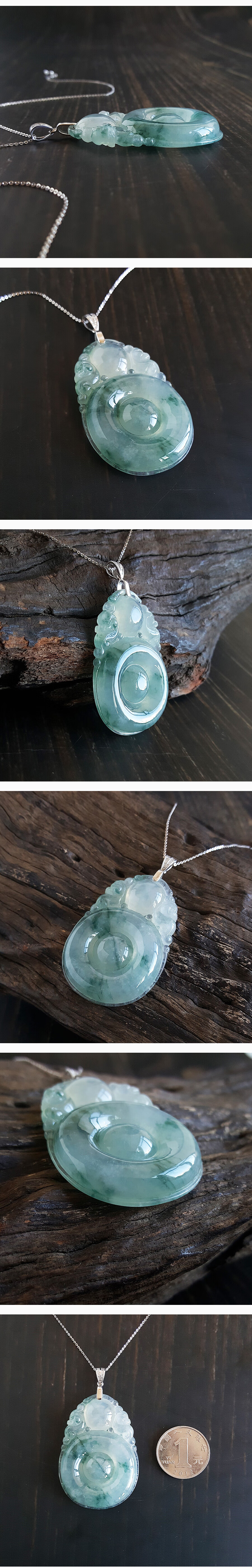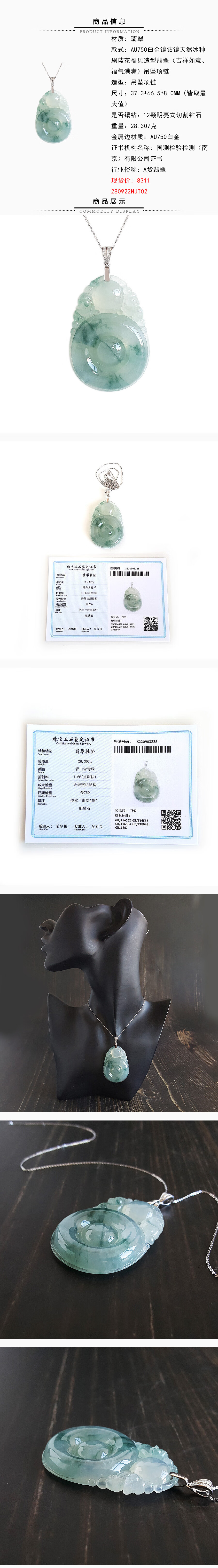 【天然正品】AU750白金 镶天然冰种飘蓝花福贝造型翡翠 吉祥如意 福气满满 吊坠项链280922NJT02