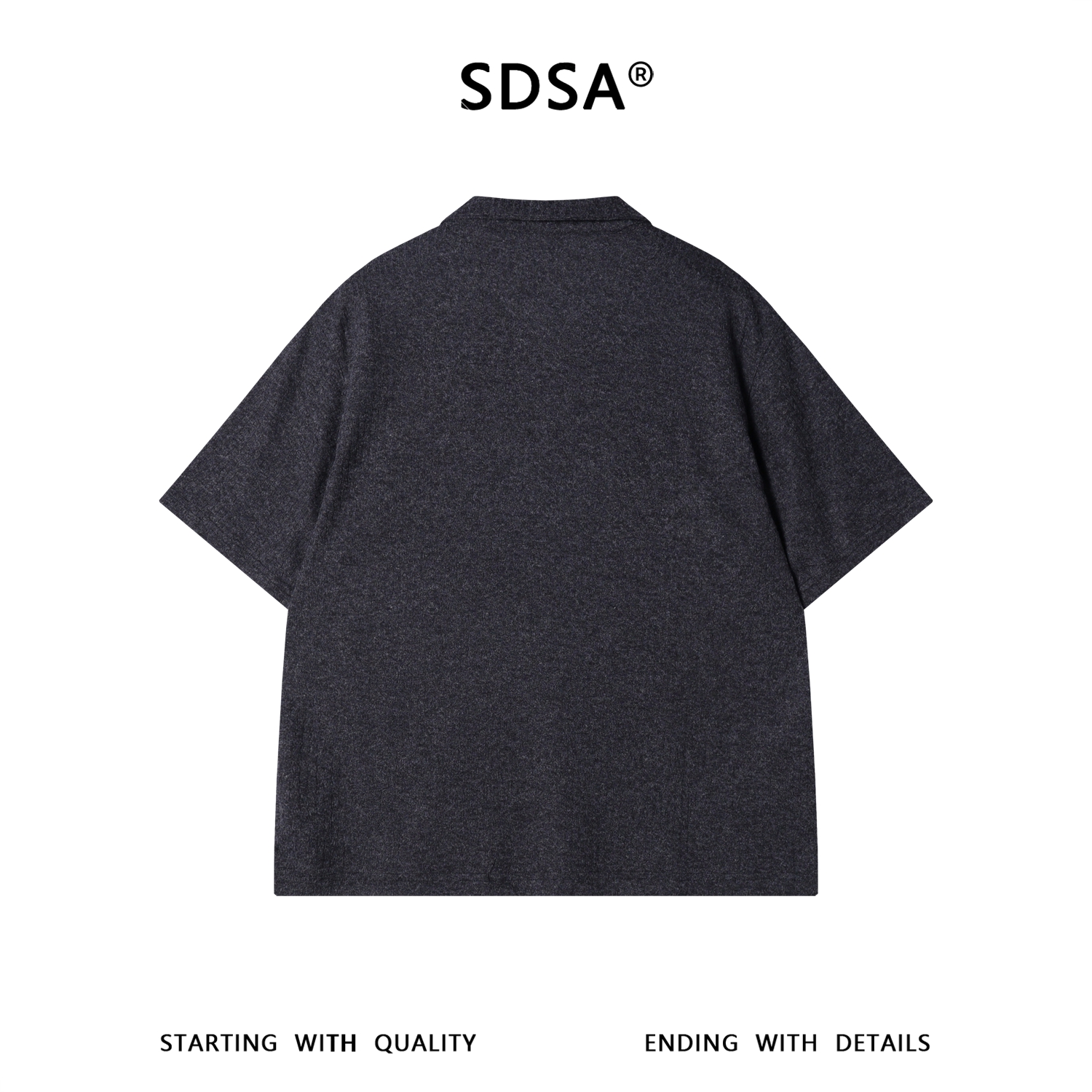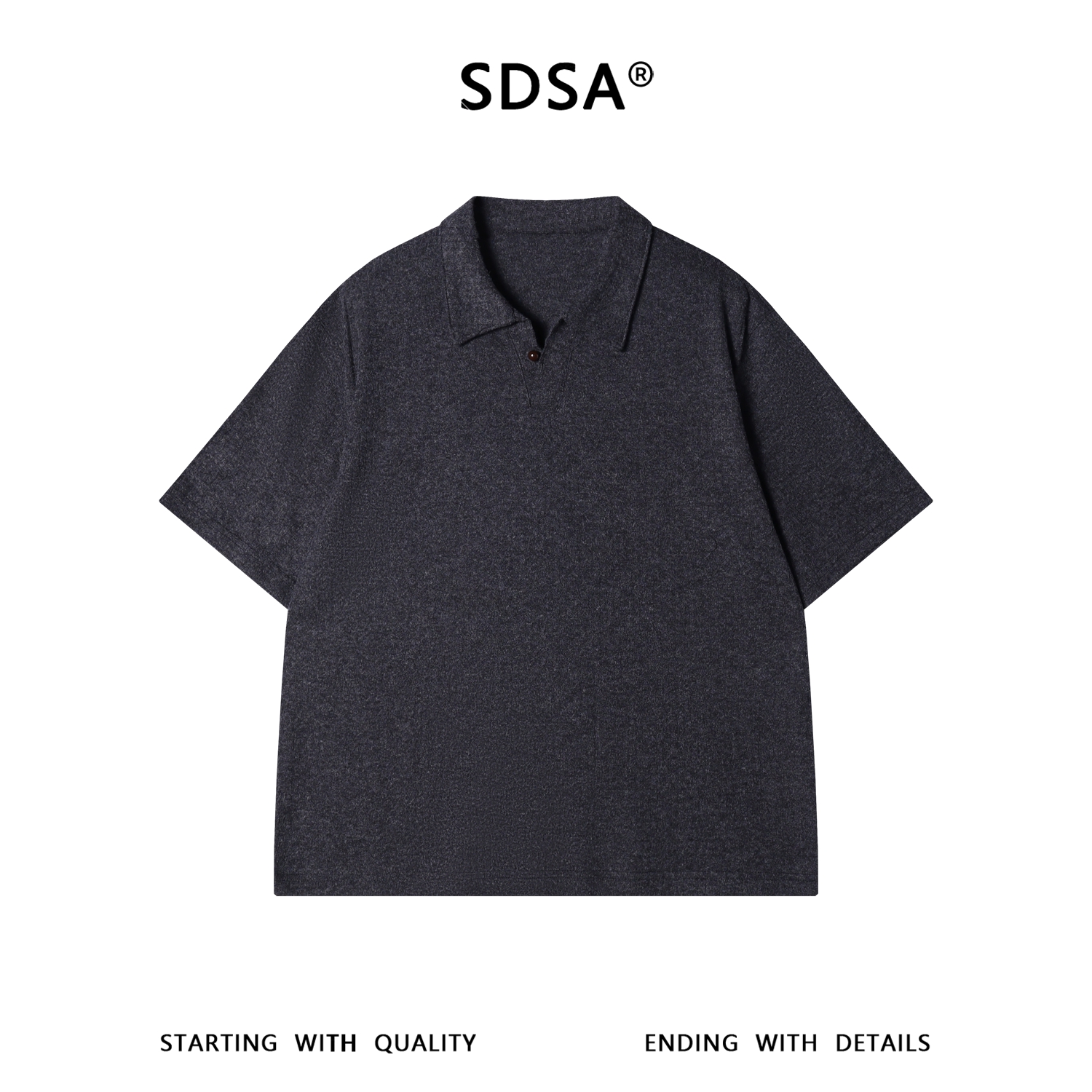 SDSA男装2026新款高贵轻奢纯色肌理竖纹针织翻领宽松休闲短袖上衣