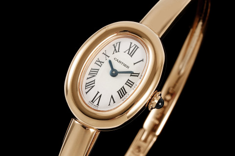 晶镜面。卡地亚腕表重新演绎传统圆形腕表造型,