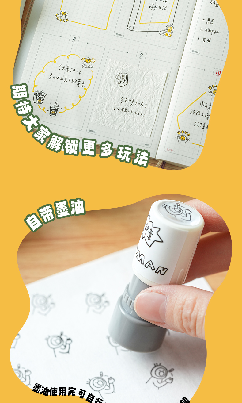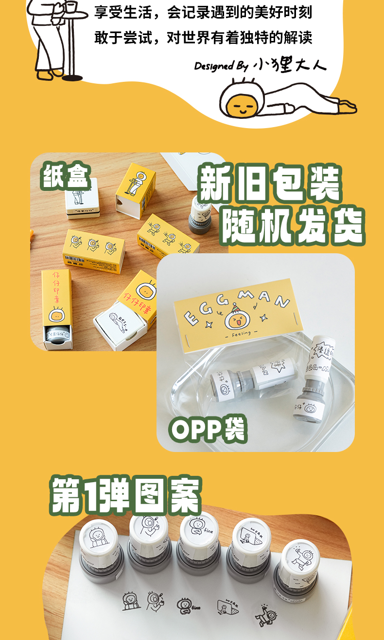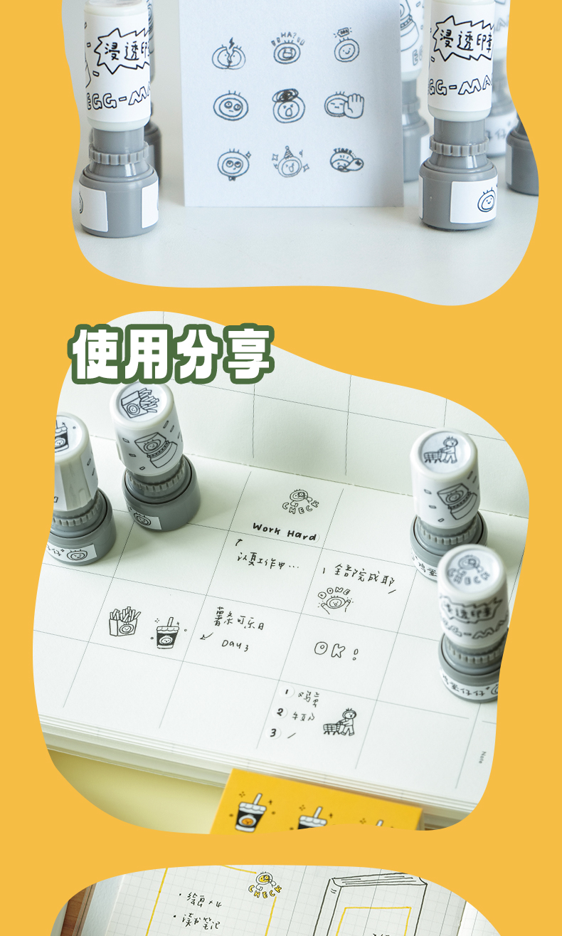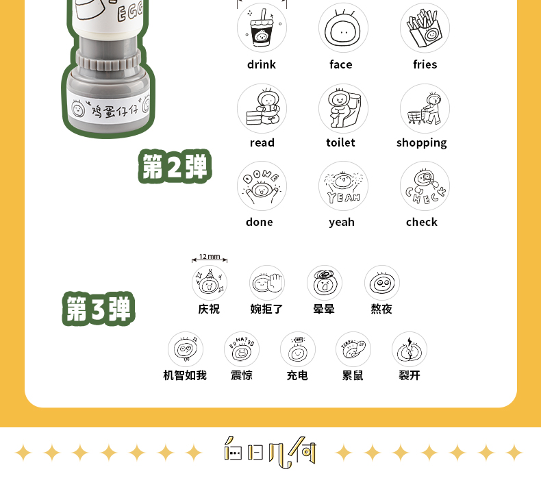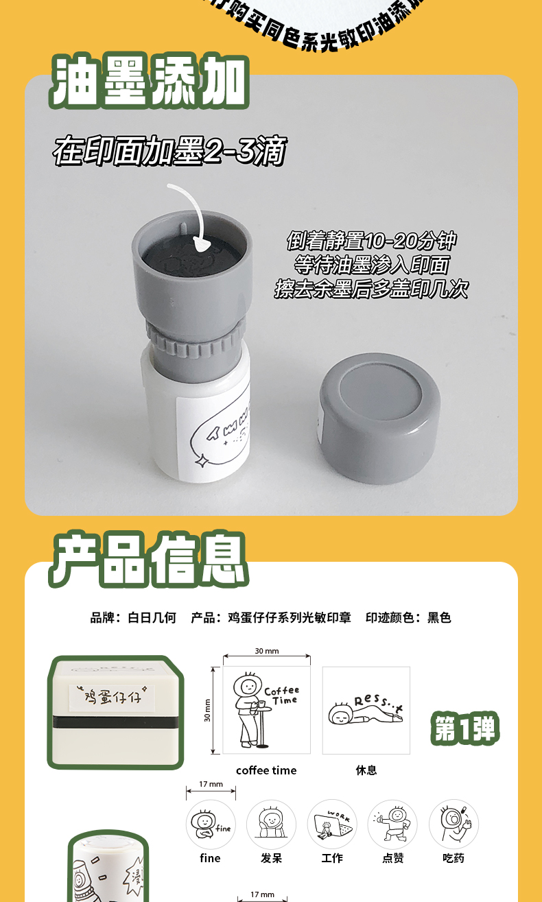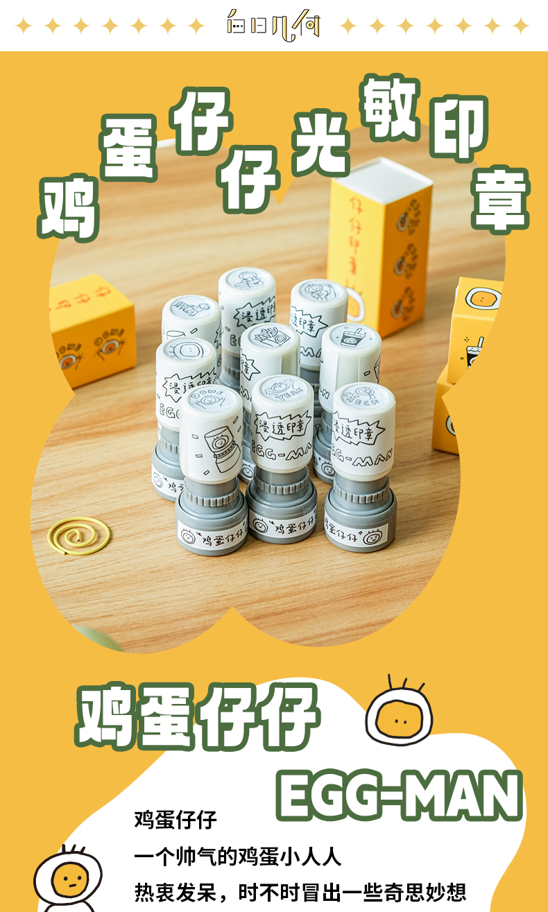 白日几何 鸡蛋仔仔系列光敏印章 三弹合集 生活记录自带油墨新品心情记录