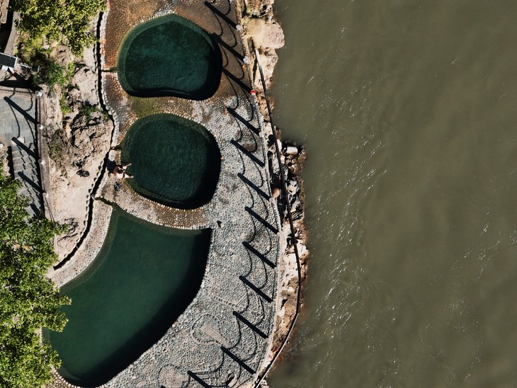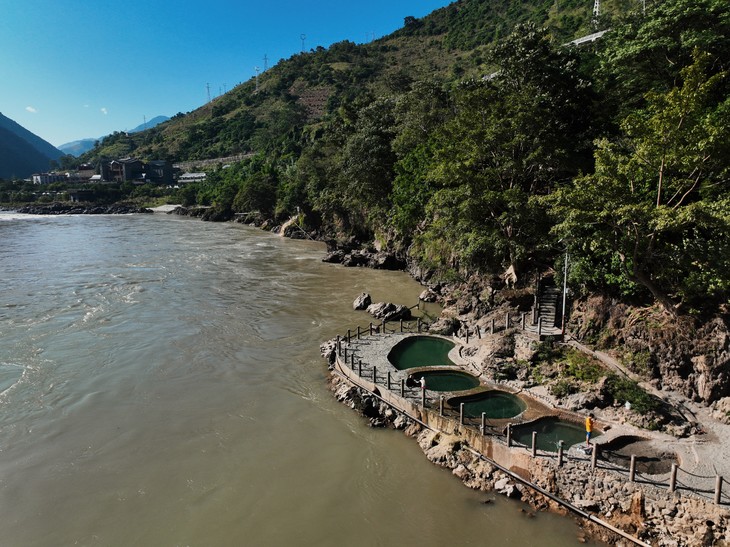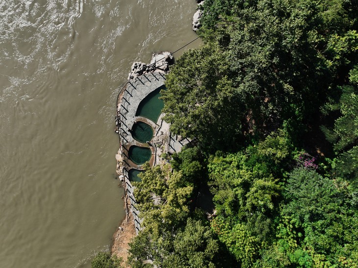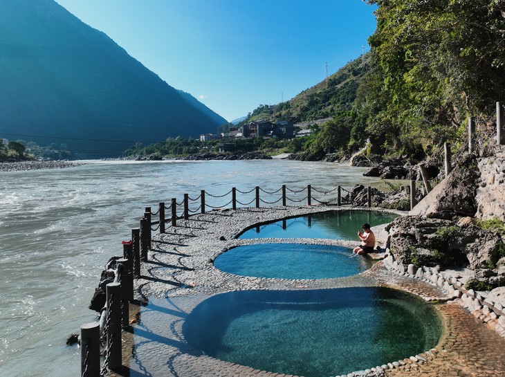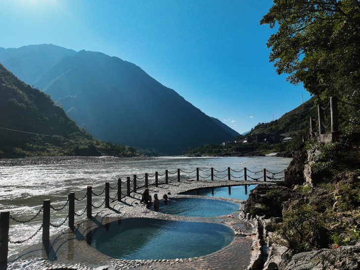 登埂澡堂位于怒江大峡谷边,一排排心形、水滴形、方形的澡堂,热气腾腾,仿佛是大自然中的秘密花园。泡在天然温泉里,感受天然的温泉水,抬头就是怒江的碧绿江水和蓝天白云,惬意又放松。
