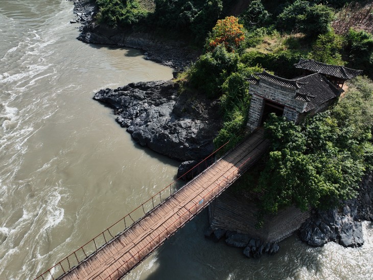 双虹桥是怒江最古老的铁链吊桥,至今已有200多年,也是云南省文物保护单位。桥两端建关楼现存东关楼,穿斗式土木结构,为西南丝道上的重要桥梁,桥两岸主要为傣族及彝族,其唯一性和历史价值意义很值得一看。
