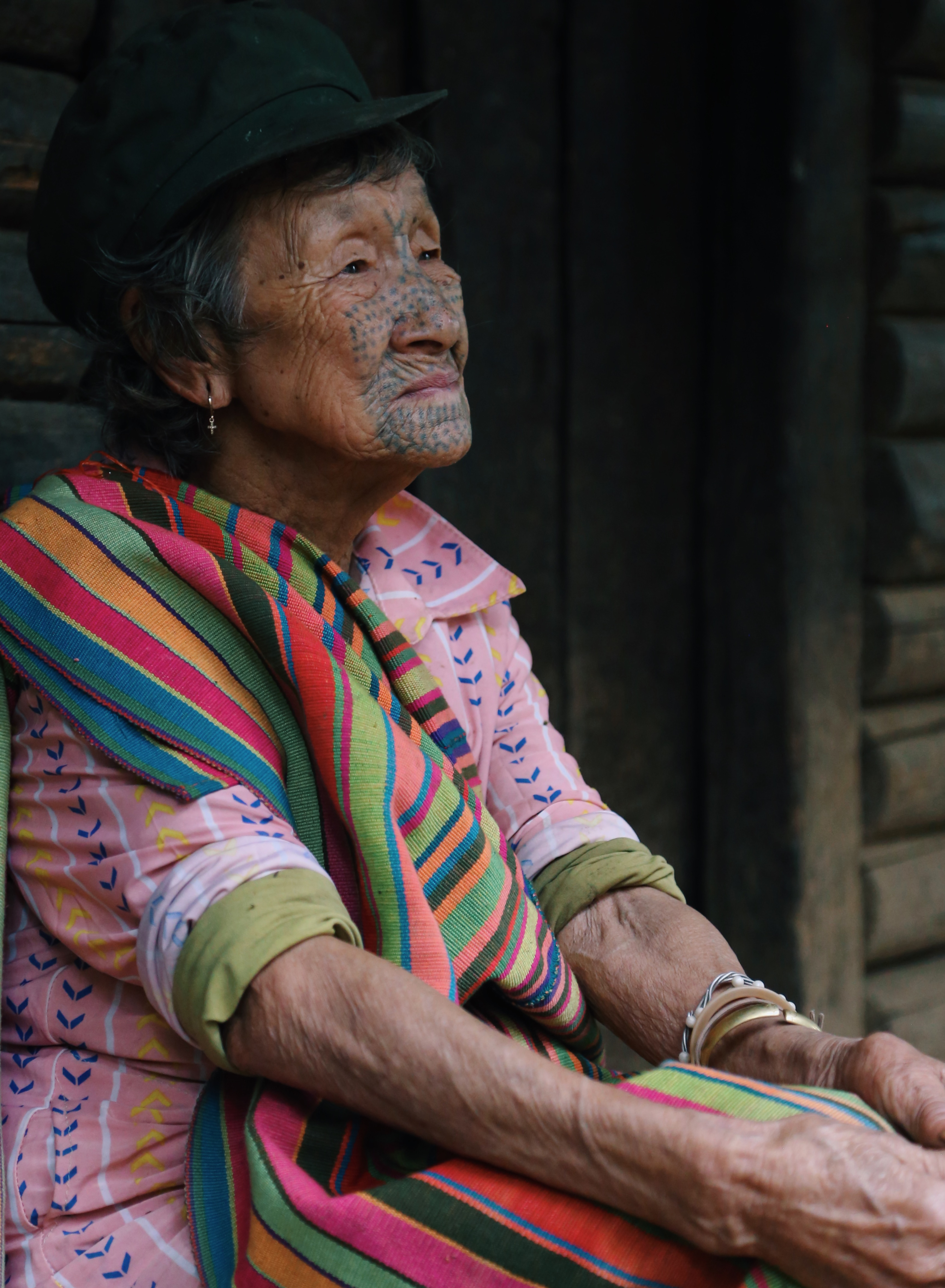 到达独龙江后我们沿着独龙江大峡谷深入,发掘原始村落,探秘古老民族独龙族,寻找独龙族神秘的【纹面女】。关于纹面的由来,至今也没有权威的说法来解释,民间流传有三种说法:一是为了防止西藏察瓦龙土司抢女人,女孩子一般到12至15岁便要纹面,使女孩子看起来丑陋;二是纹面习俗与该族早已消失的图腾崇拜物有关;三是当时的独龙族认为妇女纹面是美的象征,不纹面的姑娘是嫁不出去的。如今独龙族已经没有了纹面的习俗,随着时间的不断推移,古老而神秘的纹面女将消失在滚滚历史长河中,目前在世的独龙族纹面女不足25人,年龄均已过70岁,分布在怒江独龙江不同村落,因生命有限,我们无法人为控制,如能相见是幸运,如不能,请平常心对待。