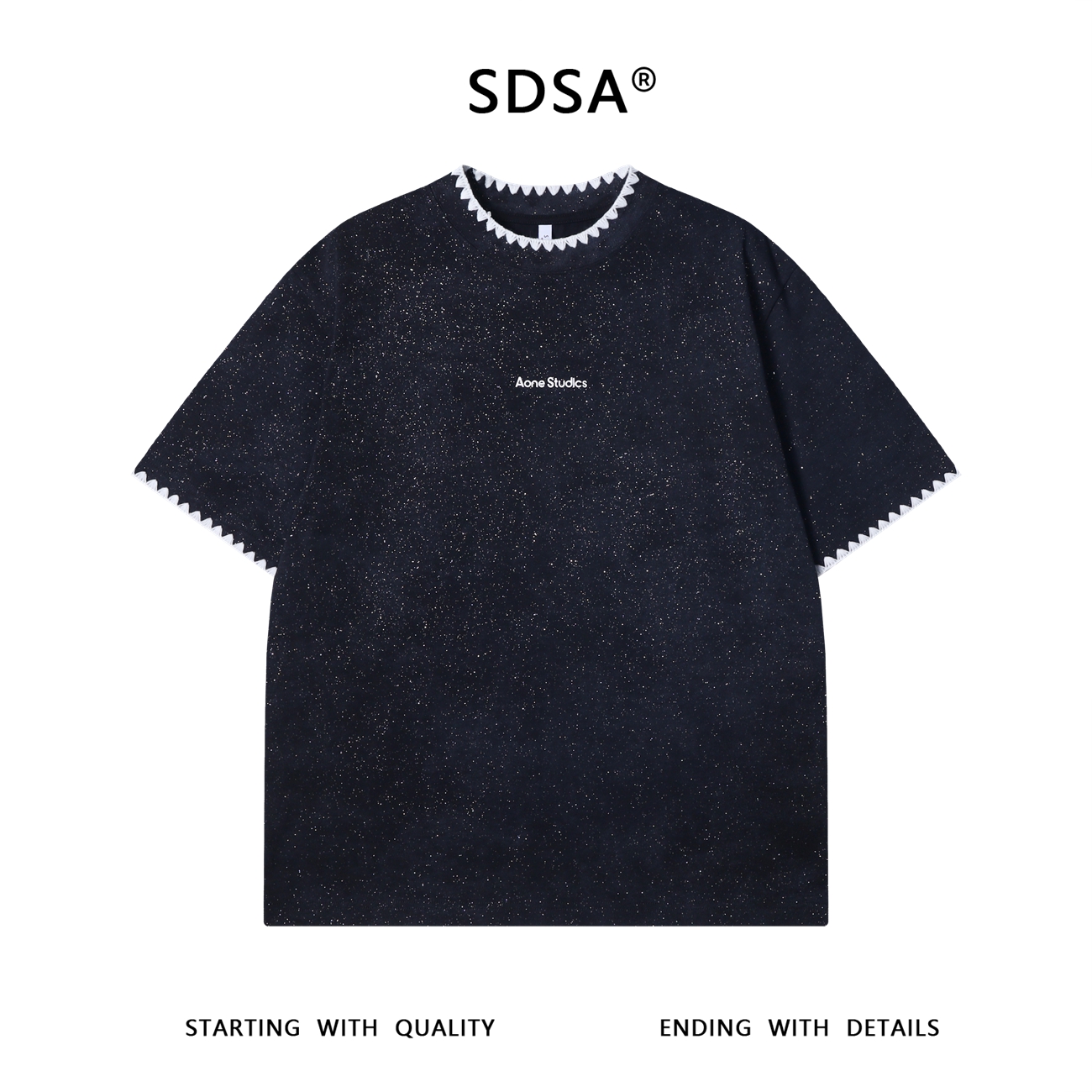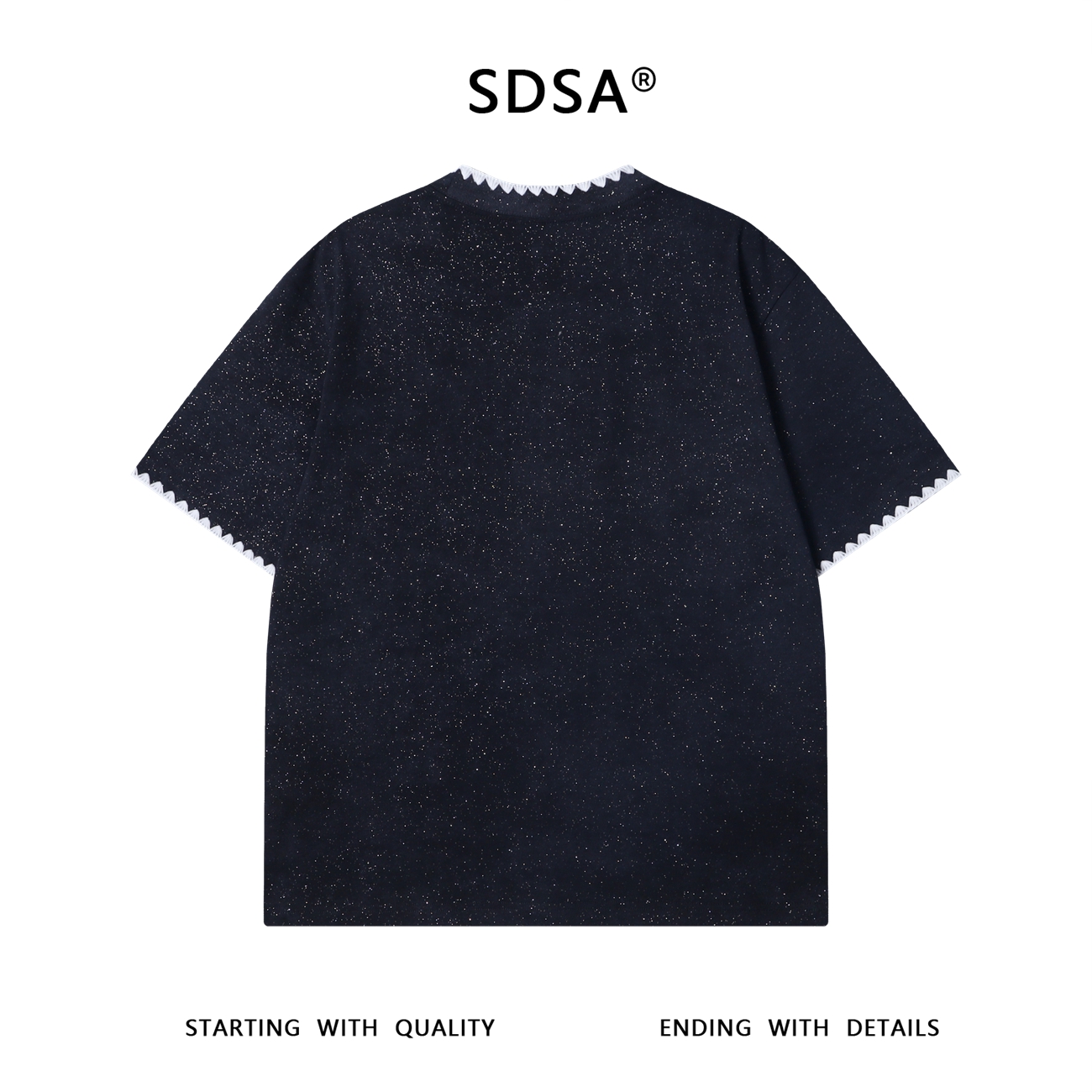 T3265夏季高级感新款韩版撞色缝线满天星印花字母短袖T恤圆领宽松上衣