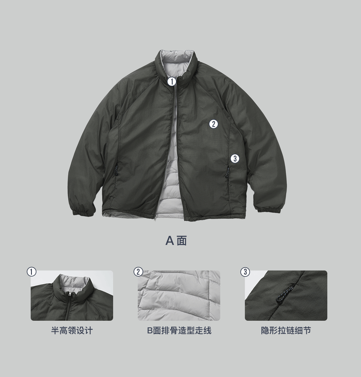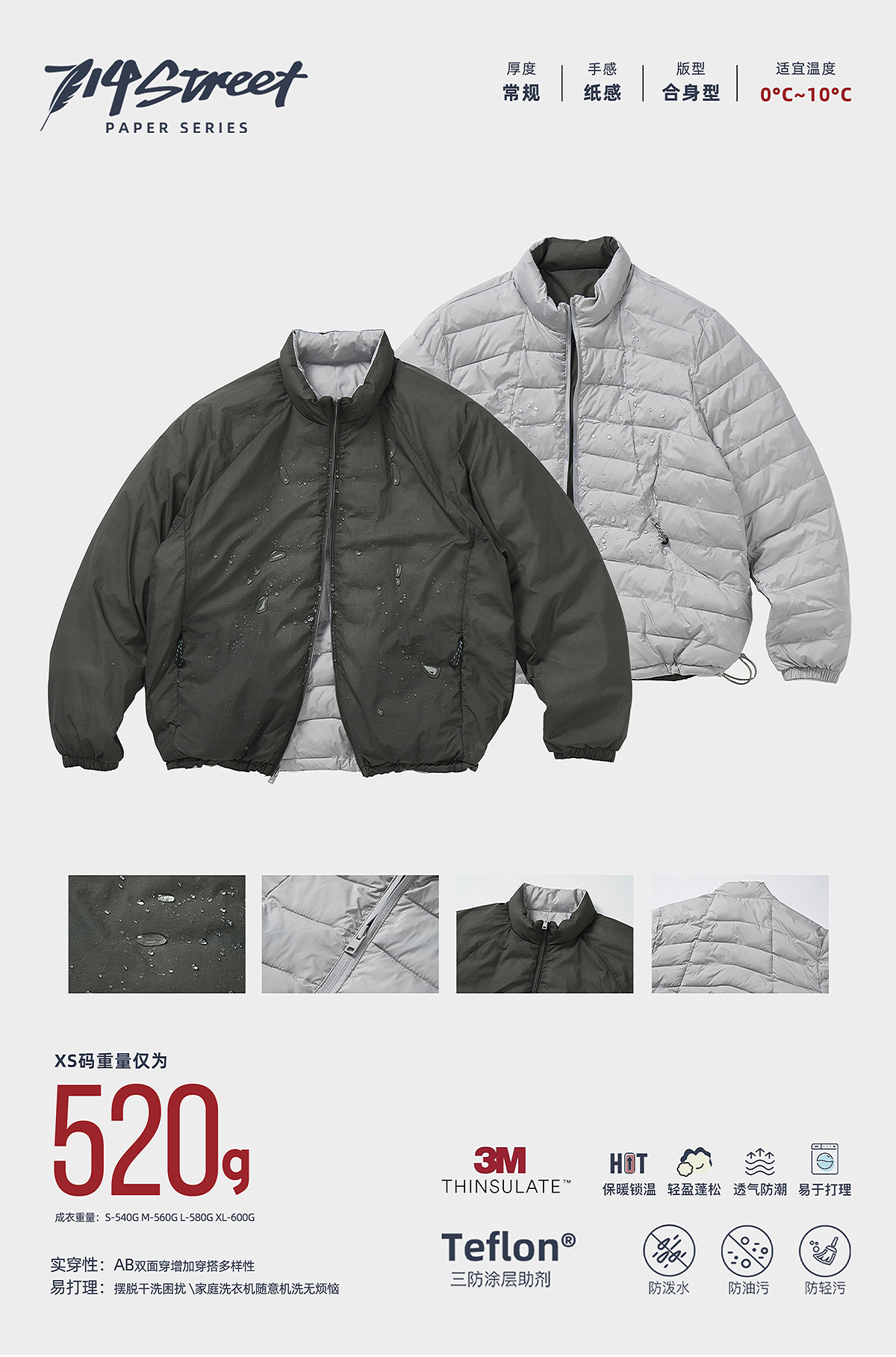 714street两面穿3M新雪丽排骨羽绒棉服男2025秋冬新款三防外套女