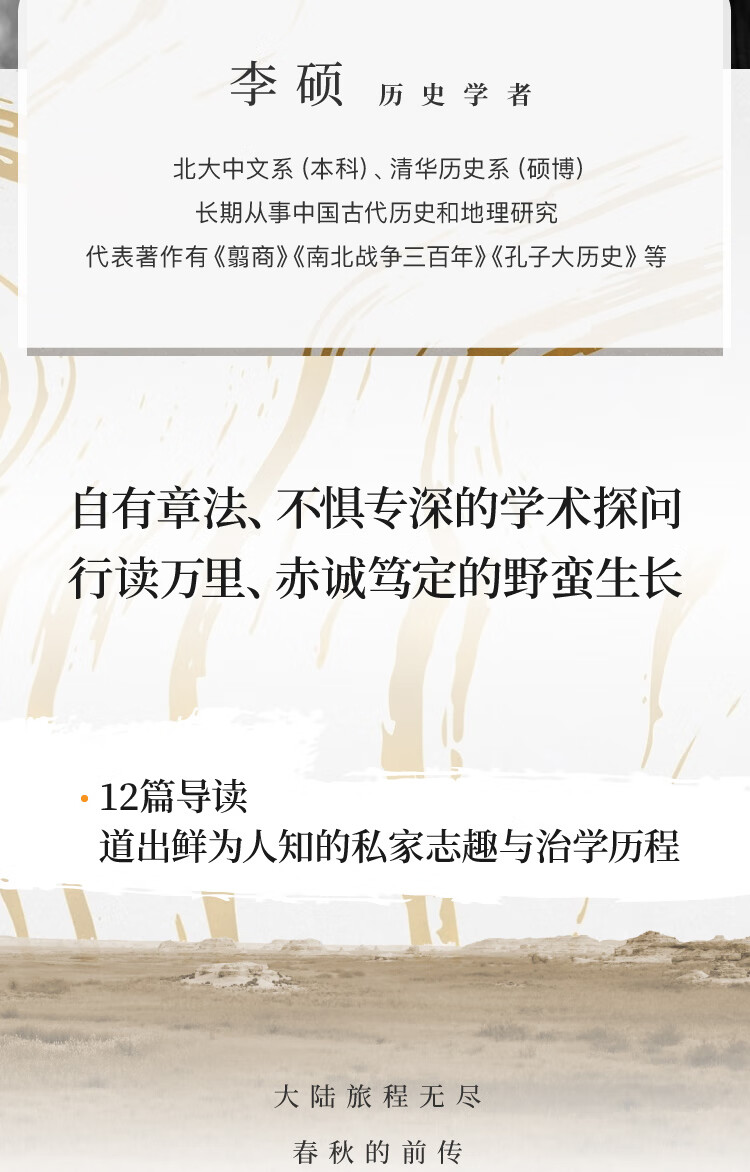 李硕毕业于北京大学中文系(本科)和清华大学历史系(硕博),从事中国古代历史与历史地理研究。著有《翦商》《南北战争三百年》《孔子大历史》《楼船铁马刘寄奴》《俄国征服东亚战记》等。