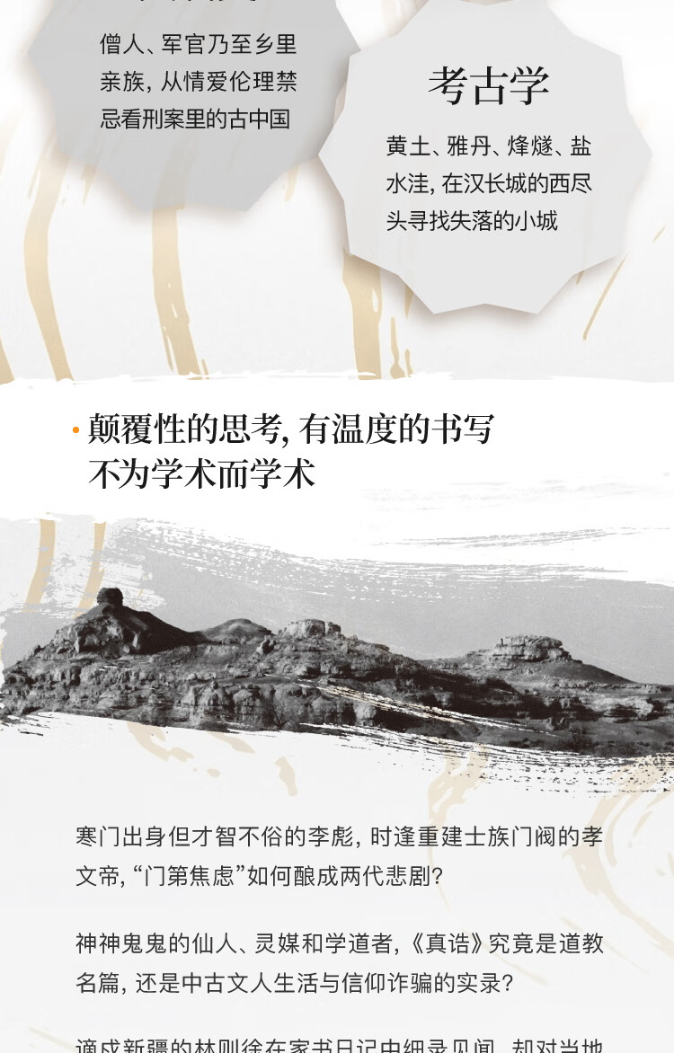 本书为史界鬼才李硕的勇气之作,是一场思想之旅,更是一部学术自传,视野广阔,兼顾政治史、社会史、法律史、思想史诸多领域:从周幽王的上古世界,到林则徐的晚清帝国边疆;从《真诰》中的“仙人”和修道者,到孝文帝时代的悲剧官僚;从一个个隐入尘烟的饮食男女,到法律史中危险而愉悦的禁忌之爱;从拉铁摩尔的北部行旅,到霍布斯政治学说吊诡的成因;从蠡县大食堂,再到荒野之中河西走廊尽头的汉代城郭遗址……从史实出发,12段学术游荡,史料爬疏与故事构建之外,更洞察人心,努力还原时间深处鲜为人知的幽微与真相。