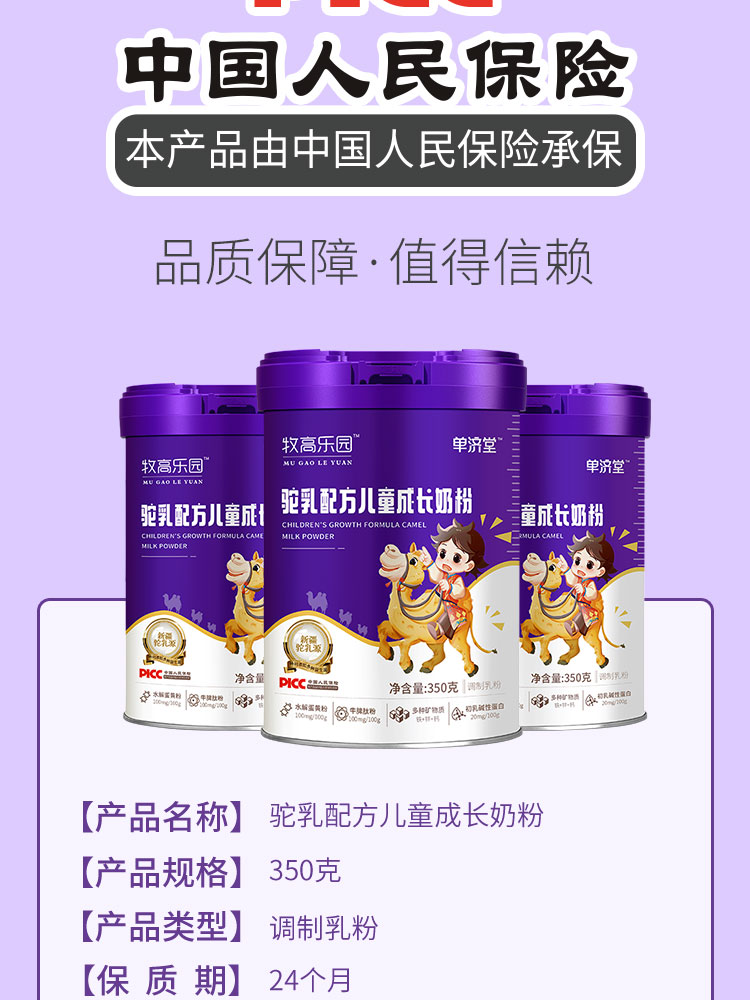 【单济堂牧高乐园】【官方正品】牧高乐园驼奶粉成人儿童高钙奶粉
