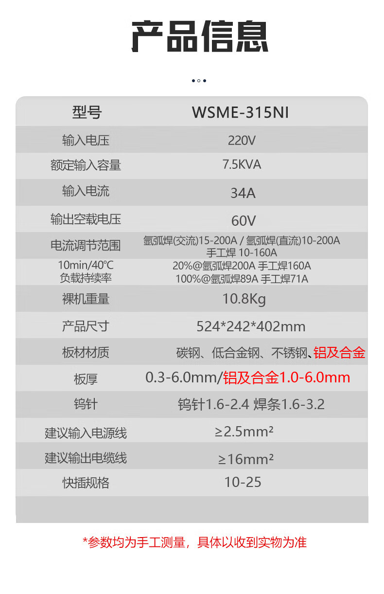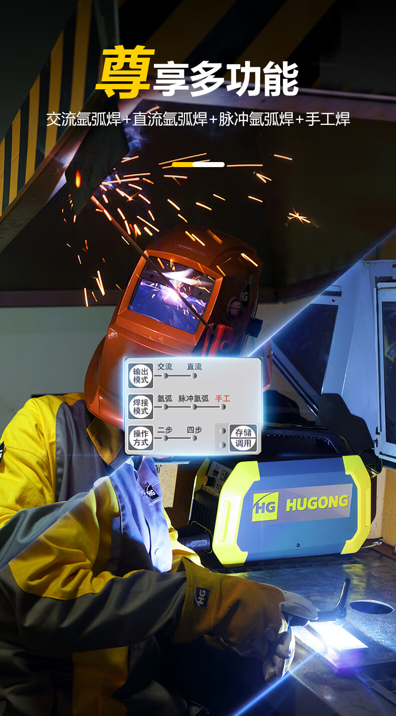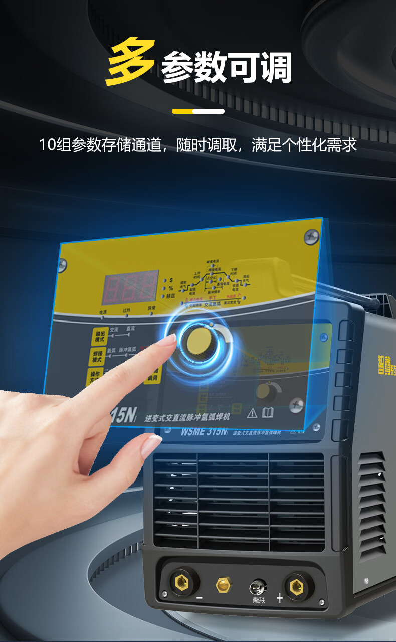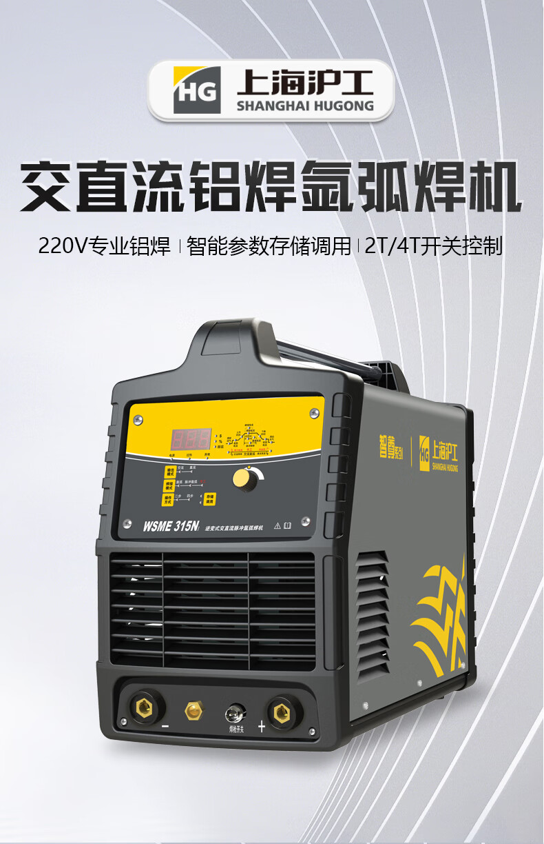 上海沪工 WSME-315NI 氩弧焊机220v专业铝焊机家用工业级两用交流直流脉冲手工焊多功能电焊机氩弧焊、手工焊,适配QQ-300焊枪。