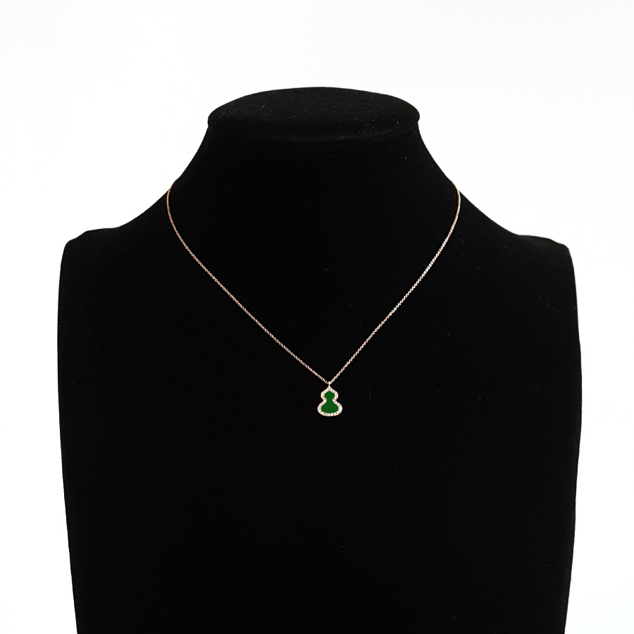 【95新】Qeelin麒麟Wulu系列18K玫瑰金镶钻翡翠petite wulu葫芦项链031125TJ26