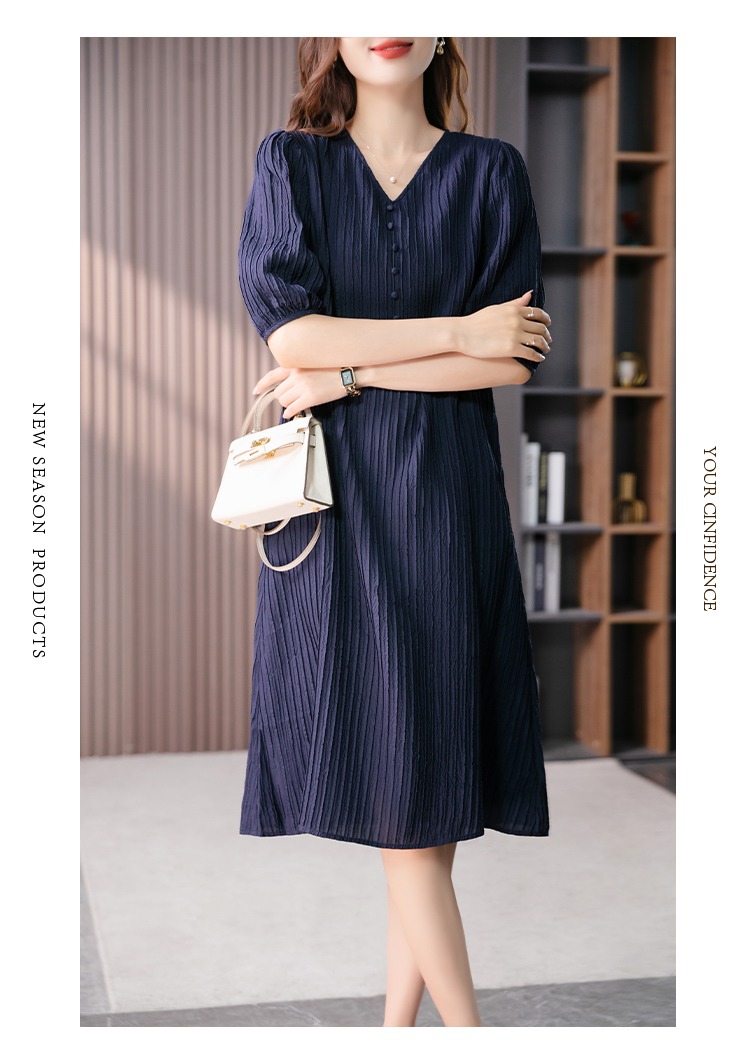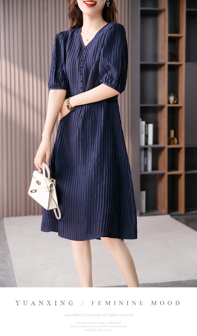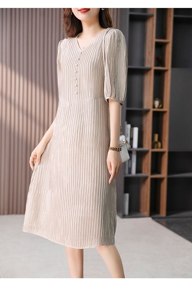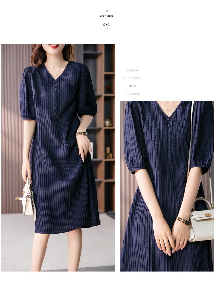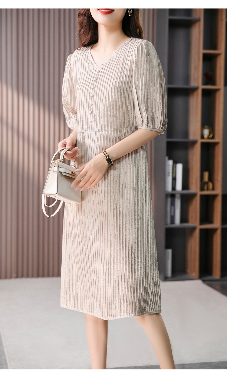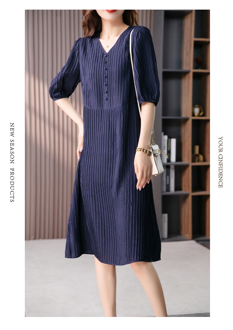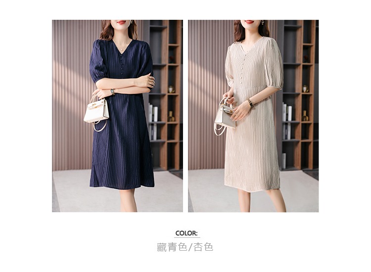【现货7天】气质V领真丝连衣裙女中长款2023夏季新款高腰显瘦桑蚕丝长裙
