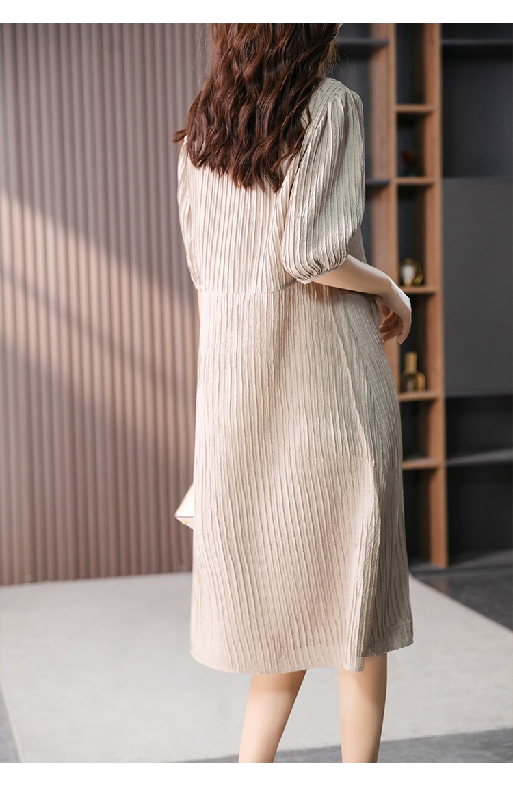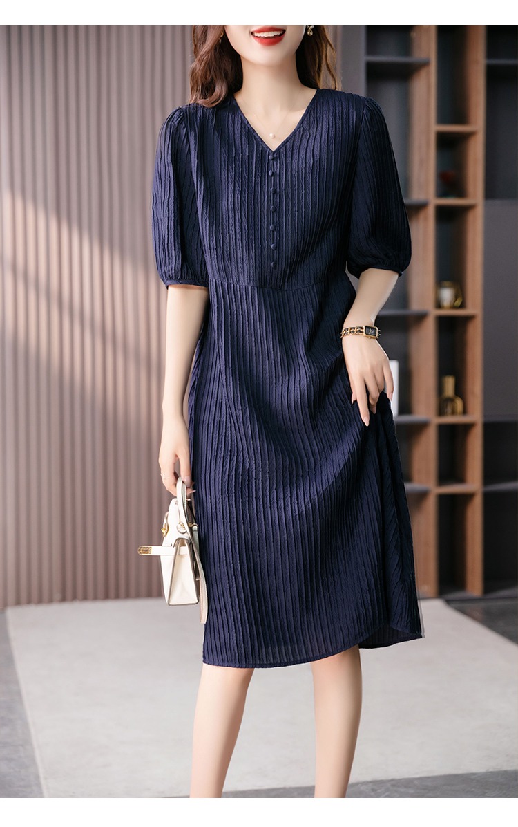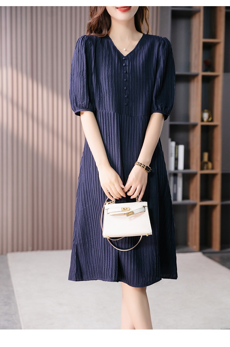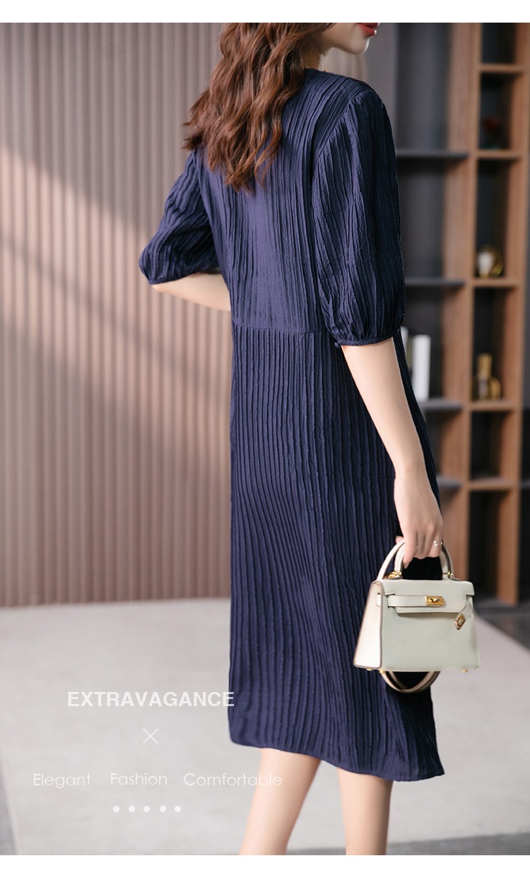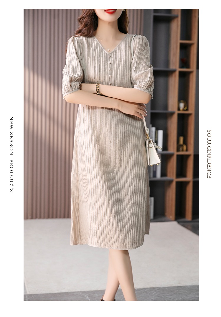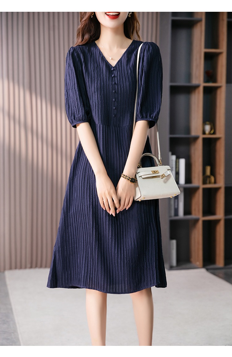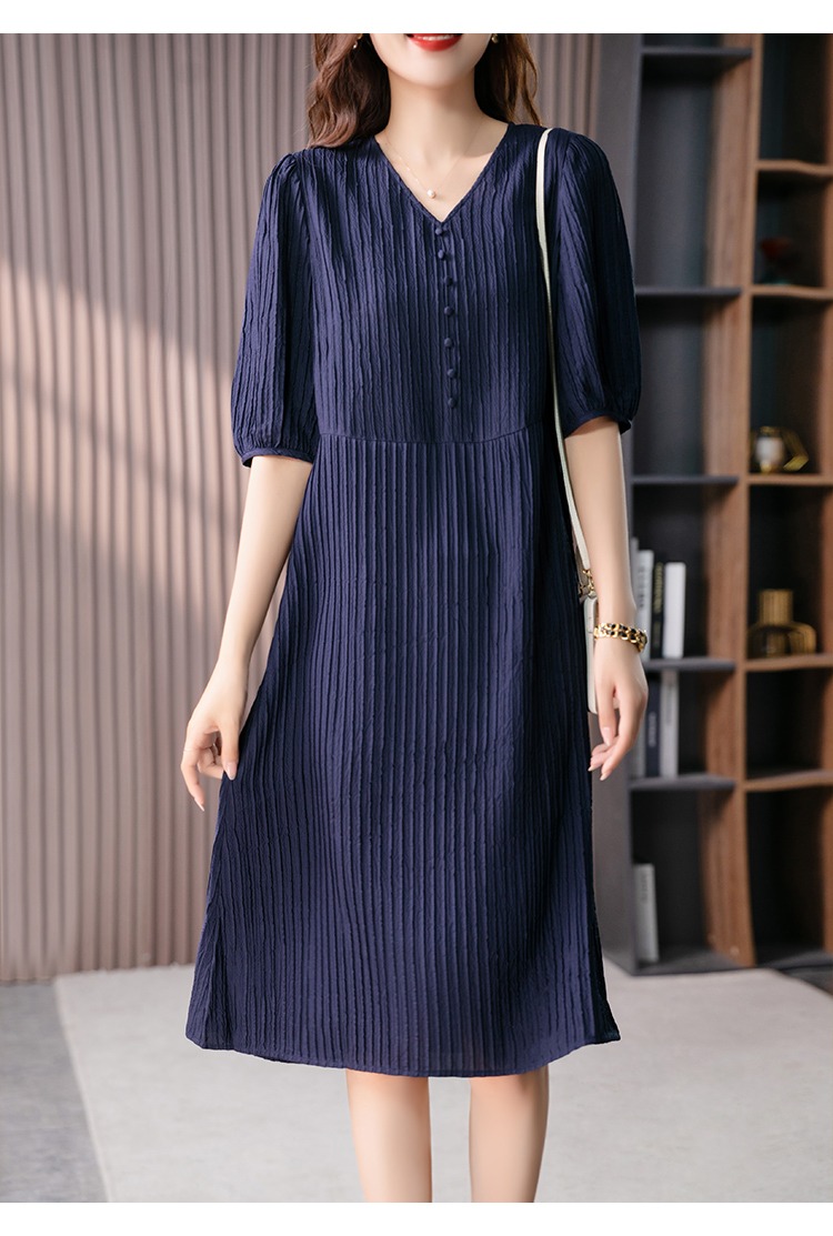【现货7天】气质V领真丝连衣裙女中长款2023夏季新款高腰显瘦桑蚕丝长裙