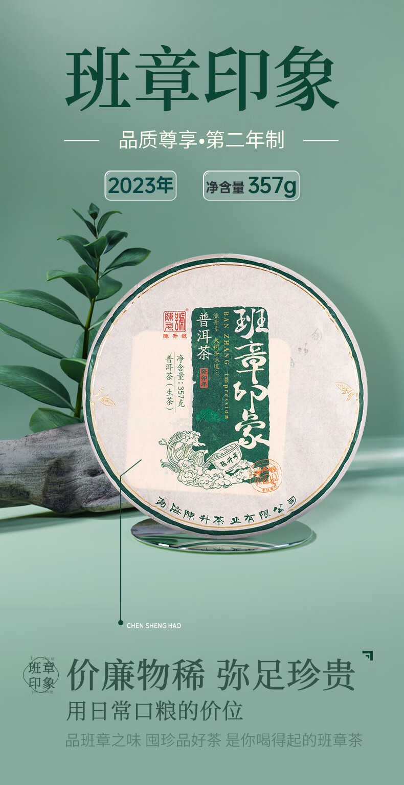 陈升号 2023年班章印象357g(生茶)