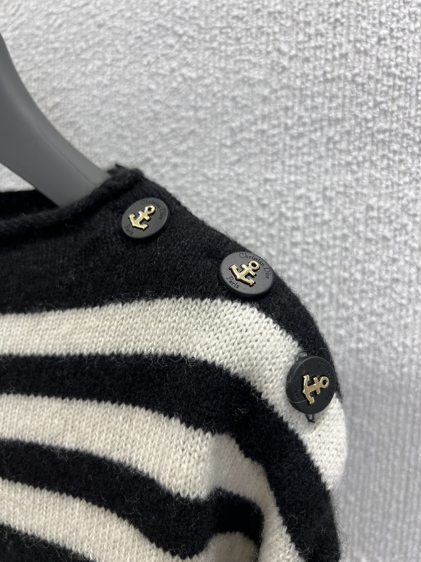 迪奥 25FW秋冬新款 海军风肩扣条纹针织毛衣(DQJ*MM)