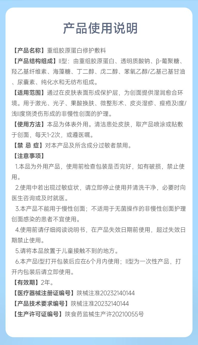 【创面修护】绽妍重组胶原蛋白修护敷料 激光光子屏障修护