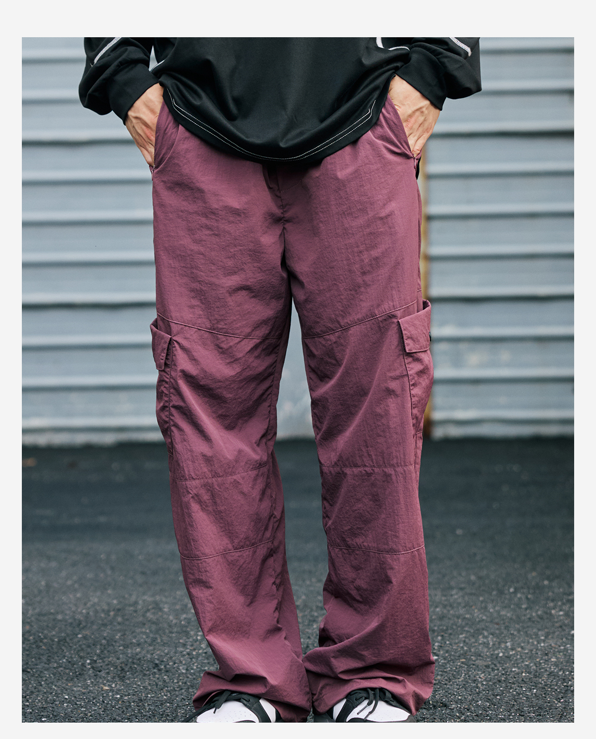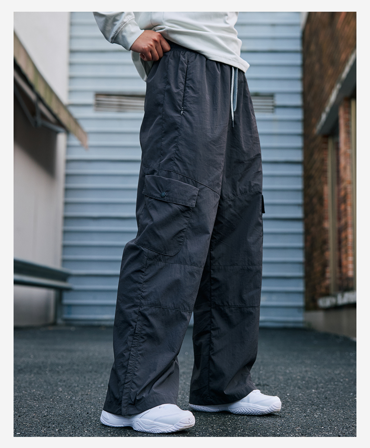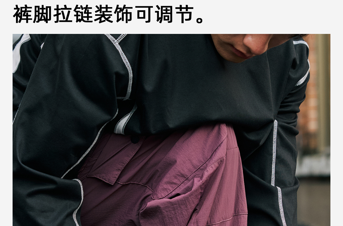 录士LUSHISI织线主题轻薄透气防泼水直筒长裤松紧绳大口袋多功能