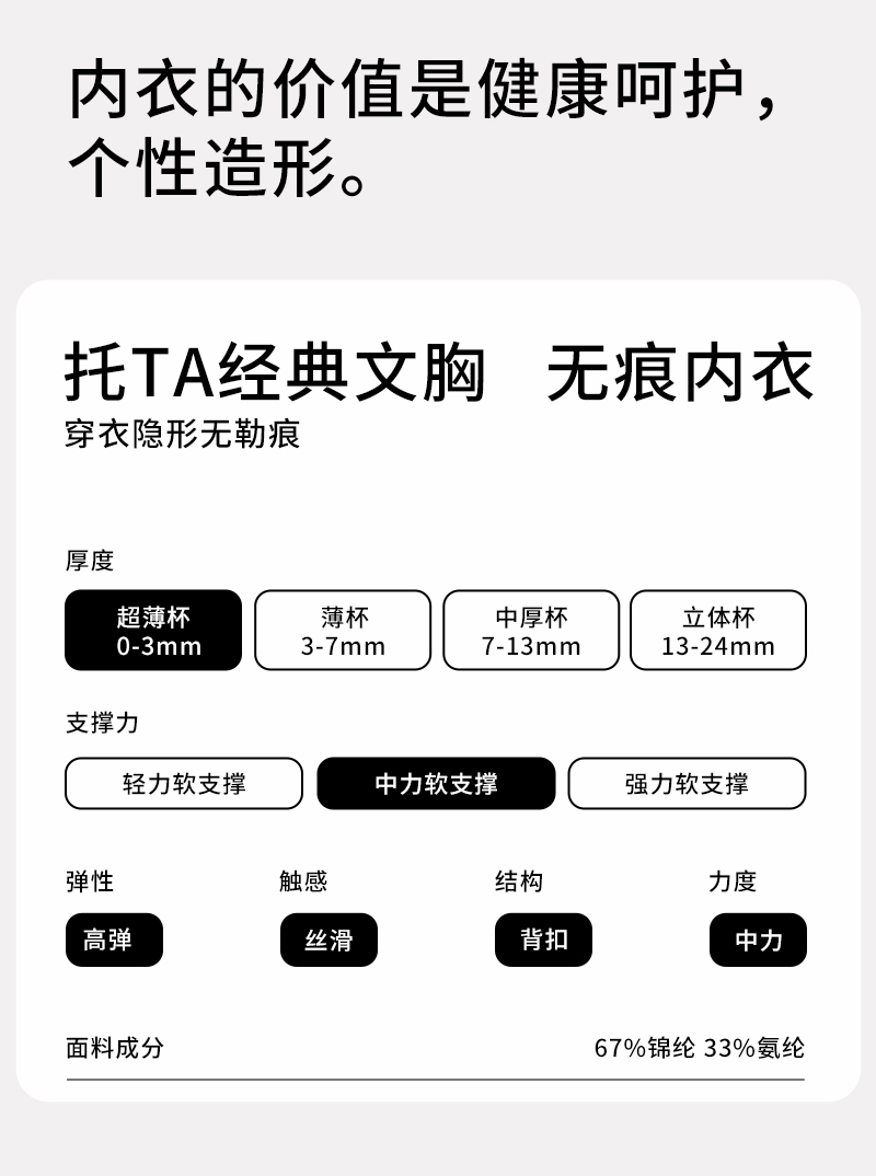 提供让女性自信,有幸福感的内衣 帮助女性打破刻板印象,解放传统文化带给女性的束缚 助力女性勇敢成长为更想成为的自己。