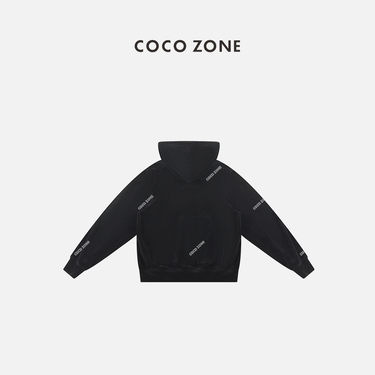 COCO ZONE早秋连帽系绳卫衣半拉链长袖口袋休闲 23C19506