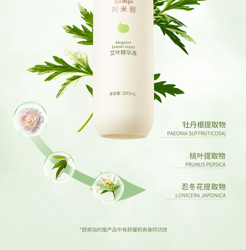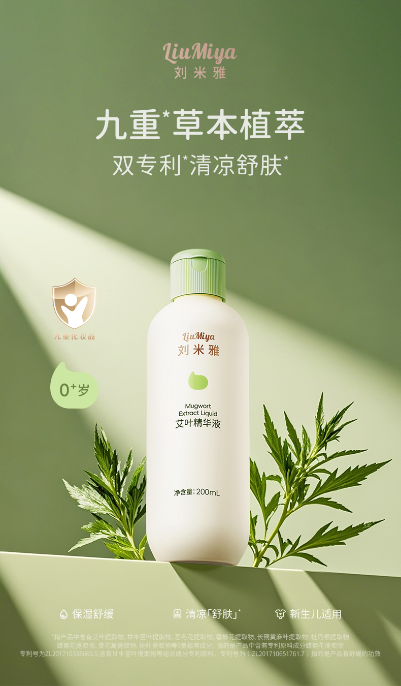 刘米雅艾叶精华液桃叶婴幼儿童舒缓保湿植萃清凉舒爽精华液200ml