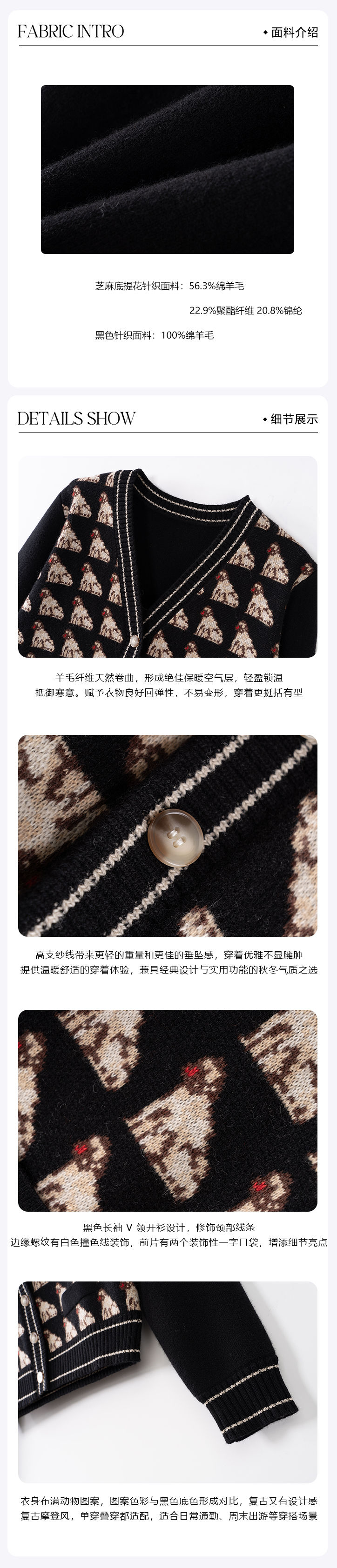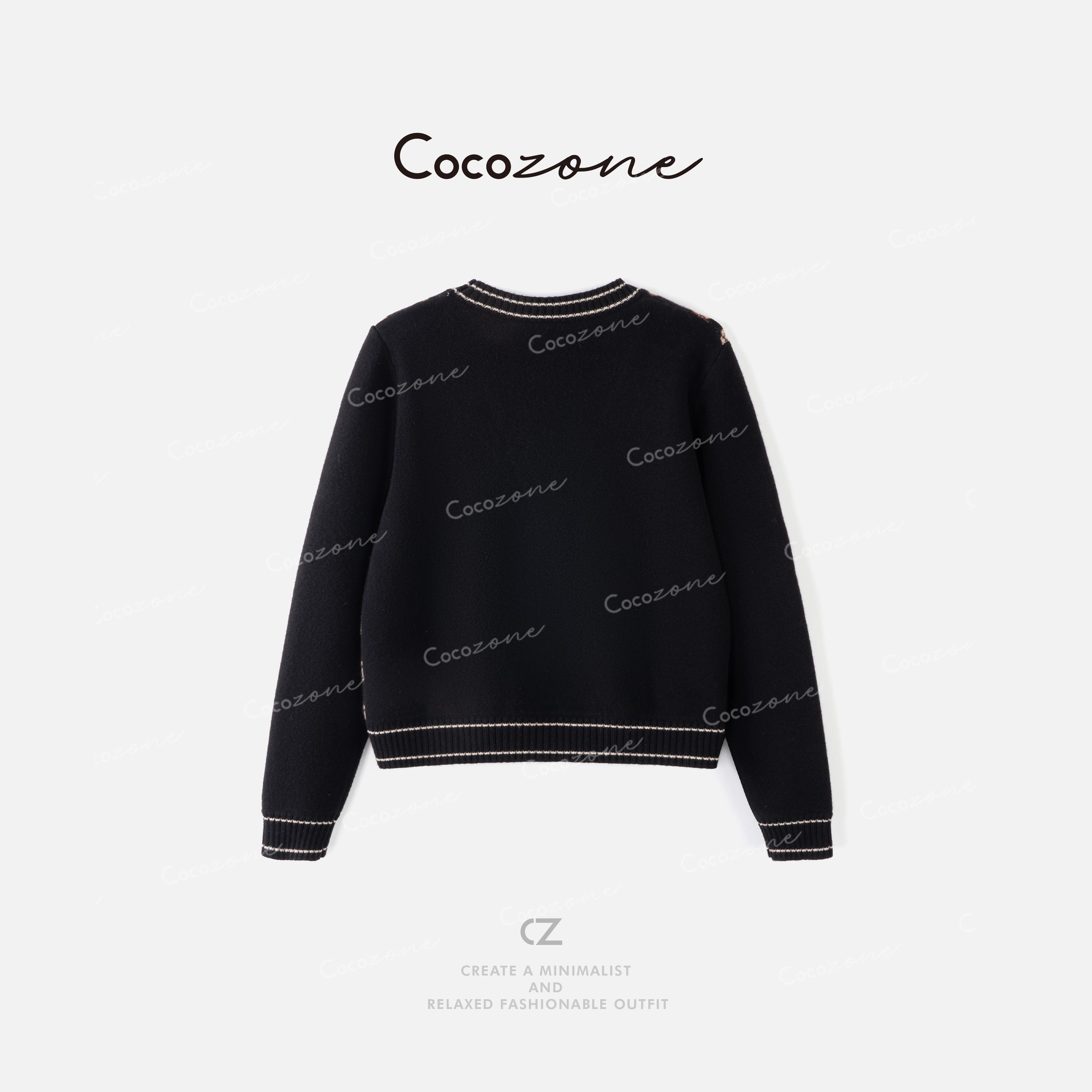 COCO ZONE 刘一一 【100羊毛】V字领撞色毛织上衣 CD1A1368