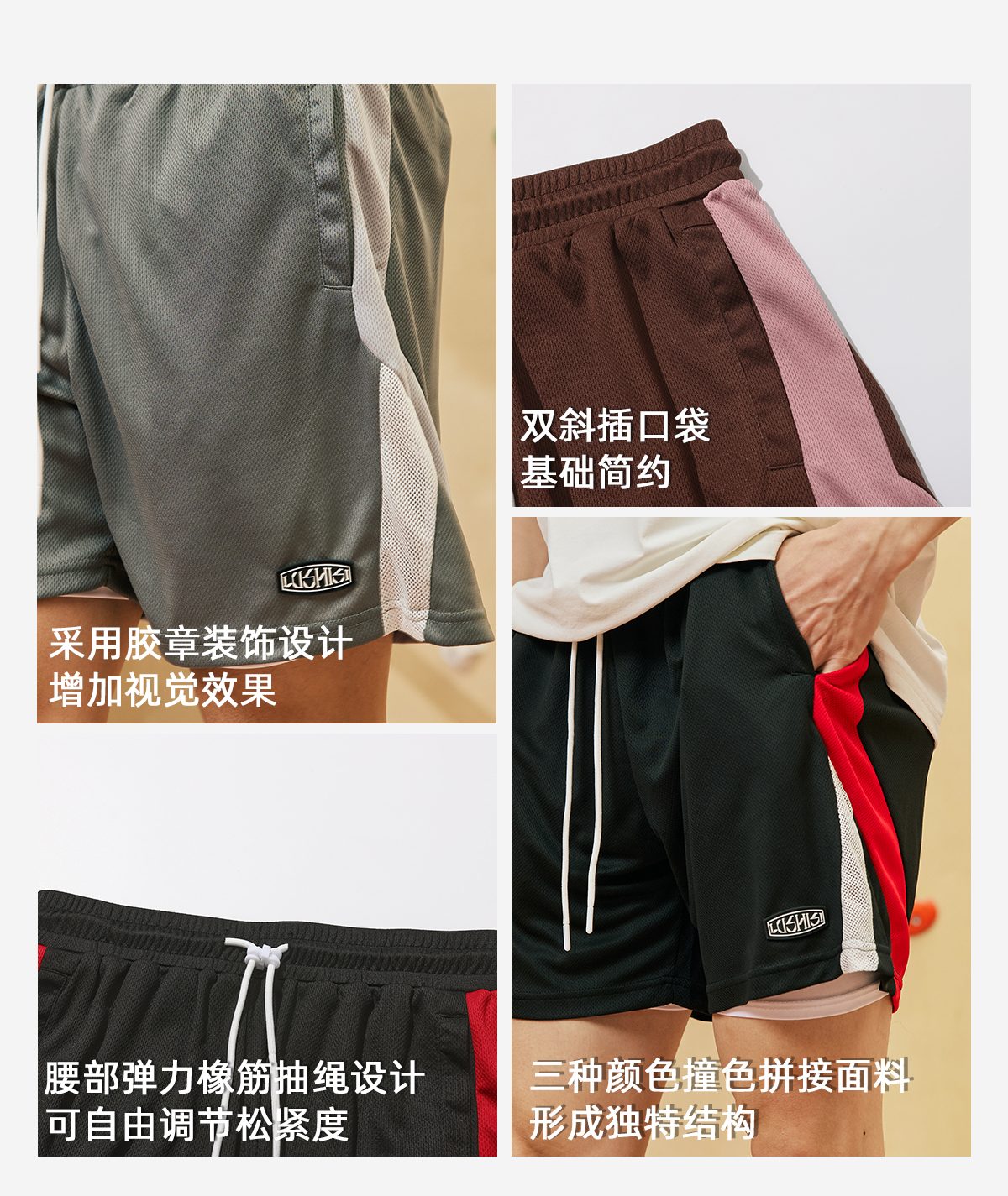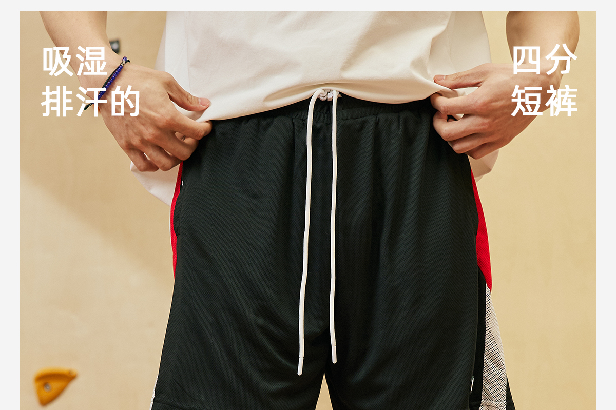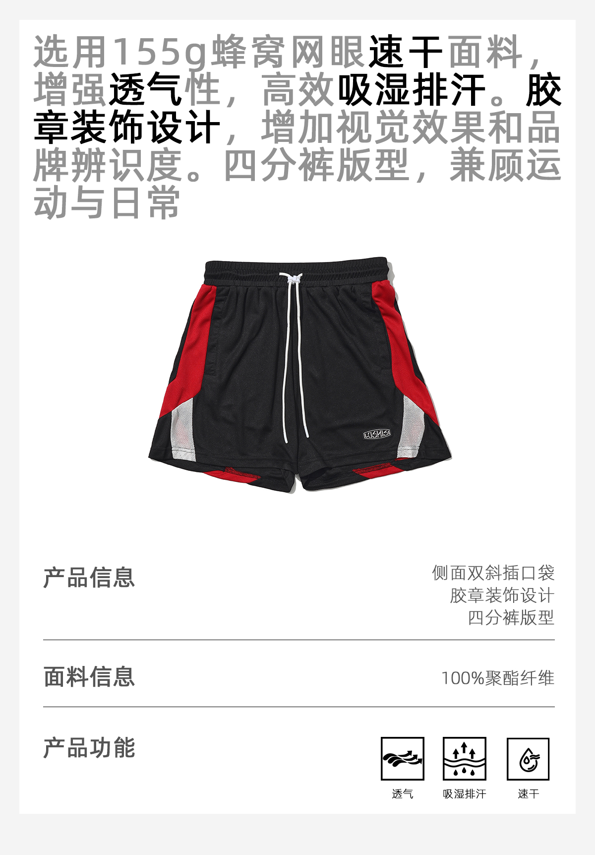 LUSHISI共鸣主题篮球短裤美式休闲街头运动四五分拼接抽绳运动裤