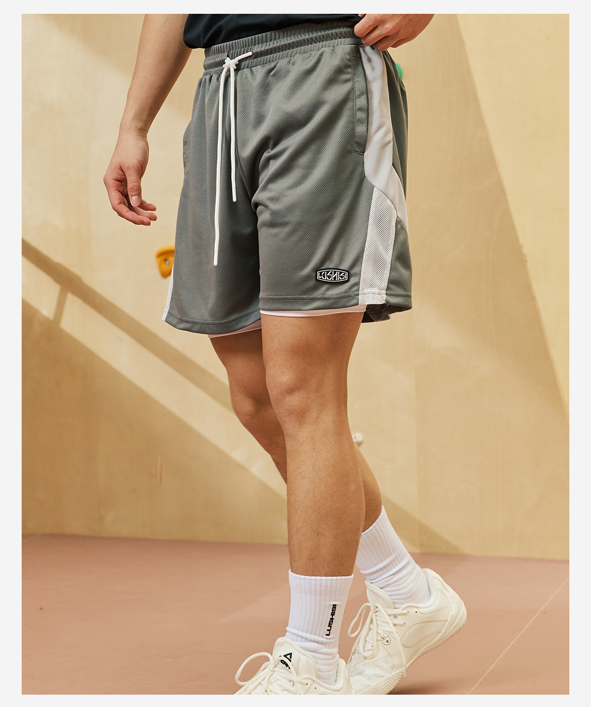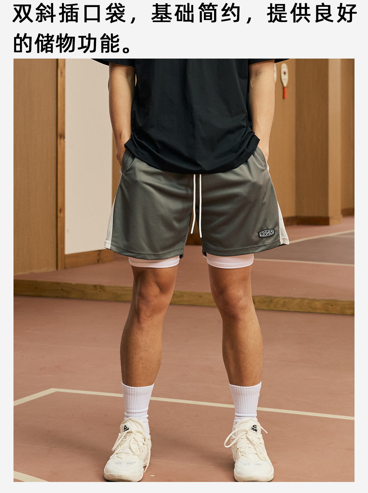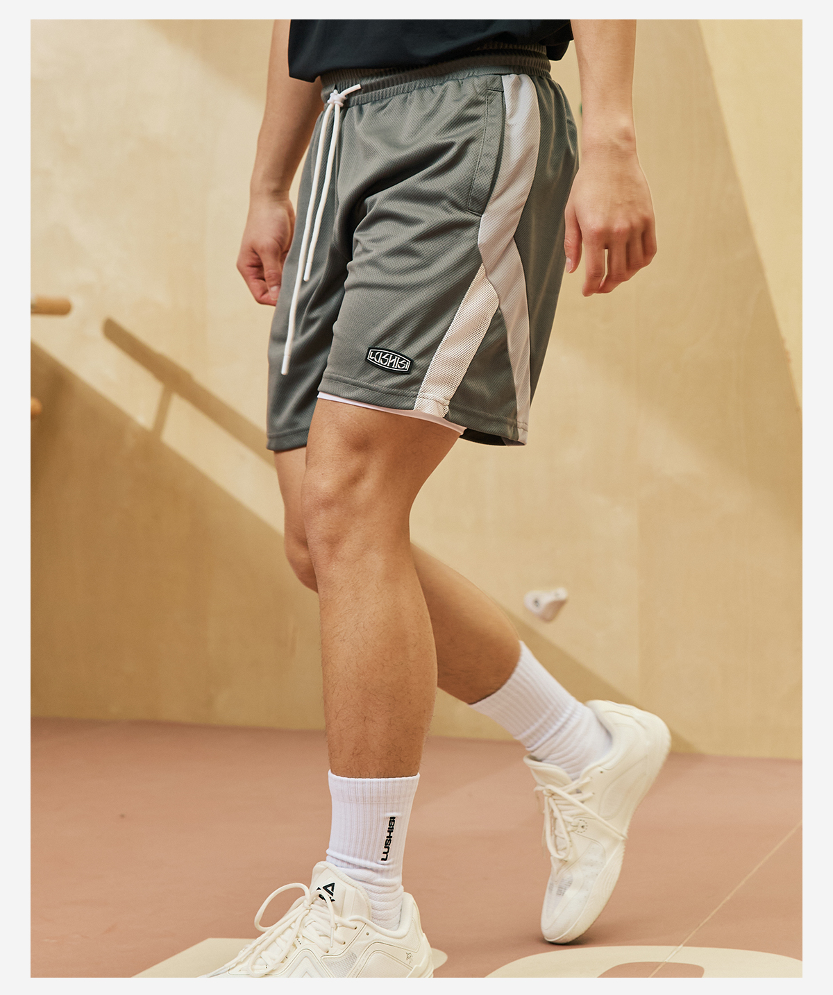 LUSHISI共鸣主题篮球短裤美式休闲街头运动四五分拼接抽绳运动裤