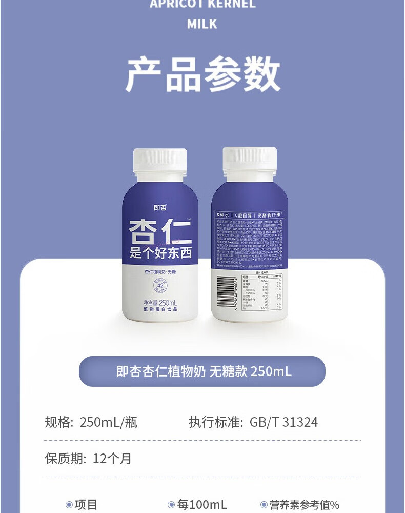 即杏杏仁植物奶250mL*9瓶