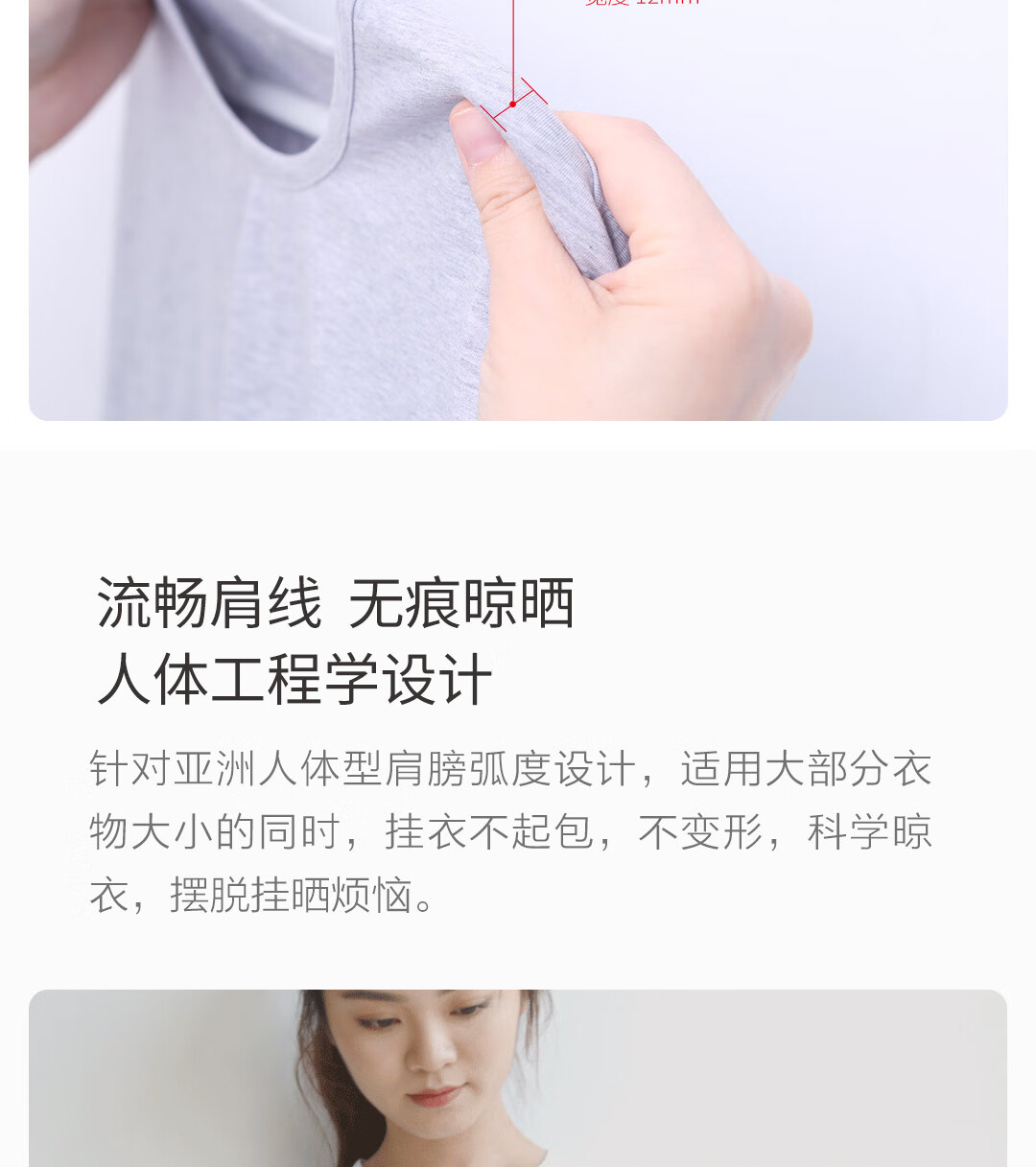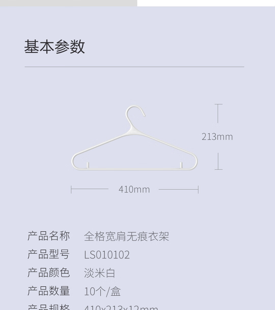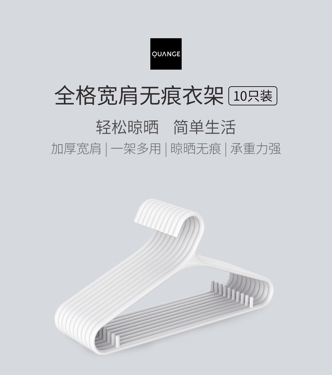 全格宽肩无痕衣架 淡米白 10个/卡板
