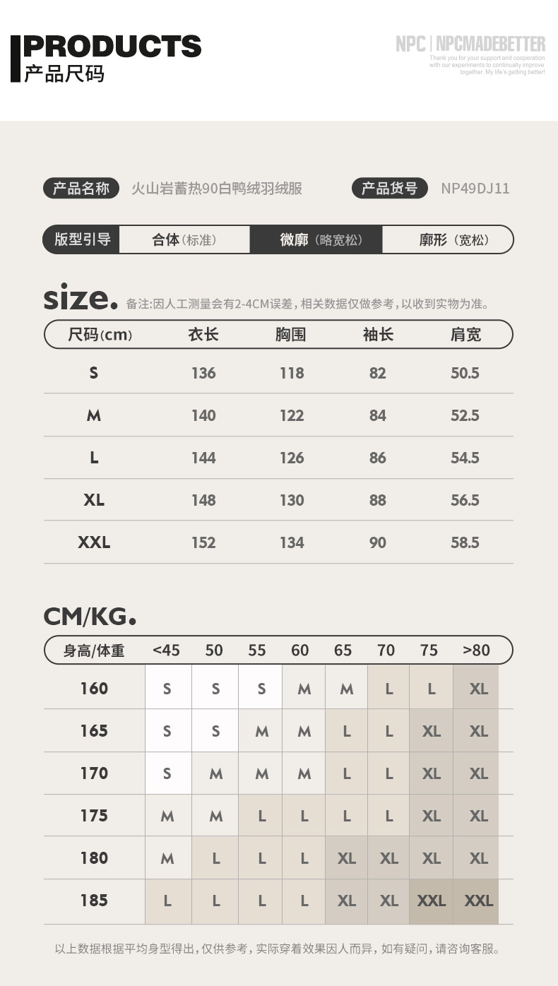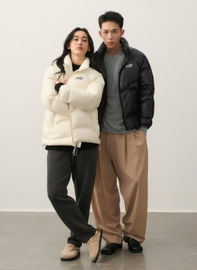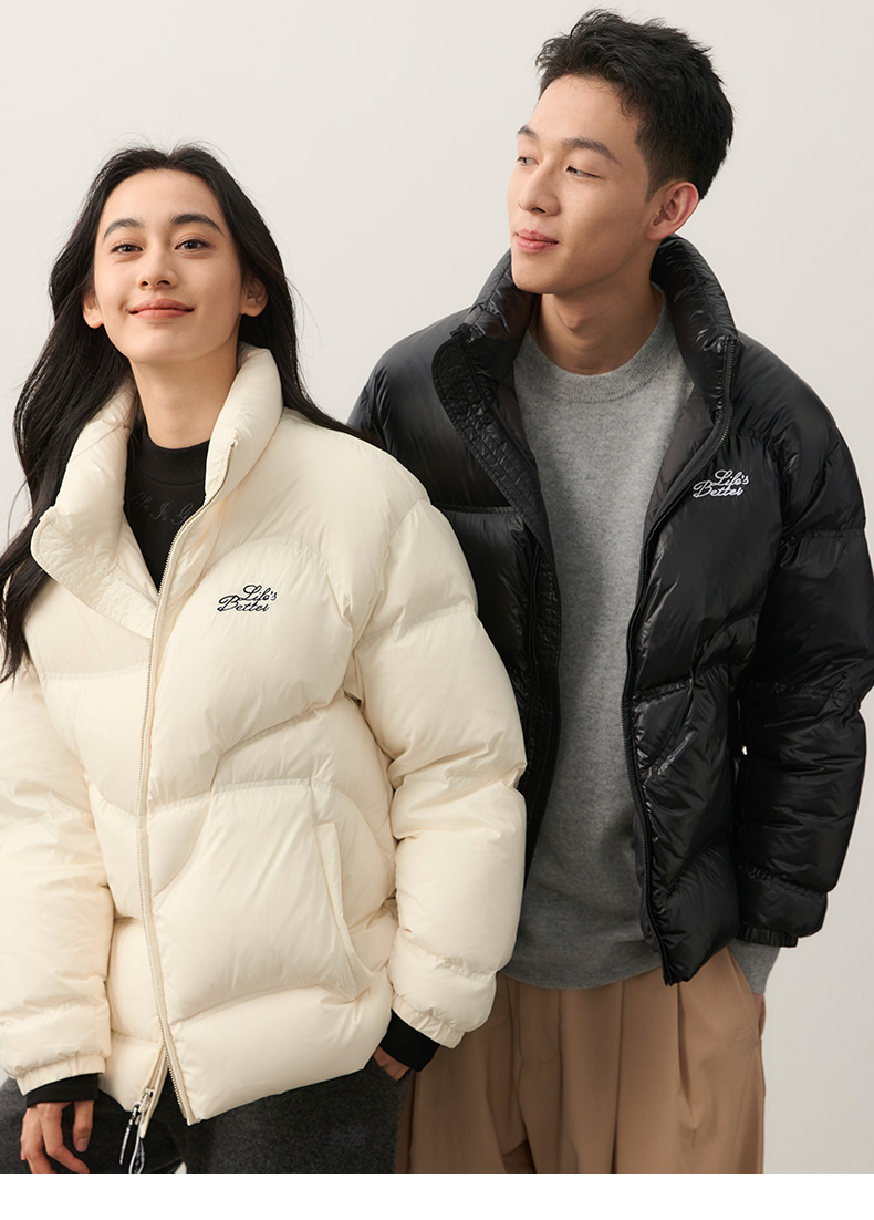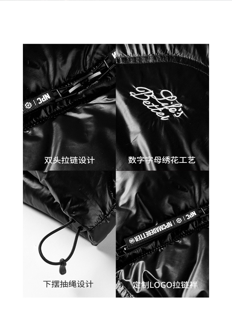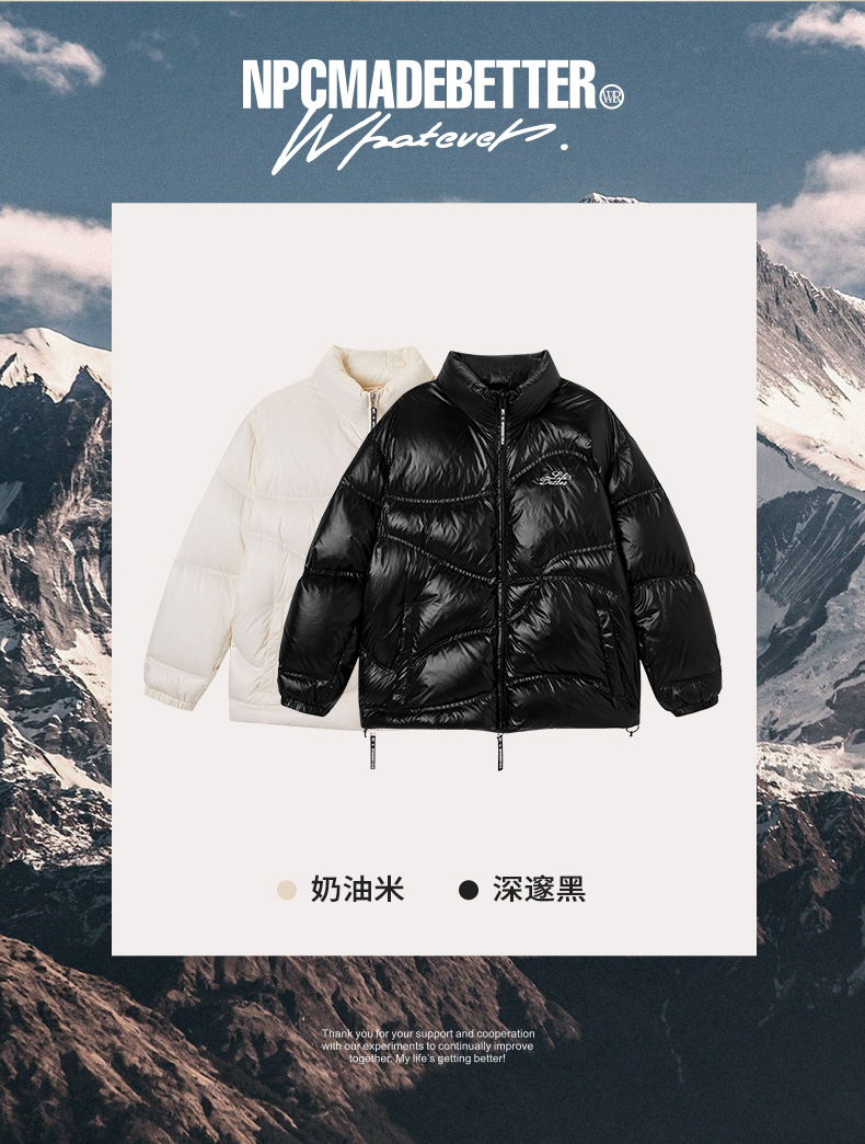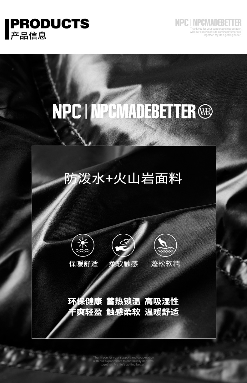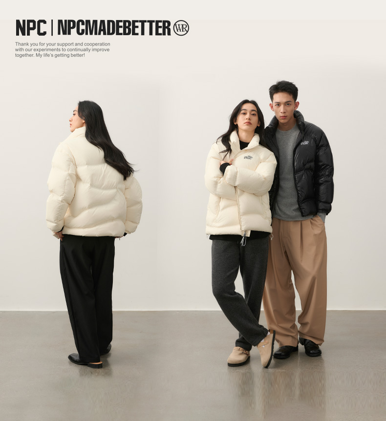 NPC潮牌字母刺绣90白鸭绒短款立领羽绒服男火山岩蓄热NP49DJ11