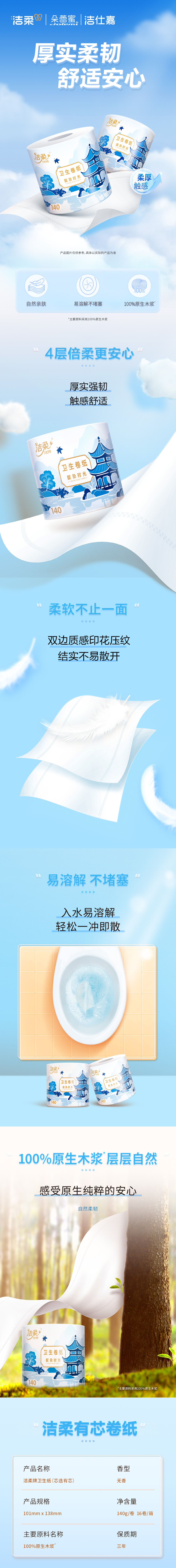洁柔芯选有芯卷纸 TJ020501A 4层140g*101*138mm*16卷*1箱