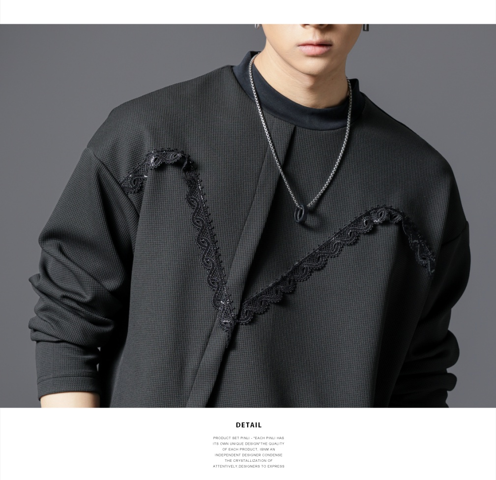 PINLI品立春季新款男士宽松立领亮片织带长袖T恤上衣体恤潮牌B253111106