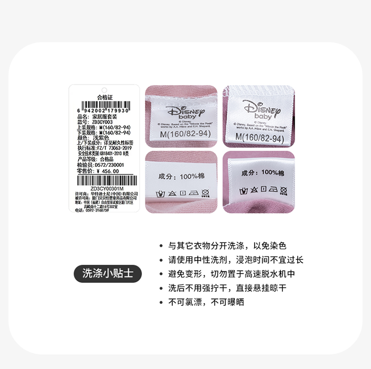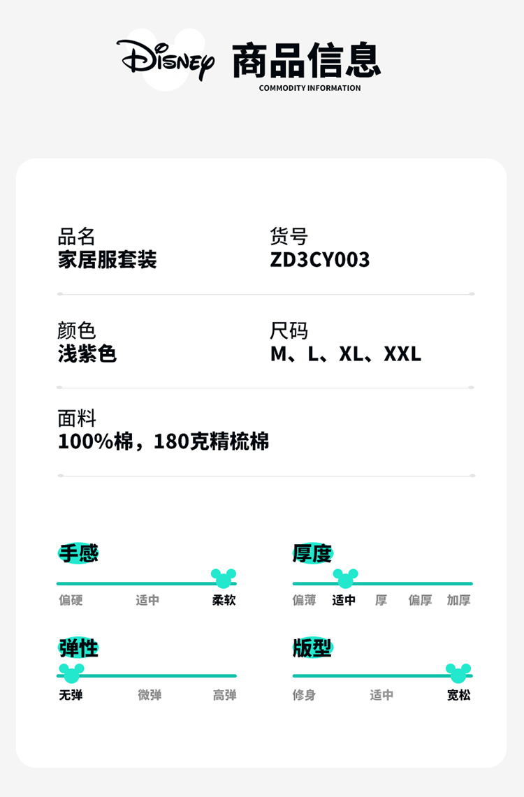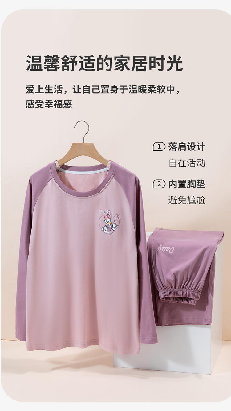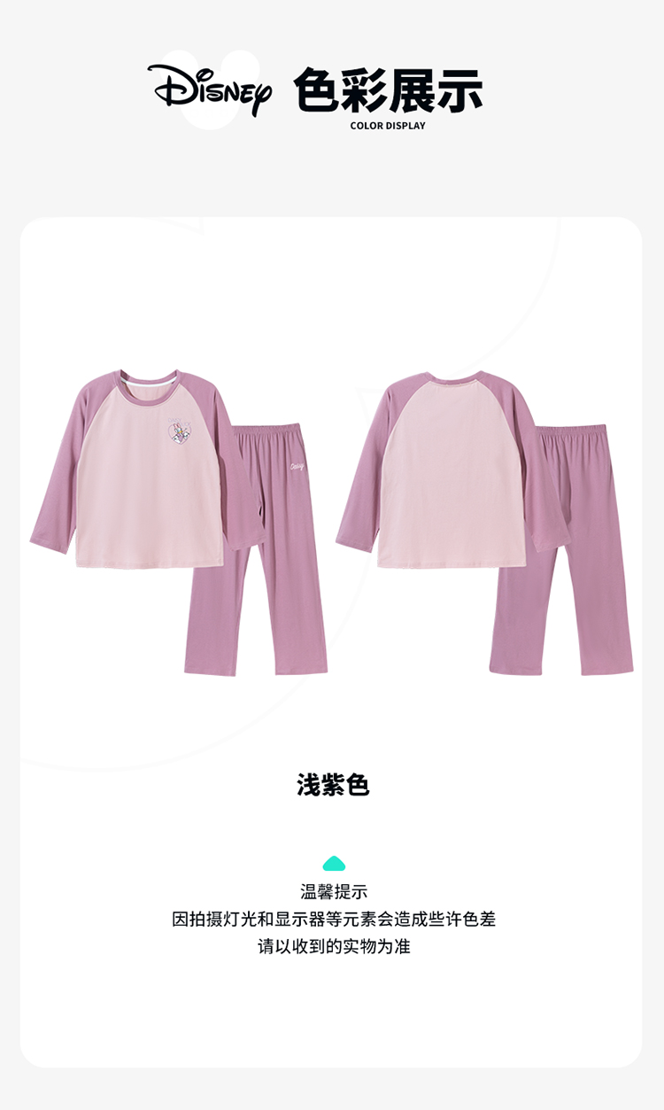 迪士尼新款纯棉家居服套装长袖长裤睡衣两件套插肩袖可外穿百搭打底ZD3CY003