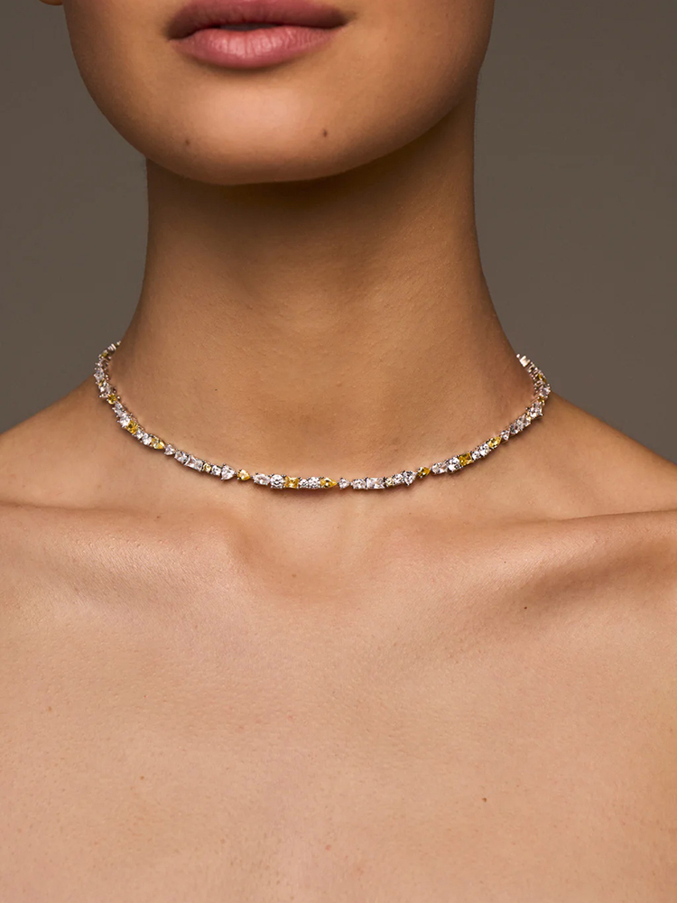 订购8周到|Lili Claspe-Mavis Tennis-网球 银色 双色锆石 项链[美国设计师]
